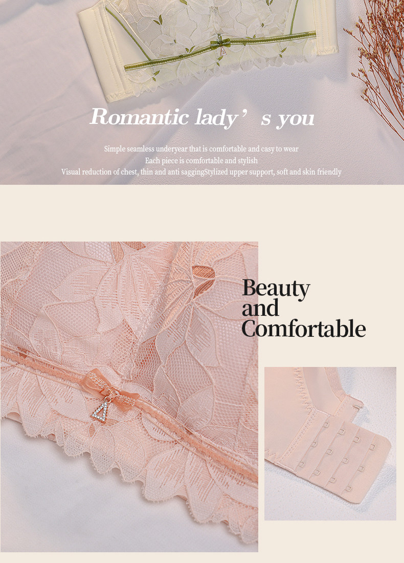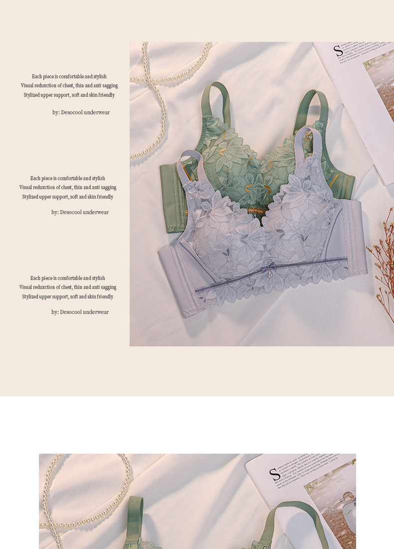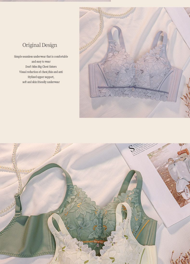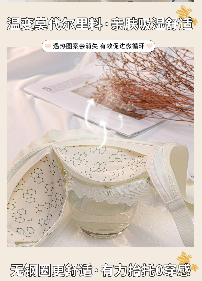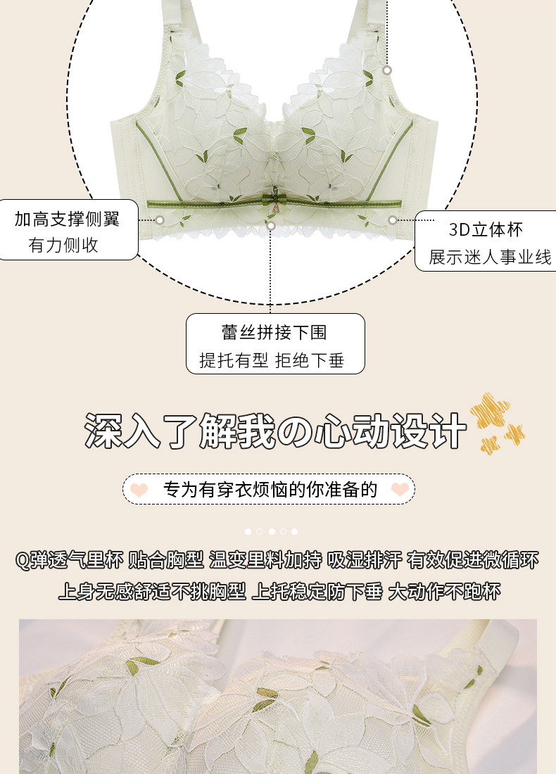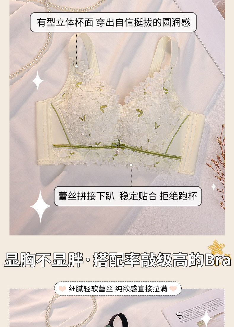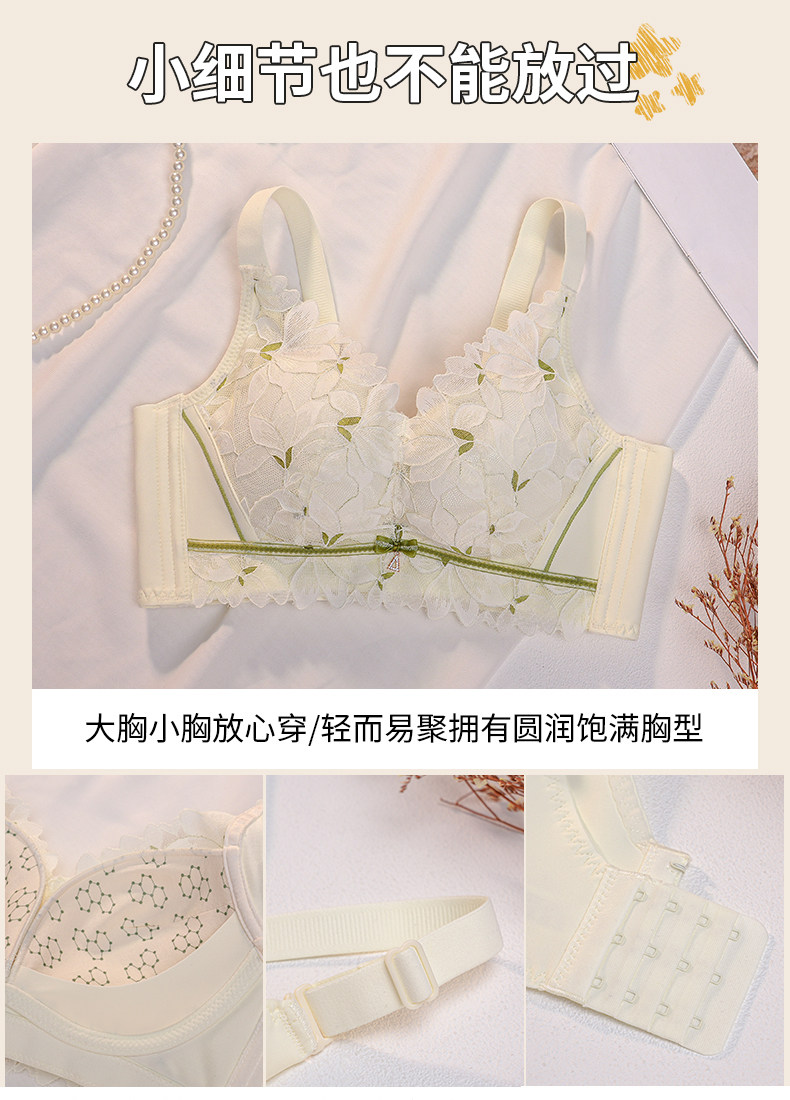 莫代爾內衣女聚攏小胸上托防下垂收副乳調整型夏季薄款蕾絲文胸罩
