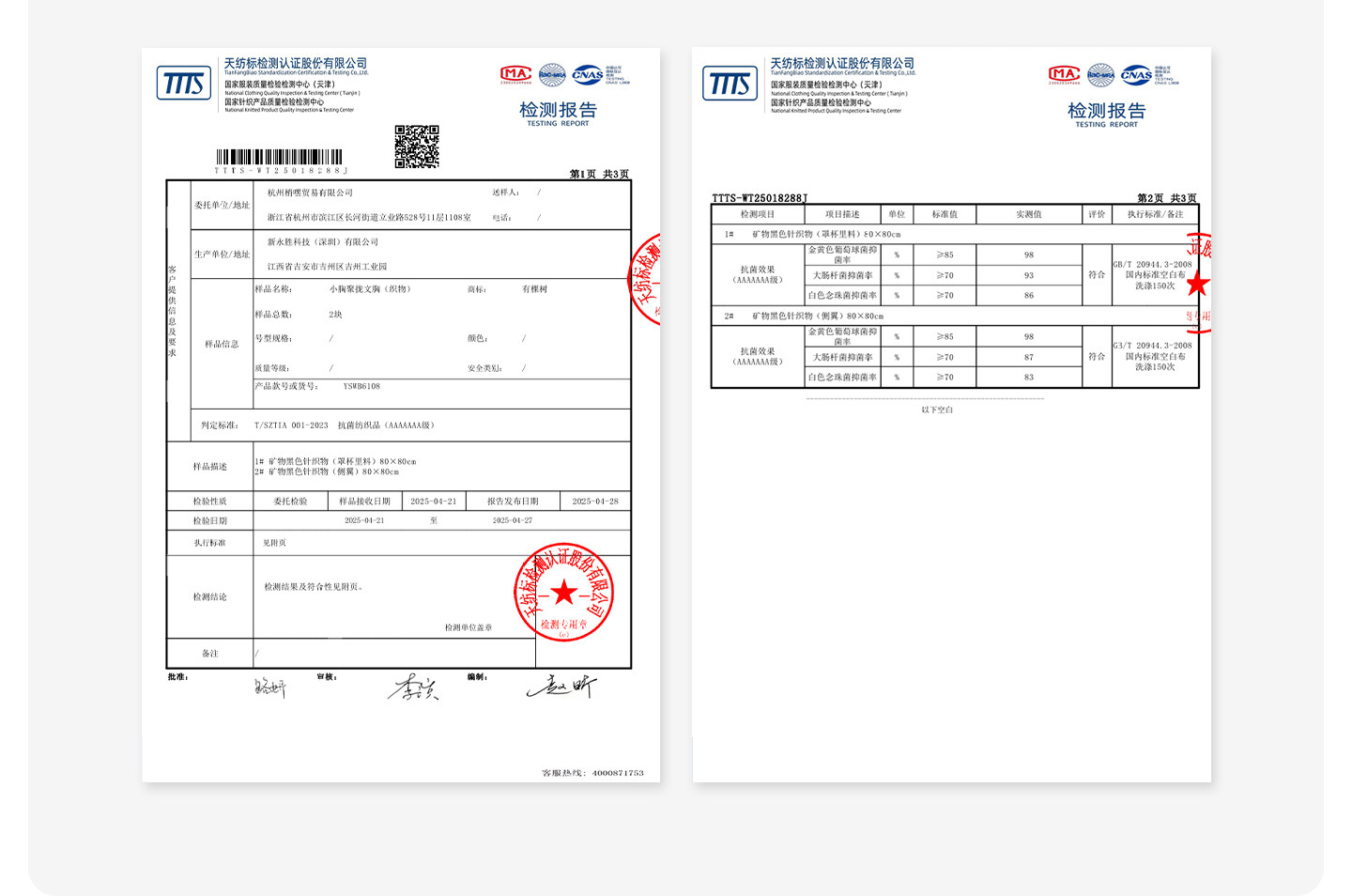 | 面料功能 | 7A抗菌 |