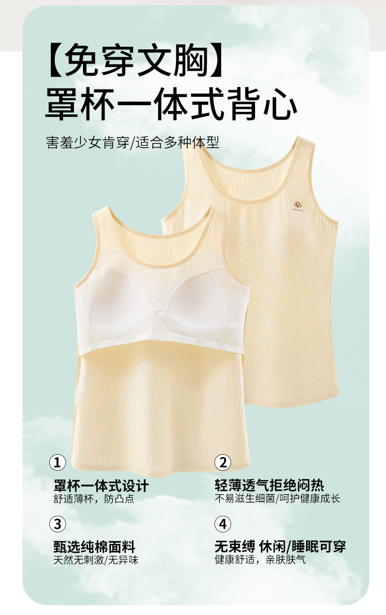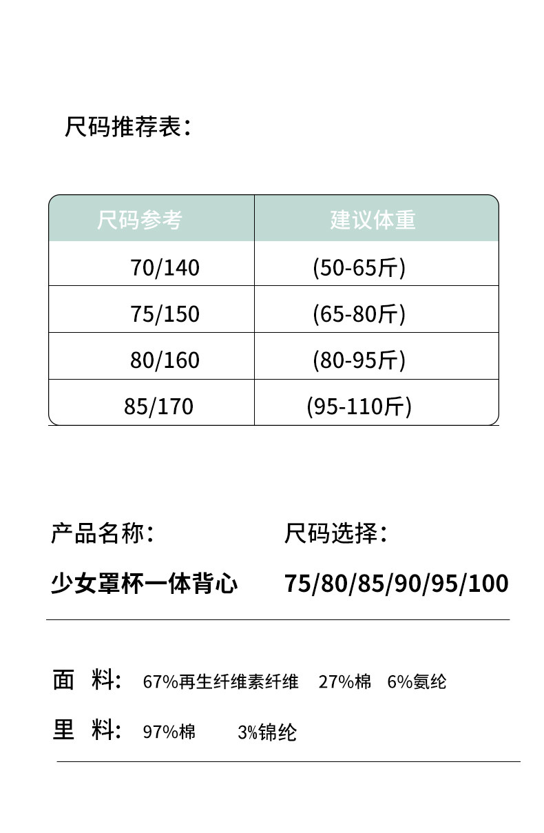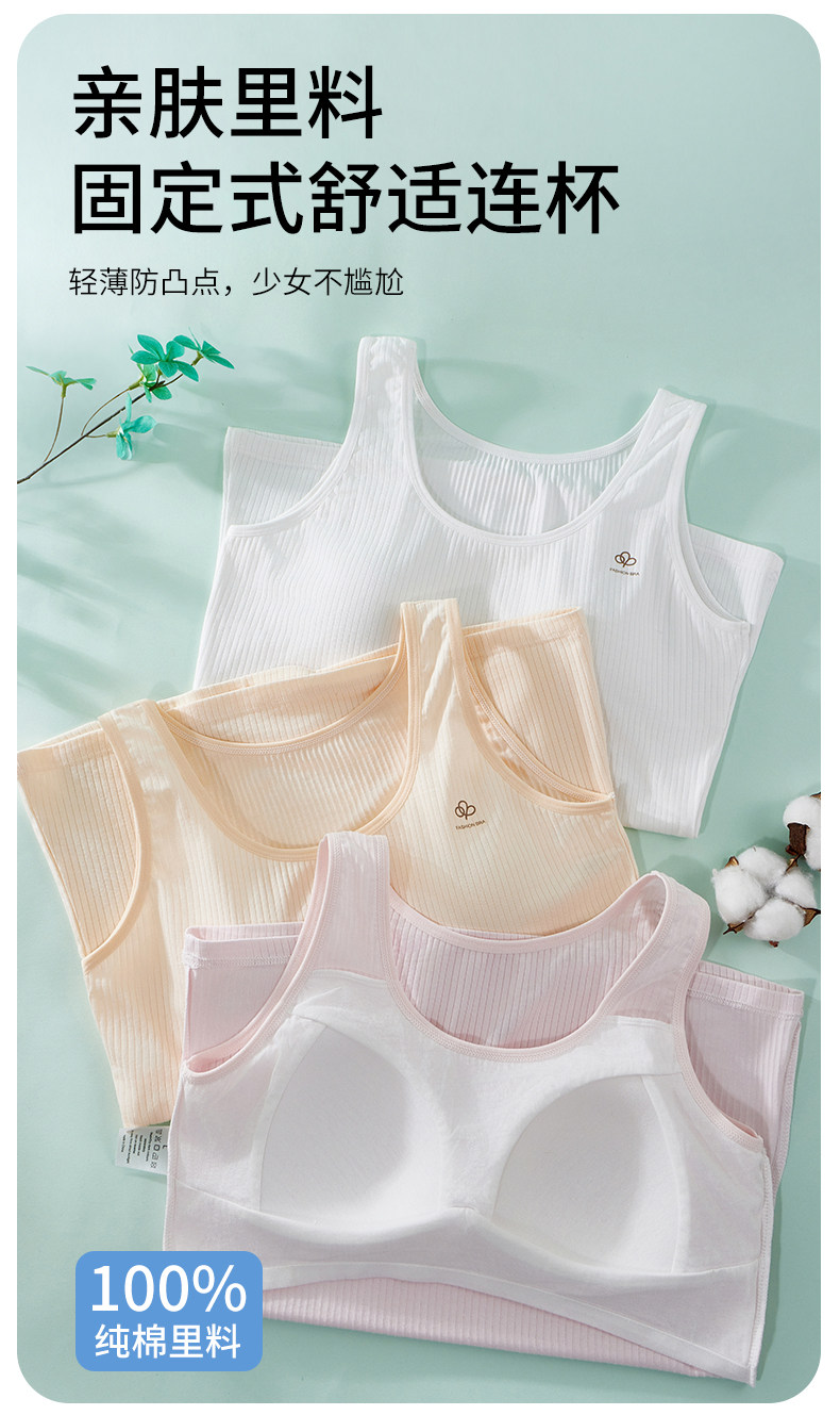青春發育期初高中學生薄款背心女帶胸墊吊帶文胸長款大童少女內衣