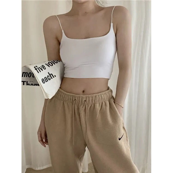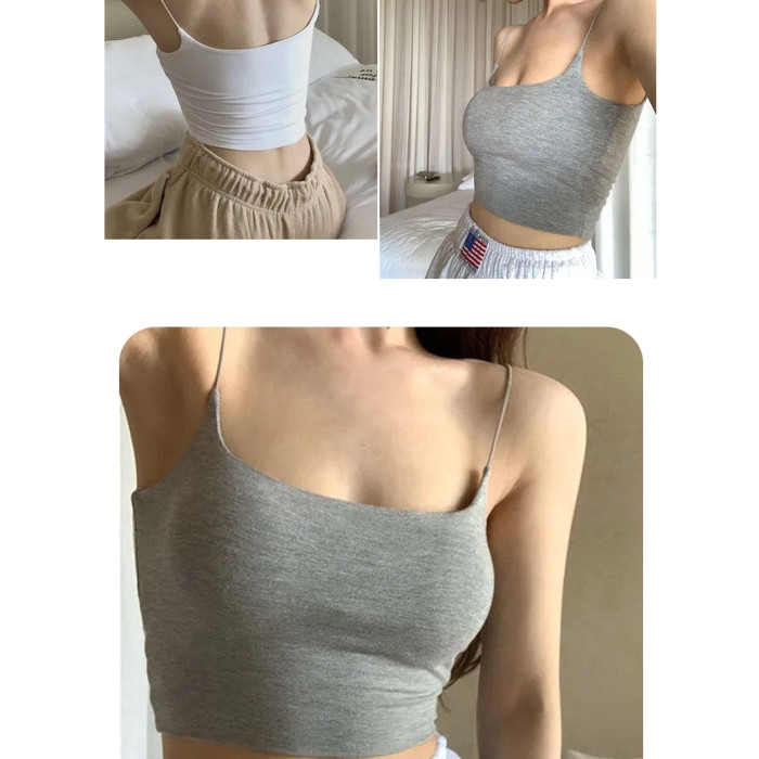 細肩帶吊帶背心女帶胸墊內搭u型美背內衣運動文胸一體bra抹胸白色