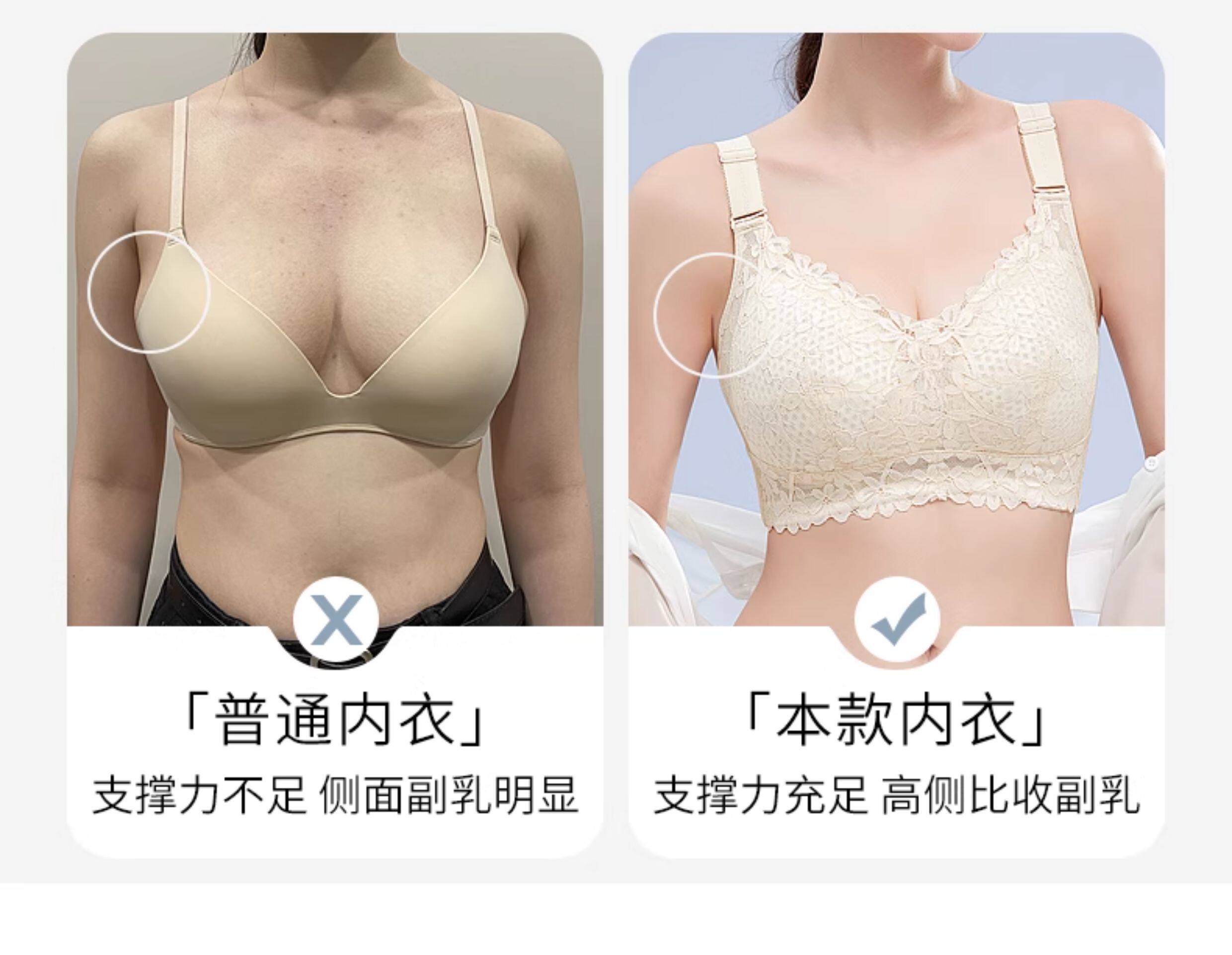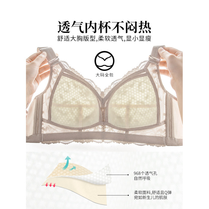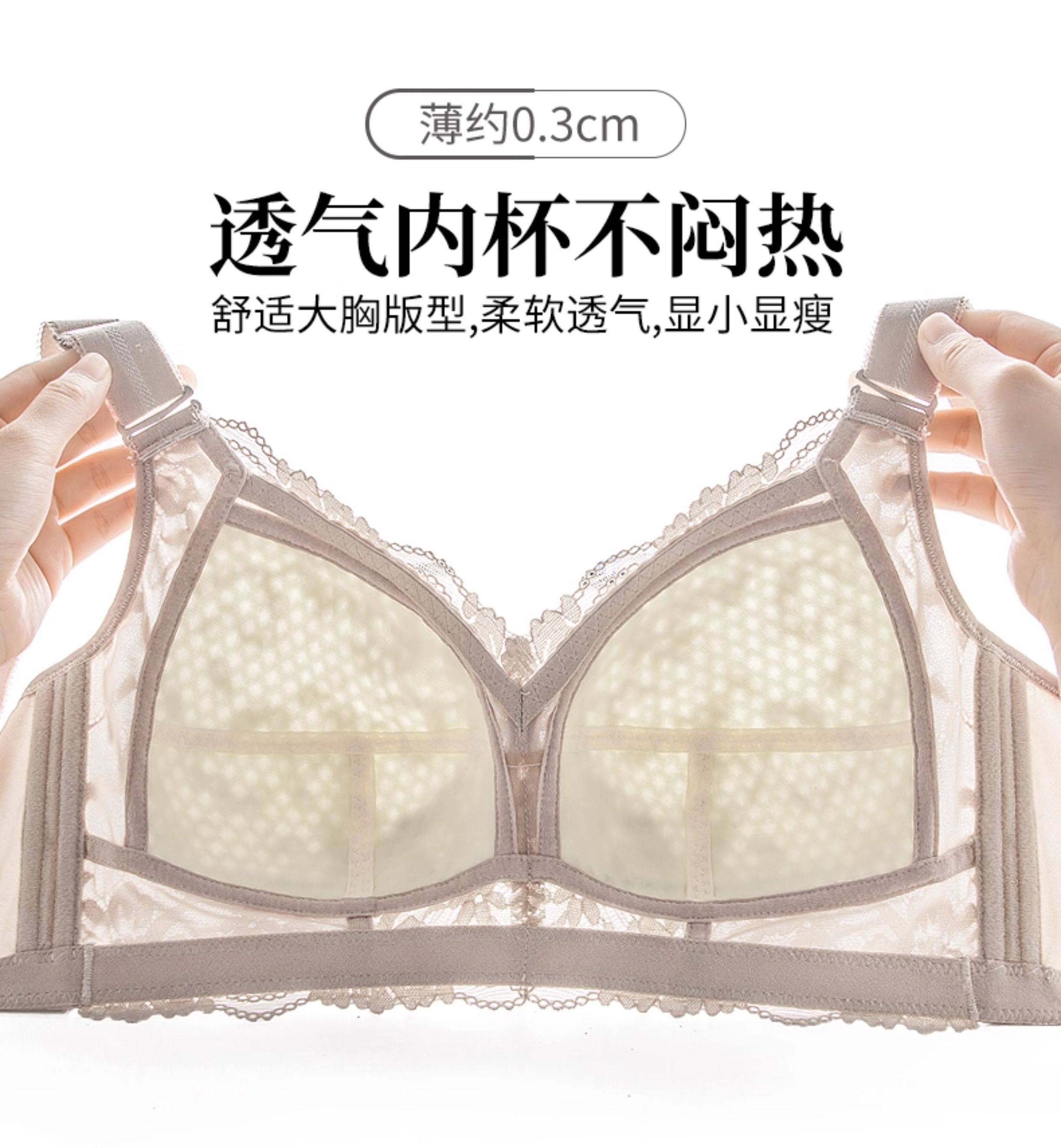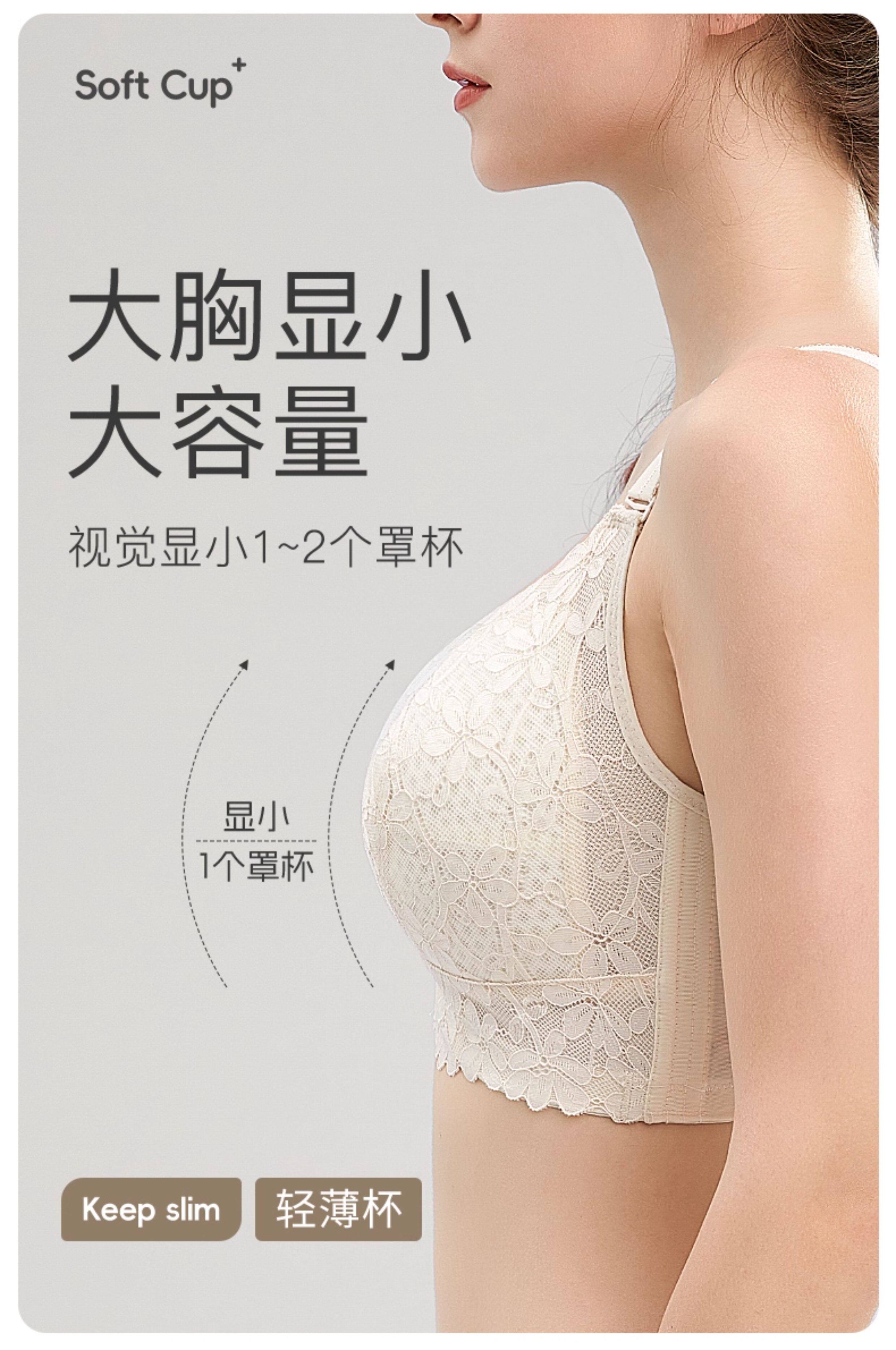 內衣女無鋼圈大碼薄款大胸顯小文胸本命年大紅色收副乳防下垂胸罩