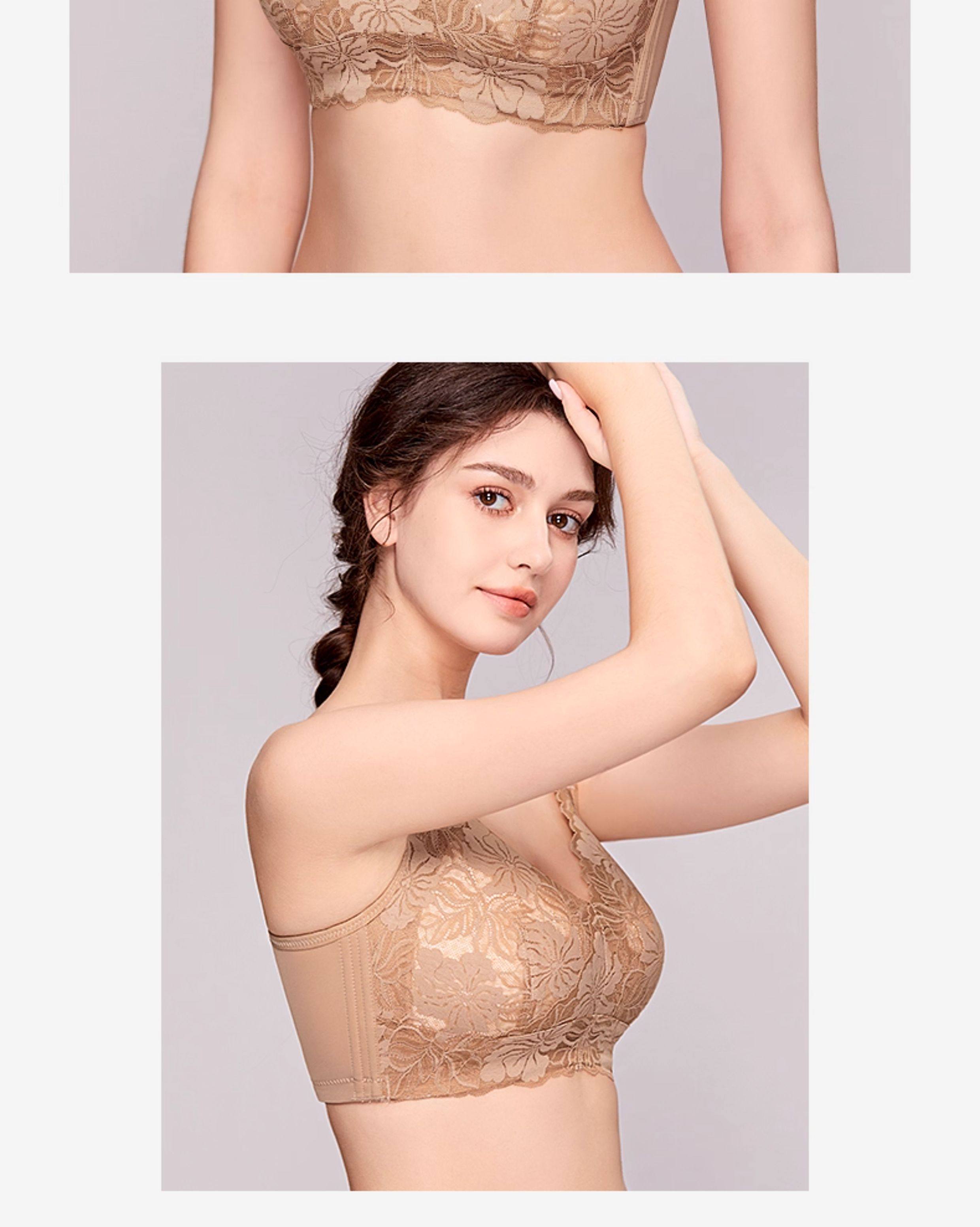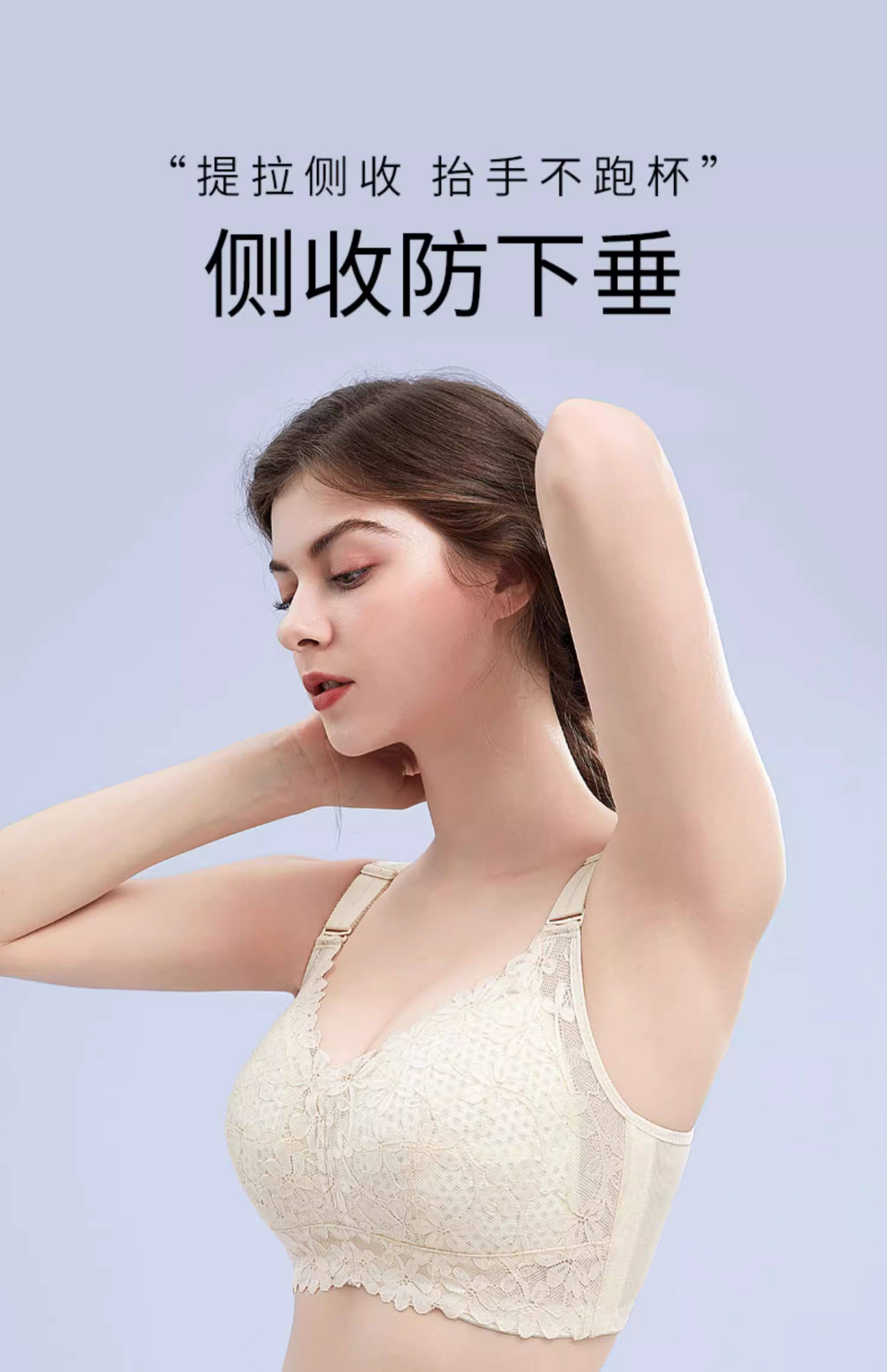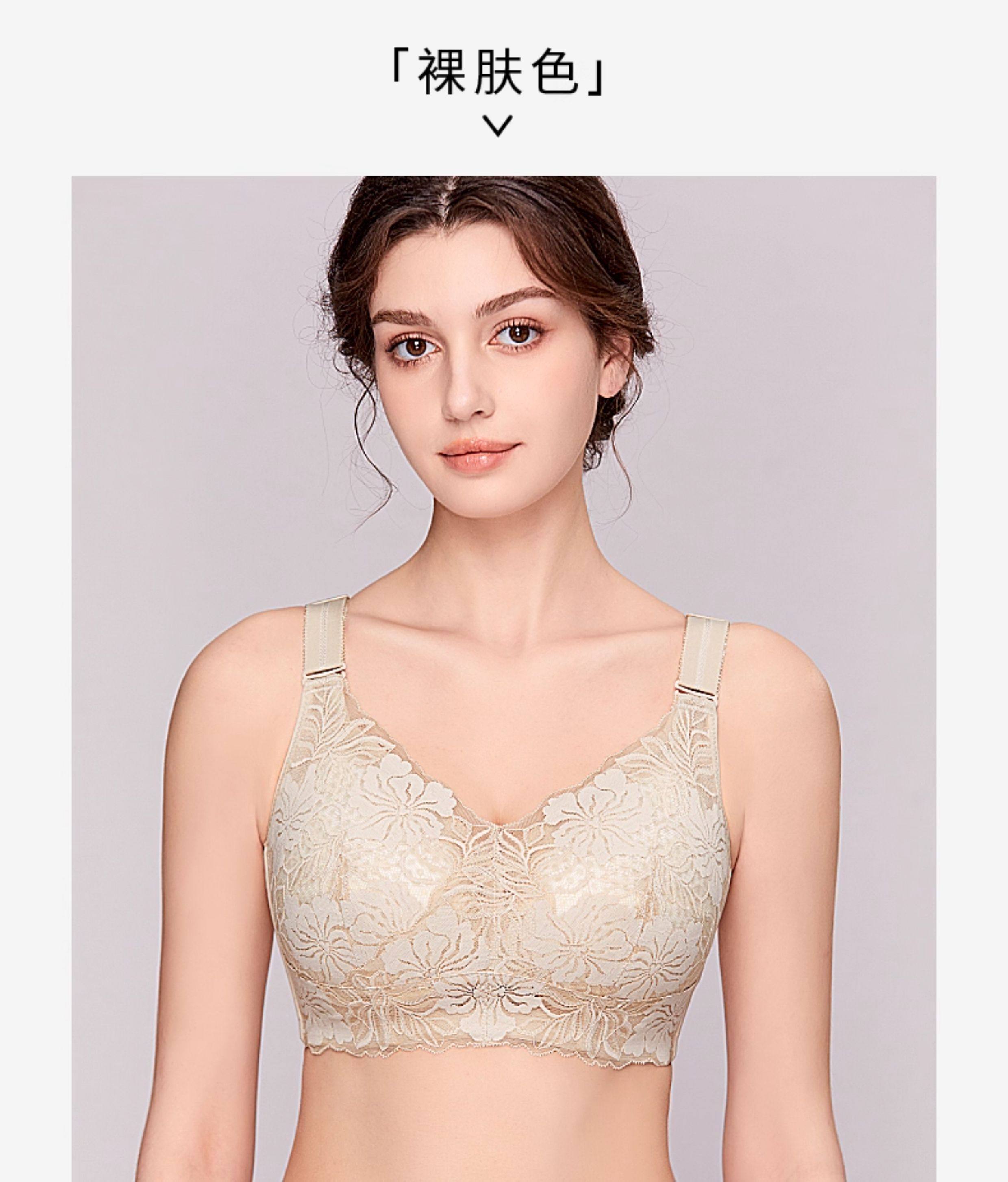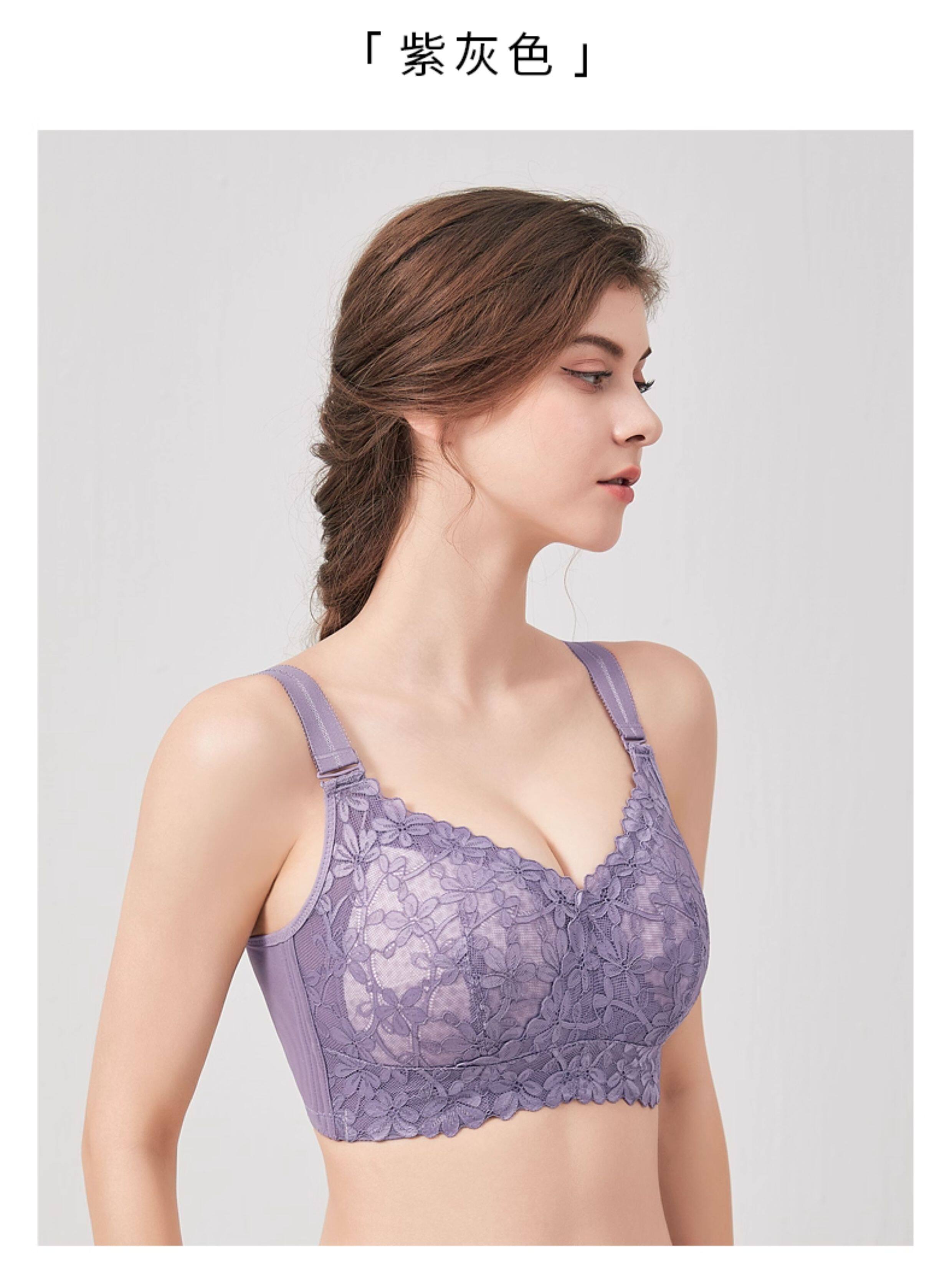 內衣女無鋼圈大碼薄款大胸顯小文胸本命年大紅色收副乳防下垂胸罩