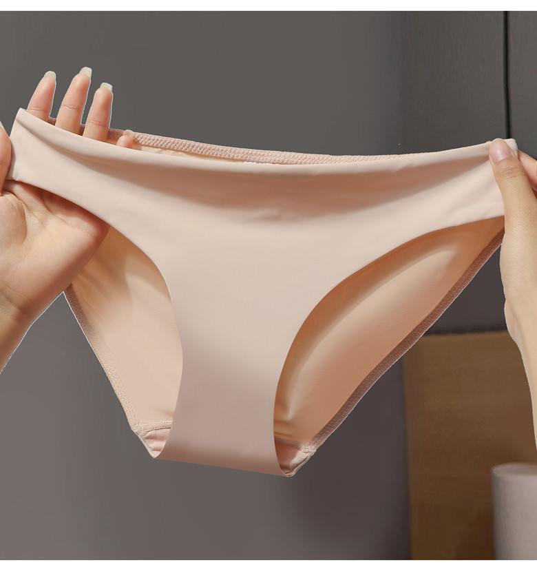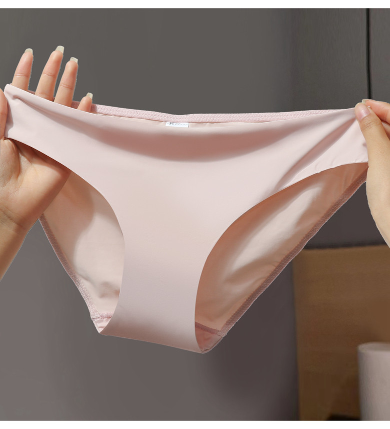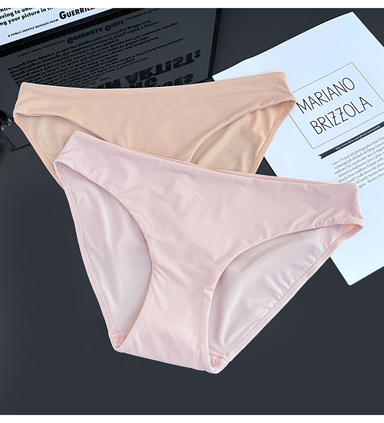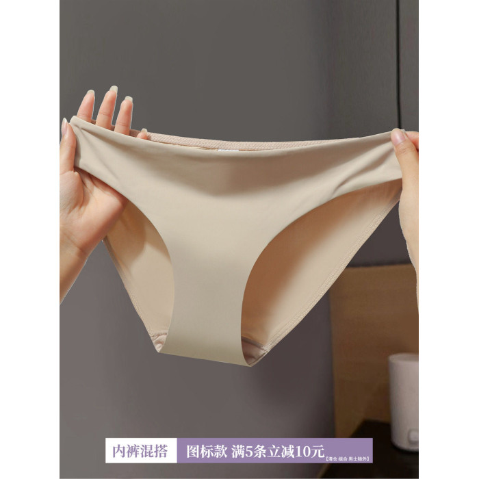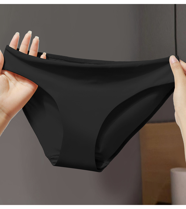 輕奢舒適柔軟冰絲內褲女低腰絲滑裸感透氣黑白純色無痕大碼三角褲