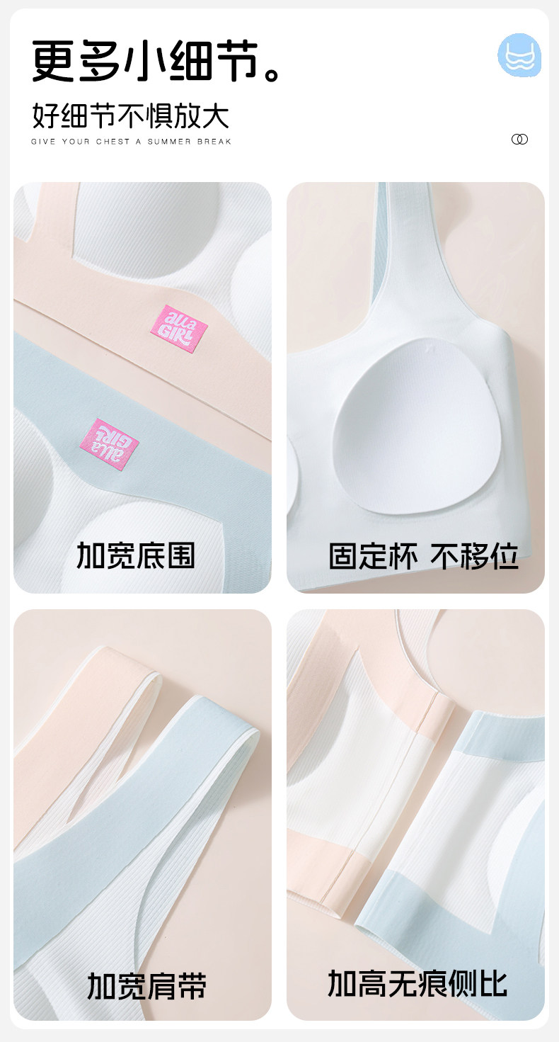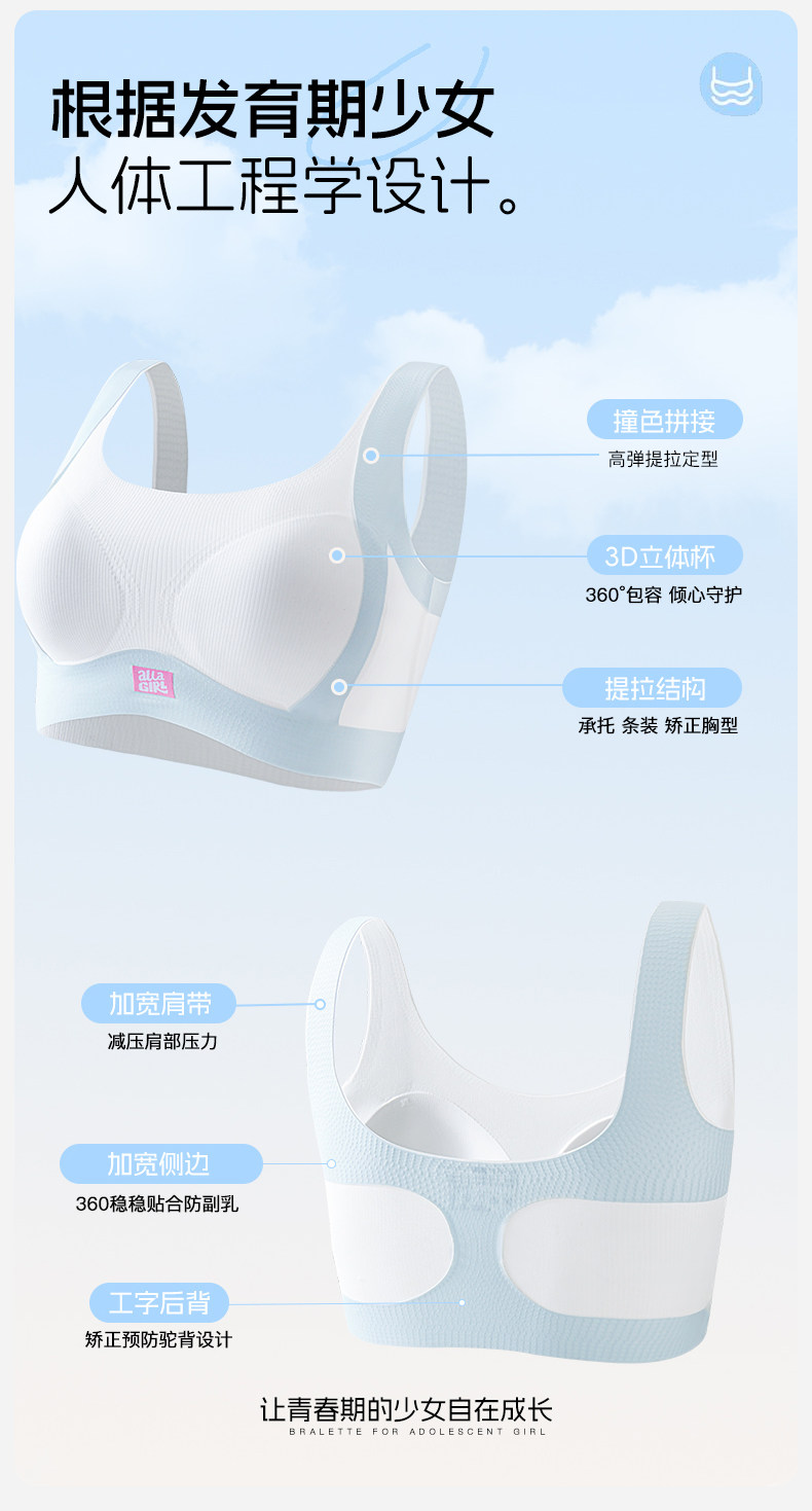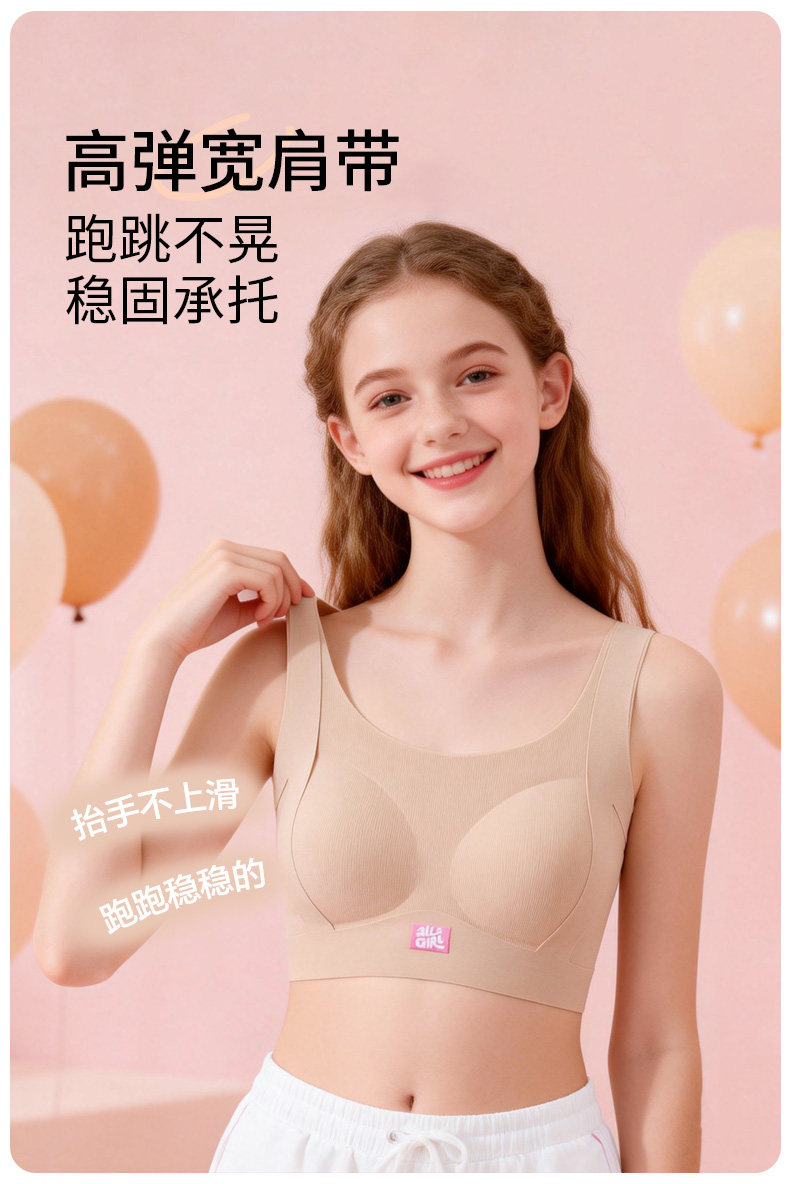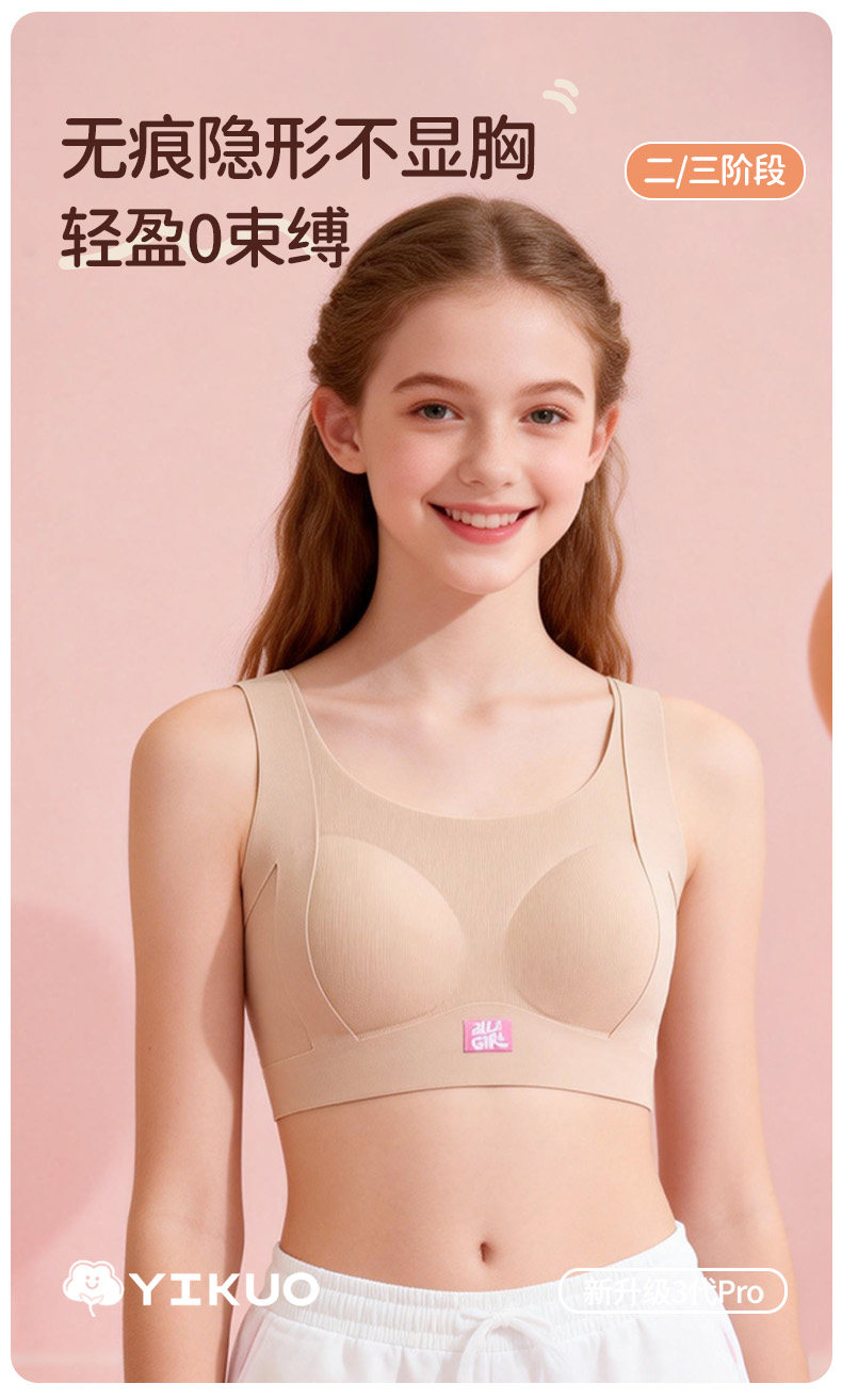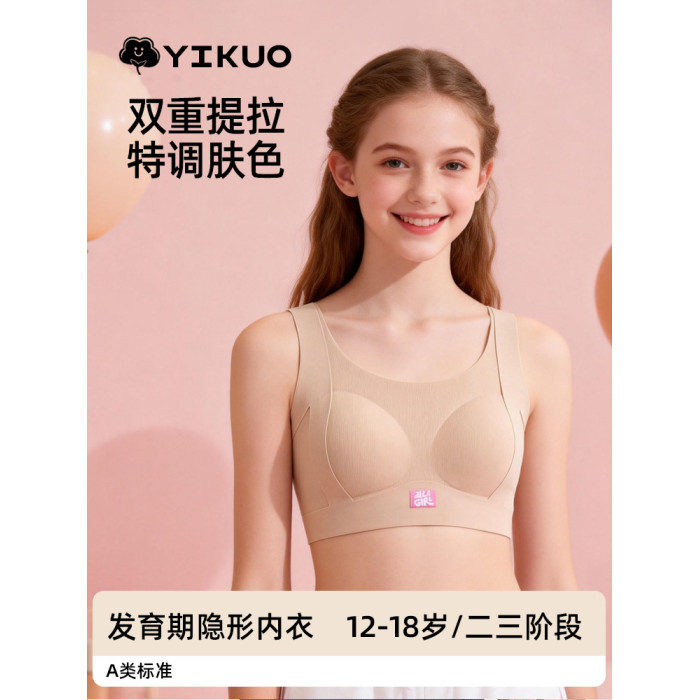 YIKUO憶括少女粉底液隱形內衣初中生發育期女大童背心高中生文胸