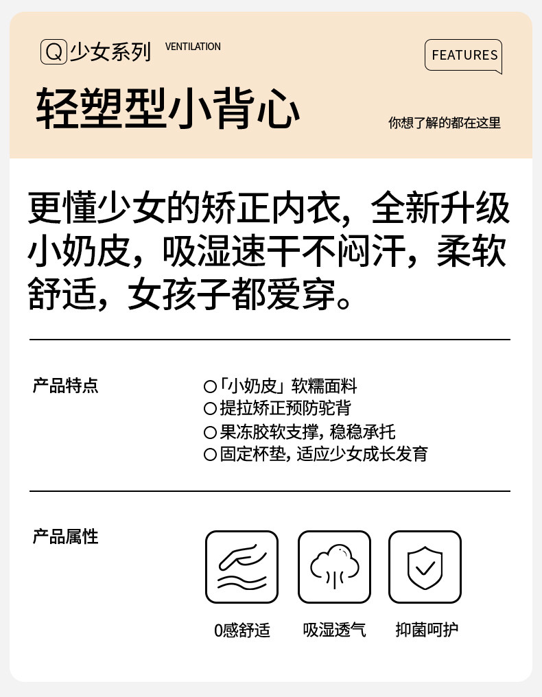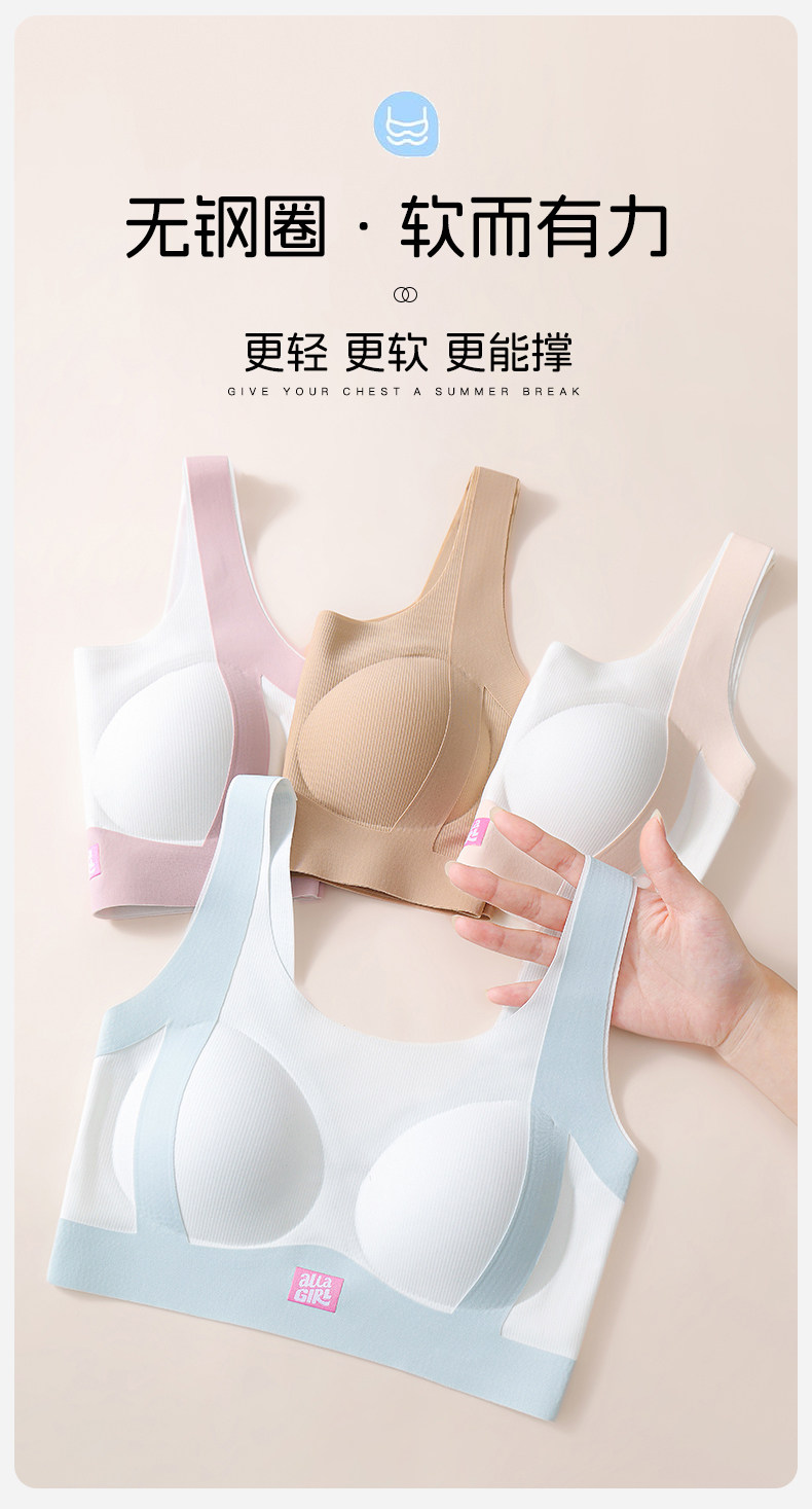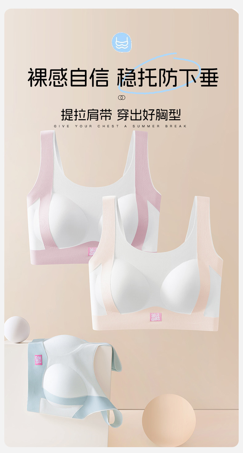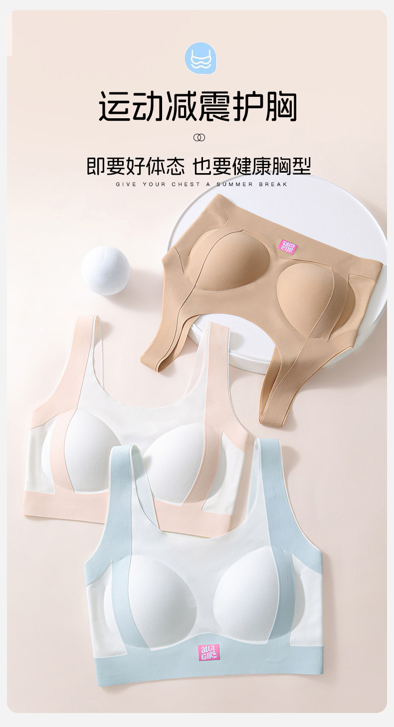 YIKUO憶括少女粉底液隱形內衣初中生發育期女大童背心高中生文胸