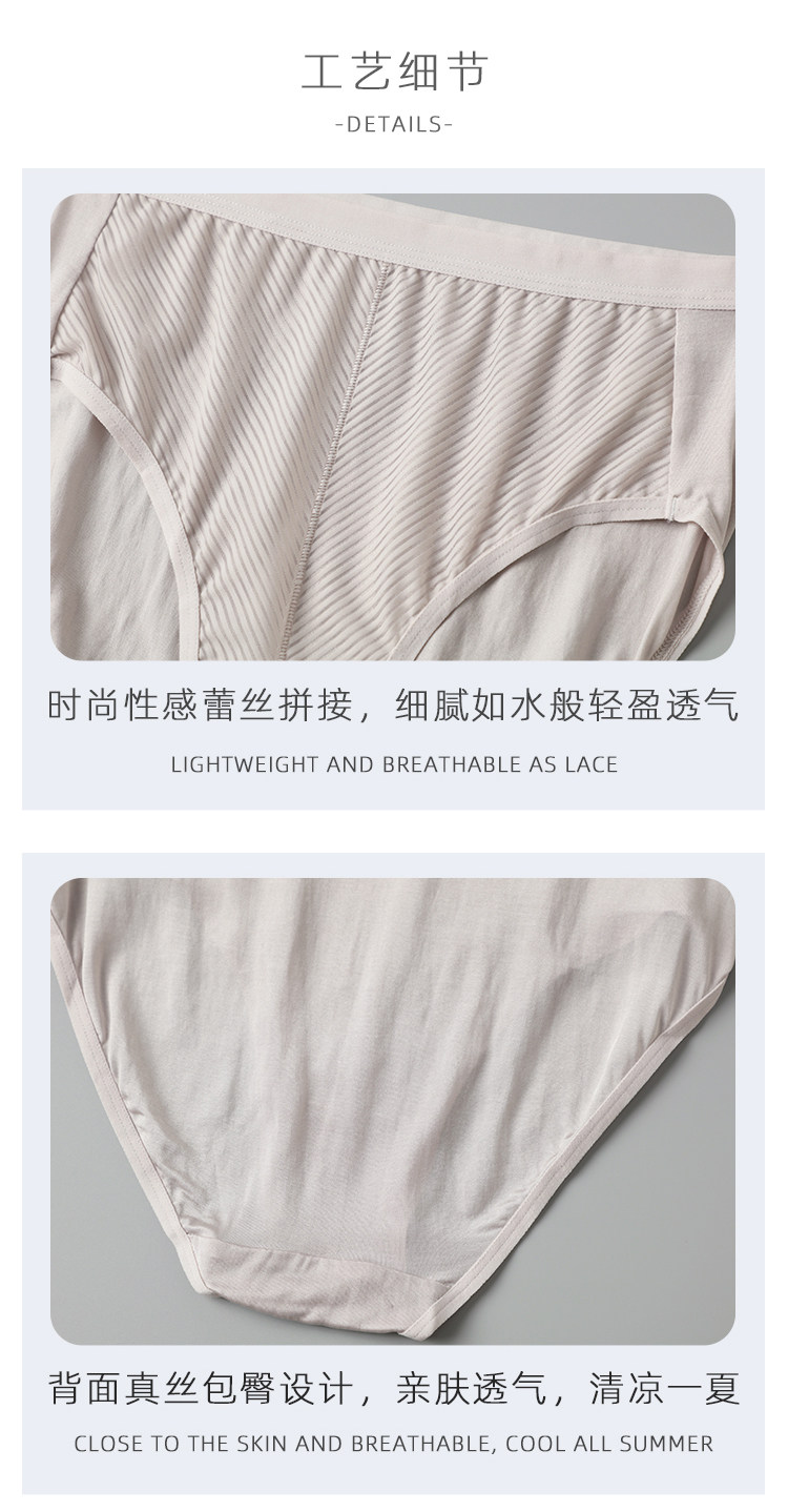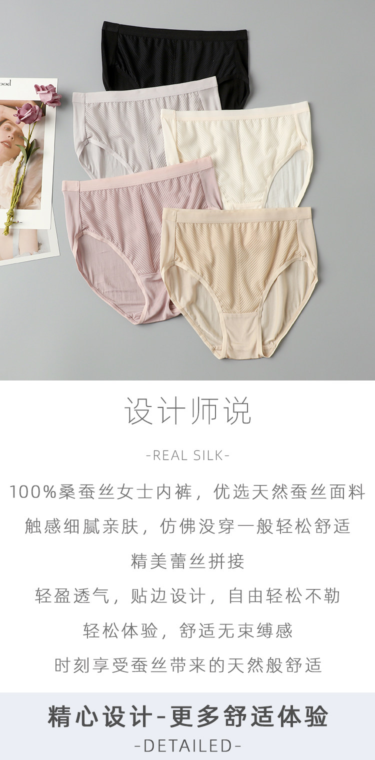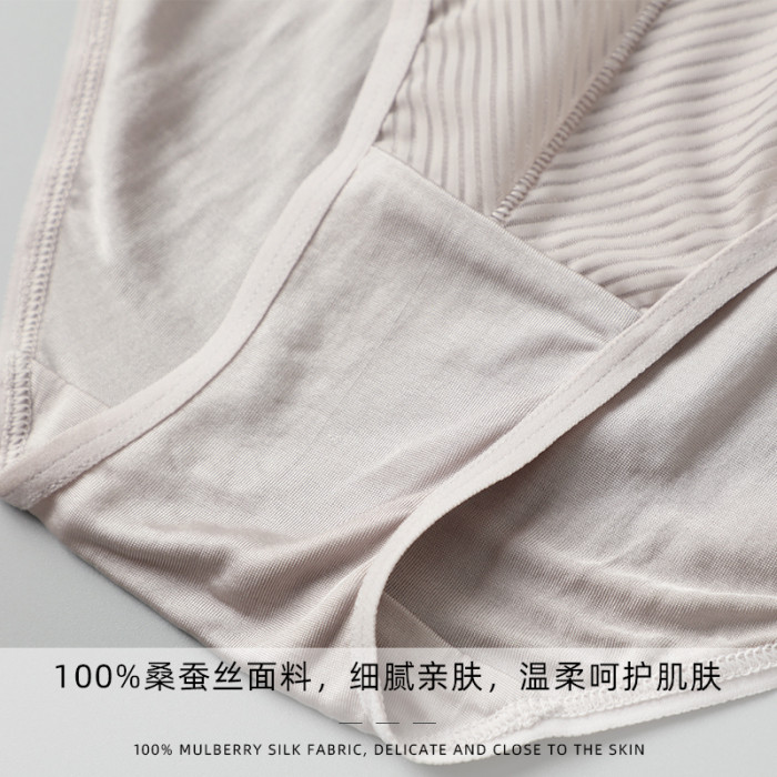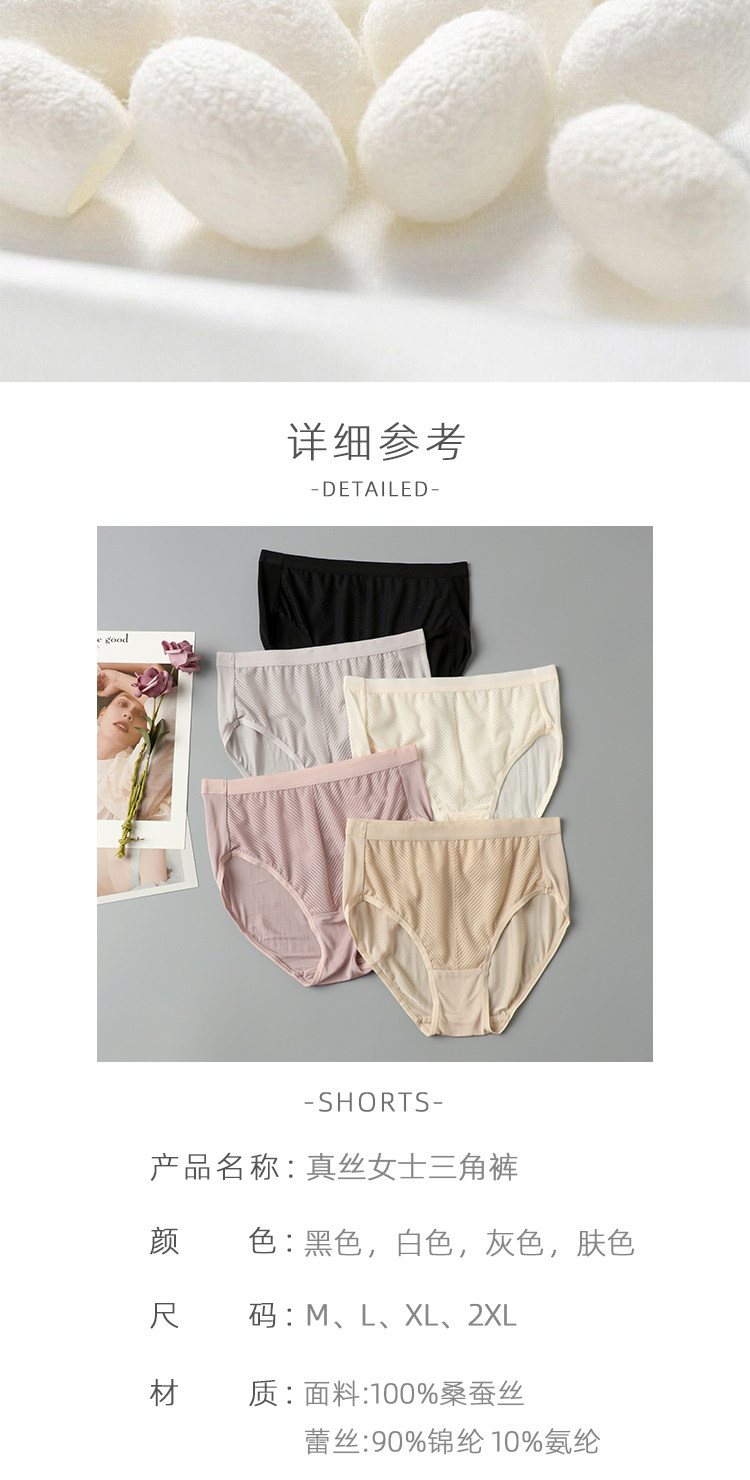 中高腰包臀針織真絲內褲 簡約透氣舒適大碼無痕桑蠶絲三角褲短褲