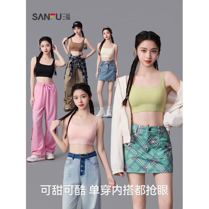 【少女文胸】三福抹胸寬肩帶背心發育期高中生學生美背運動內衣女