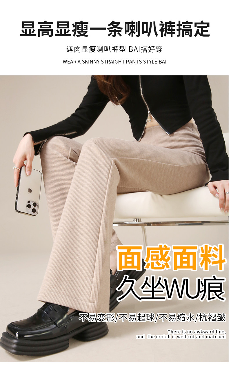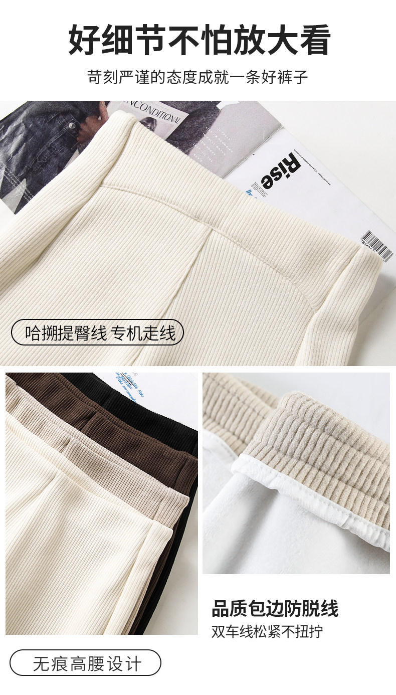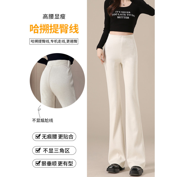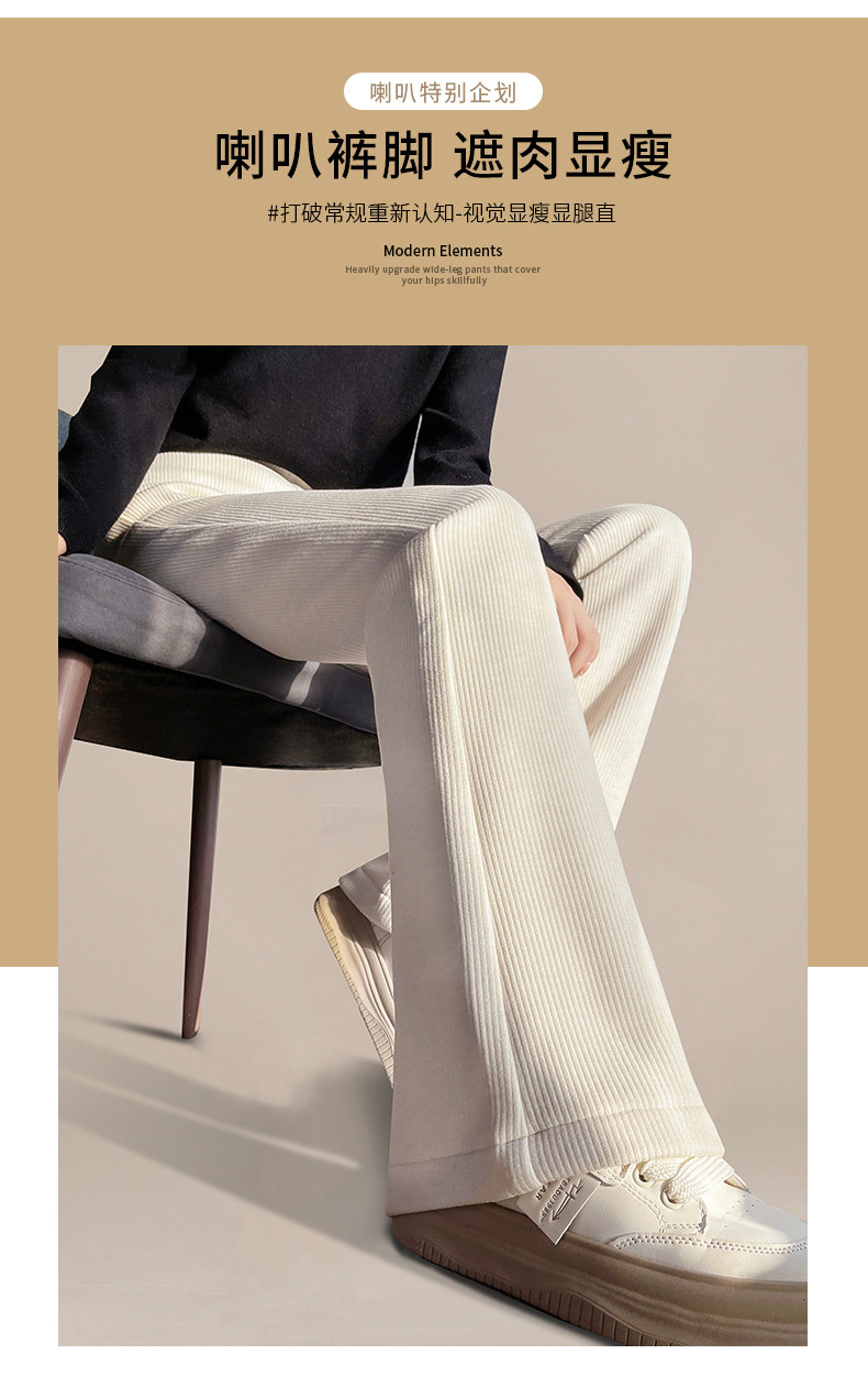 米白色加長褲子女高個子175超長版秋冬季加絨燈芯絨喇叭微喇褲子