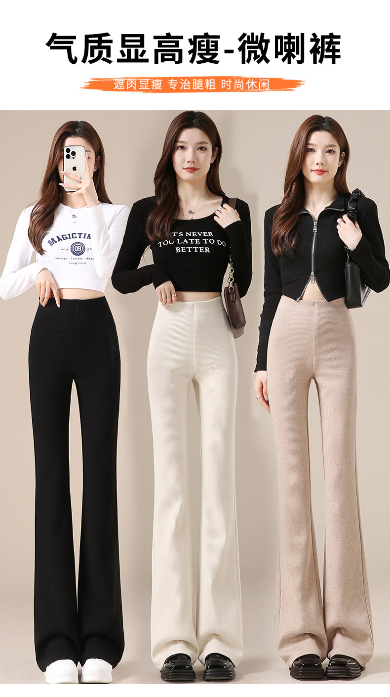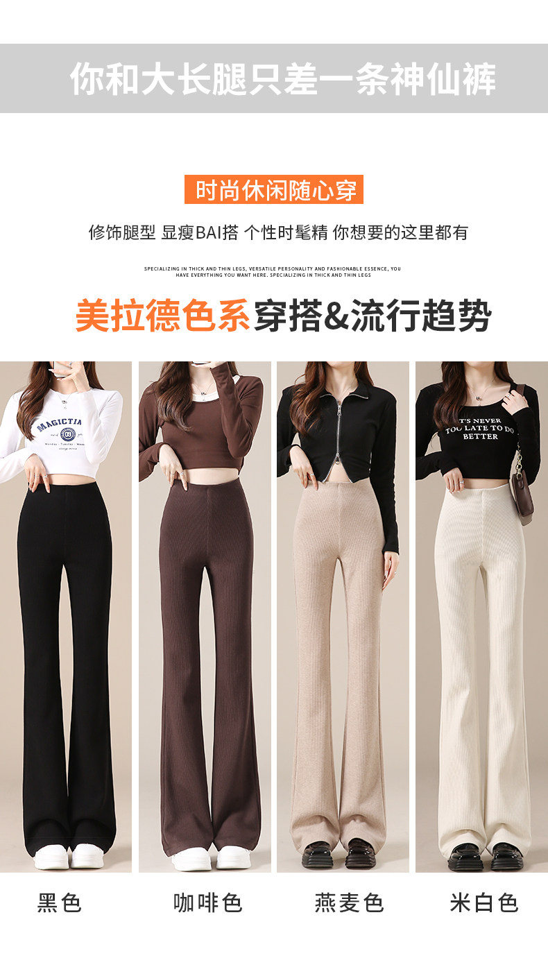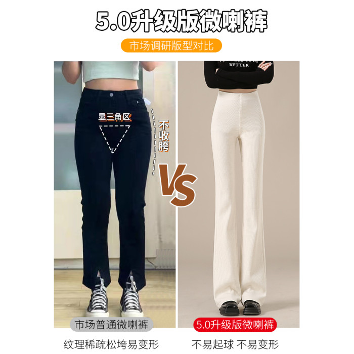 米白色加長褲子女高個子175超長版秋冬季加絨燈芯絨喇叭微喇褲子