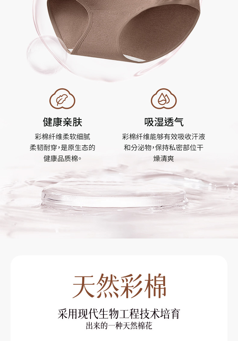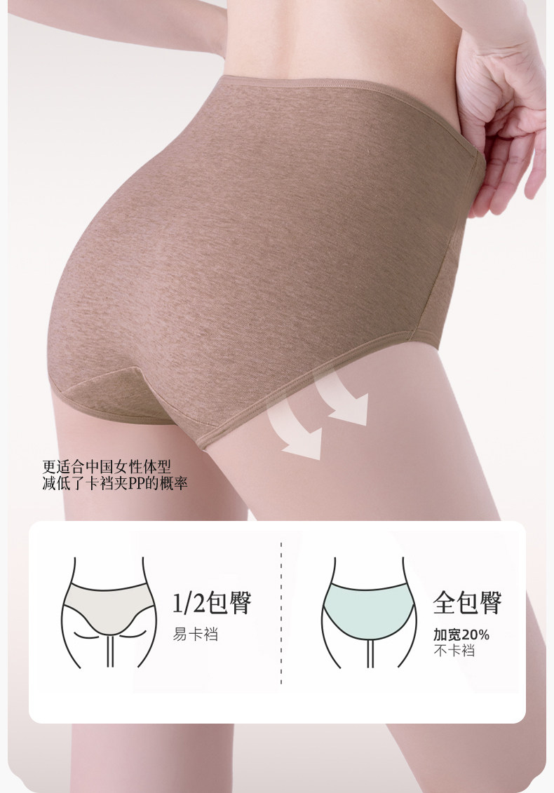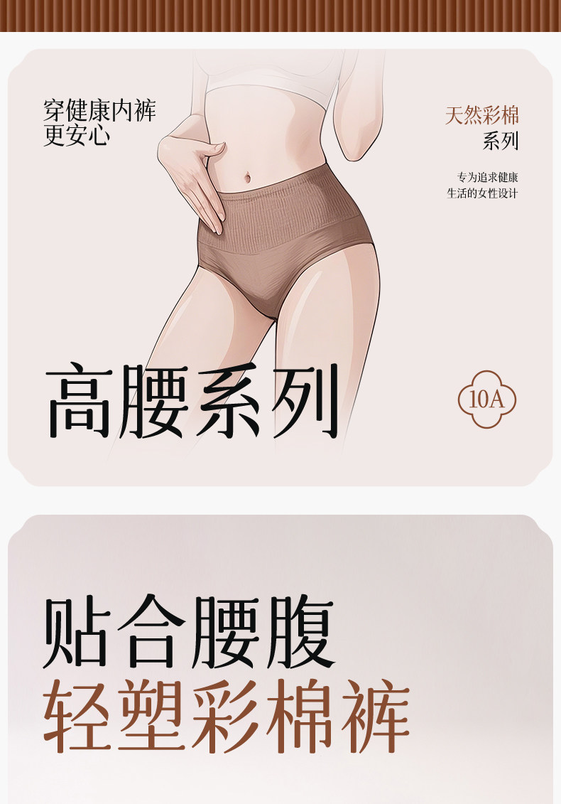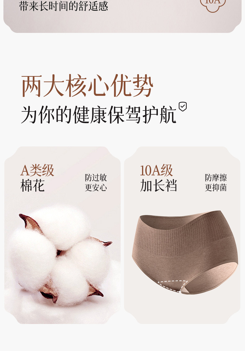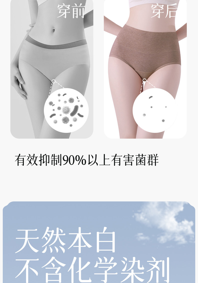 南極人天然彩棉高腰內褲女純棉抗菌襠無痕輕收腹不夾臀三角短褲頭