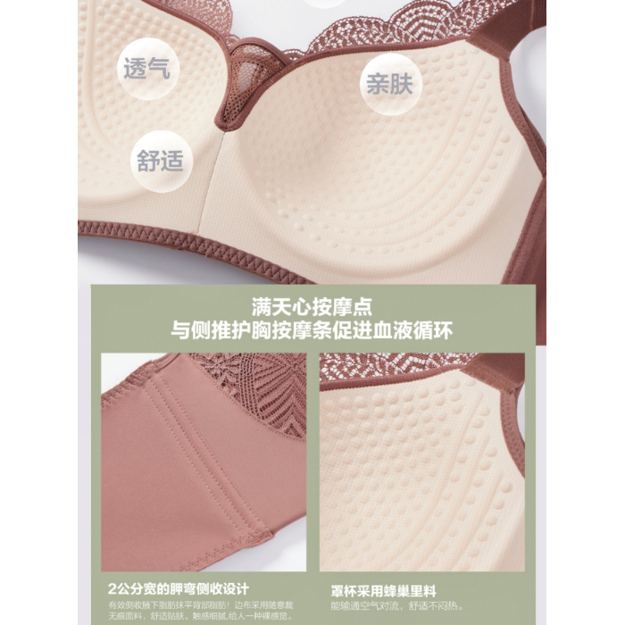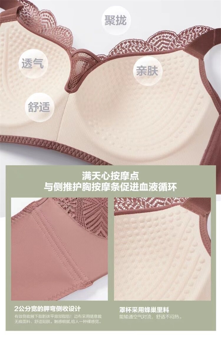 內衣大胸顯小按摩杯無鋼圈舒適寬肩帶收副乳調整聚攏防下垂文胸薄