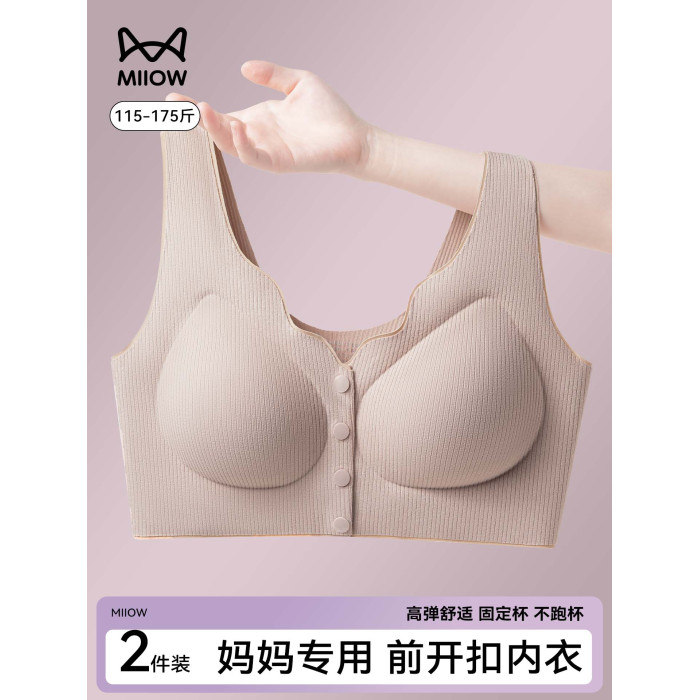 貓人中年媽媽舒適型文胸內衣中老年專用前釦式大碼無痕無鋼圈胸罩