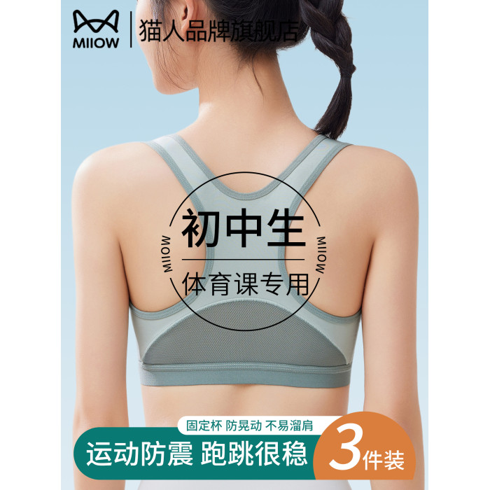 貓人發育期青少年女孩學生運動內衣女高中初中生防震跑步少女文胸