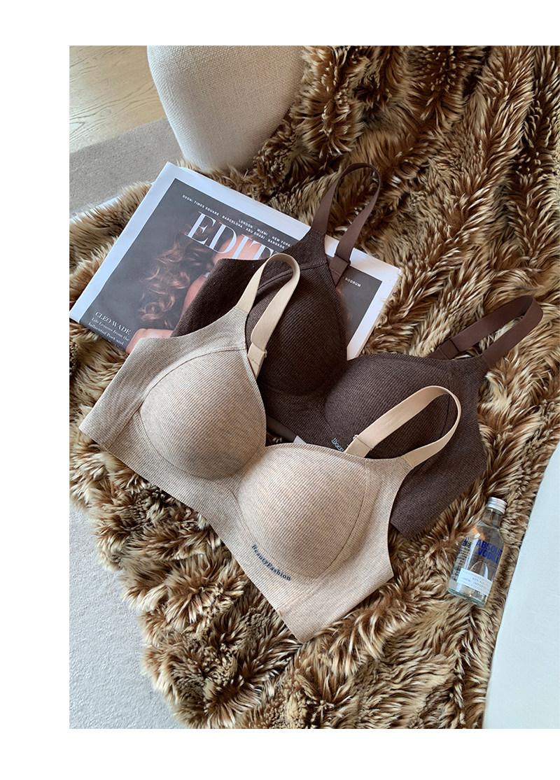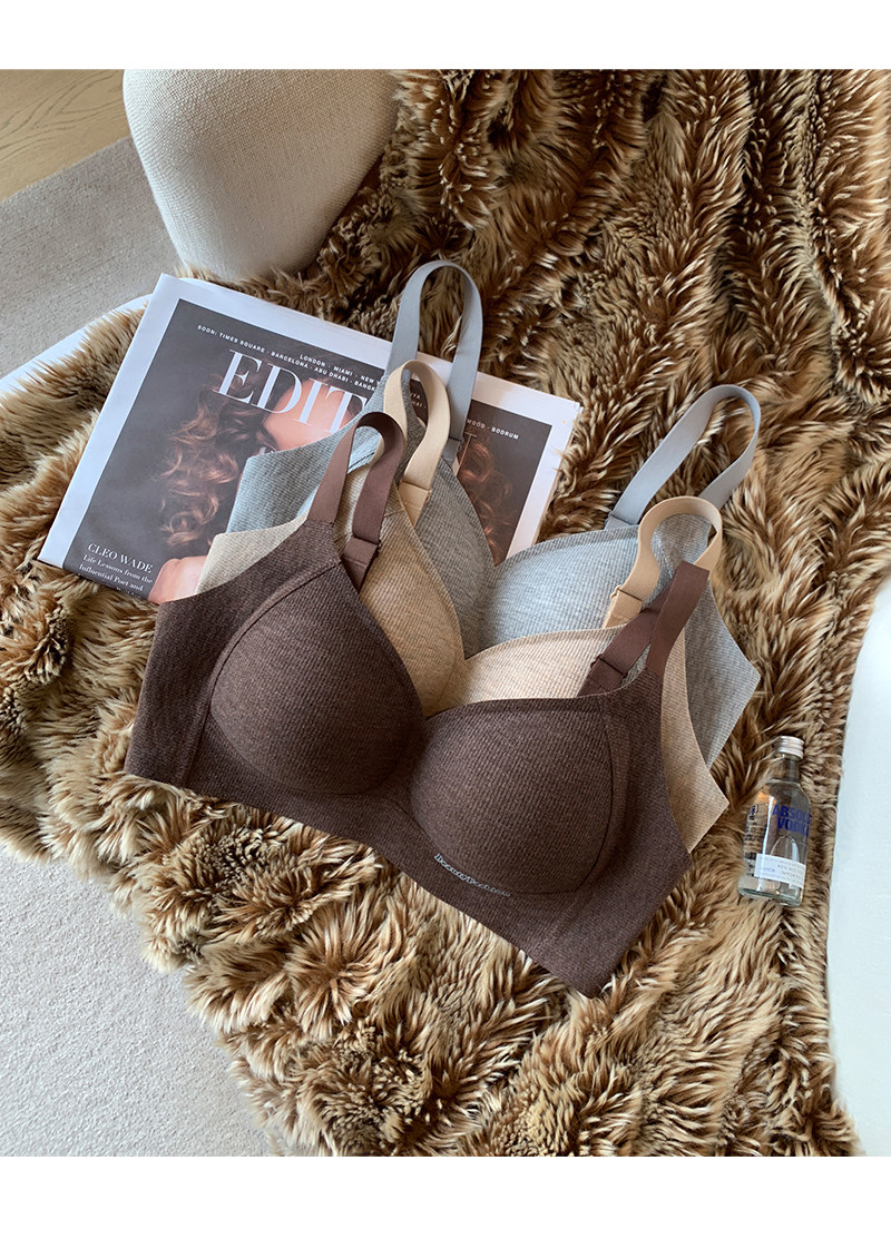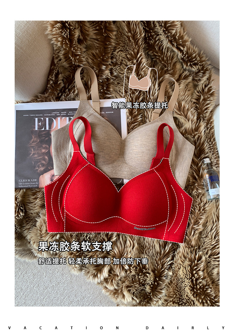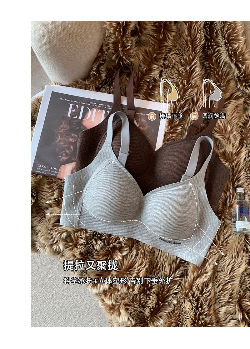 秋冬磨毛螺紋保暖內衣女小胸提拉聚攏無痕無鋼圈收副乳防下垂文胸