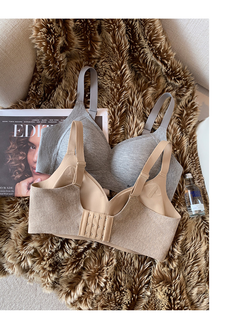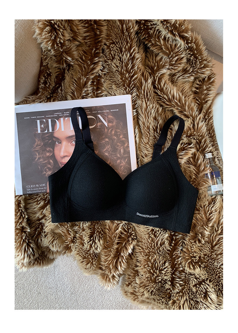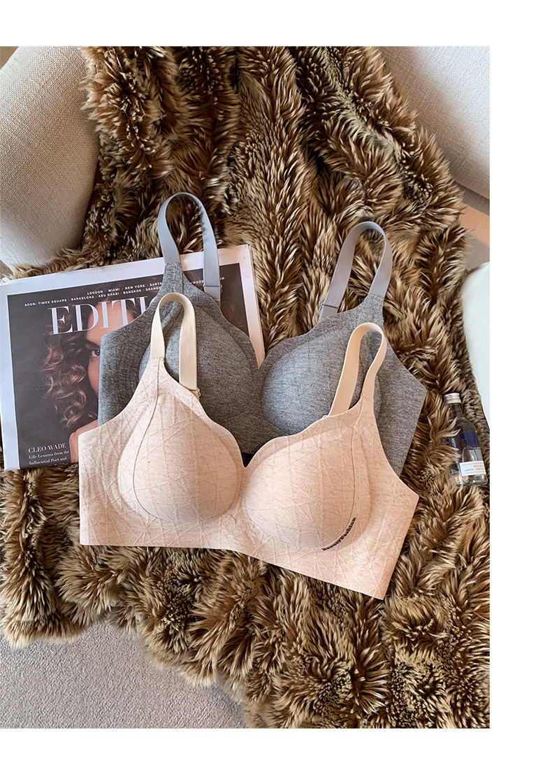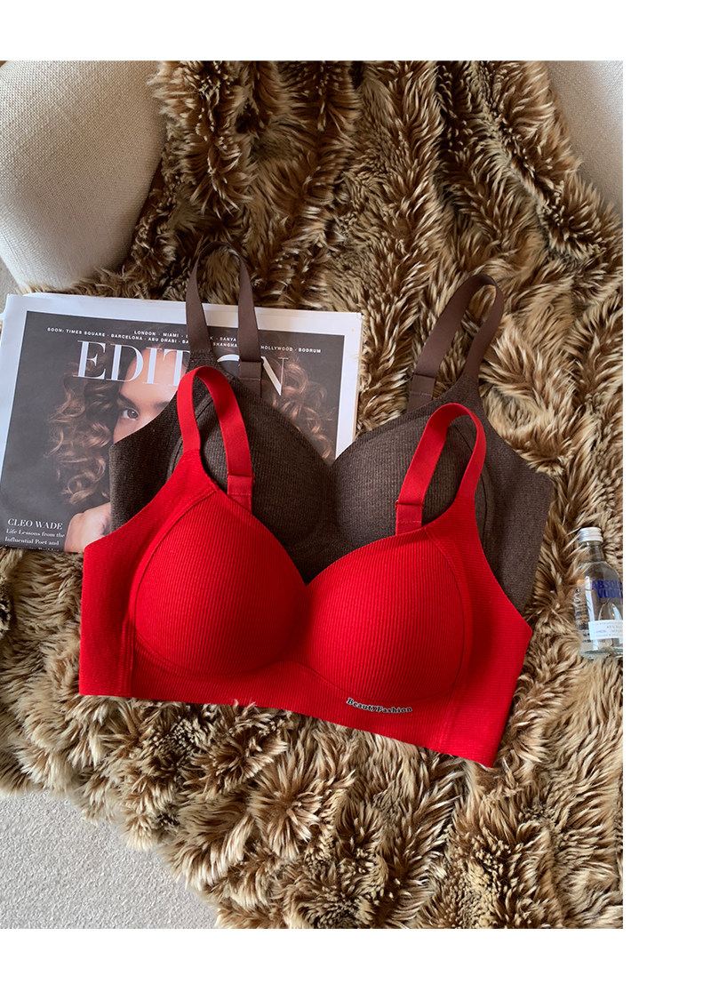秋冬磨毛螺紋保暖內衣女小胸提拉聚攏無痕無鋼圈收副乳防下垂文胸