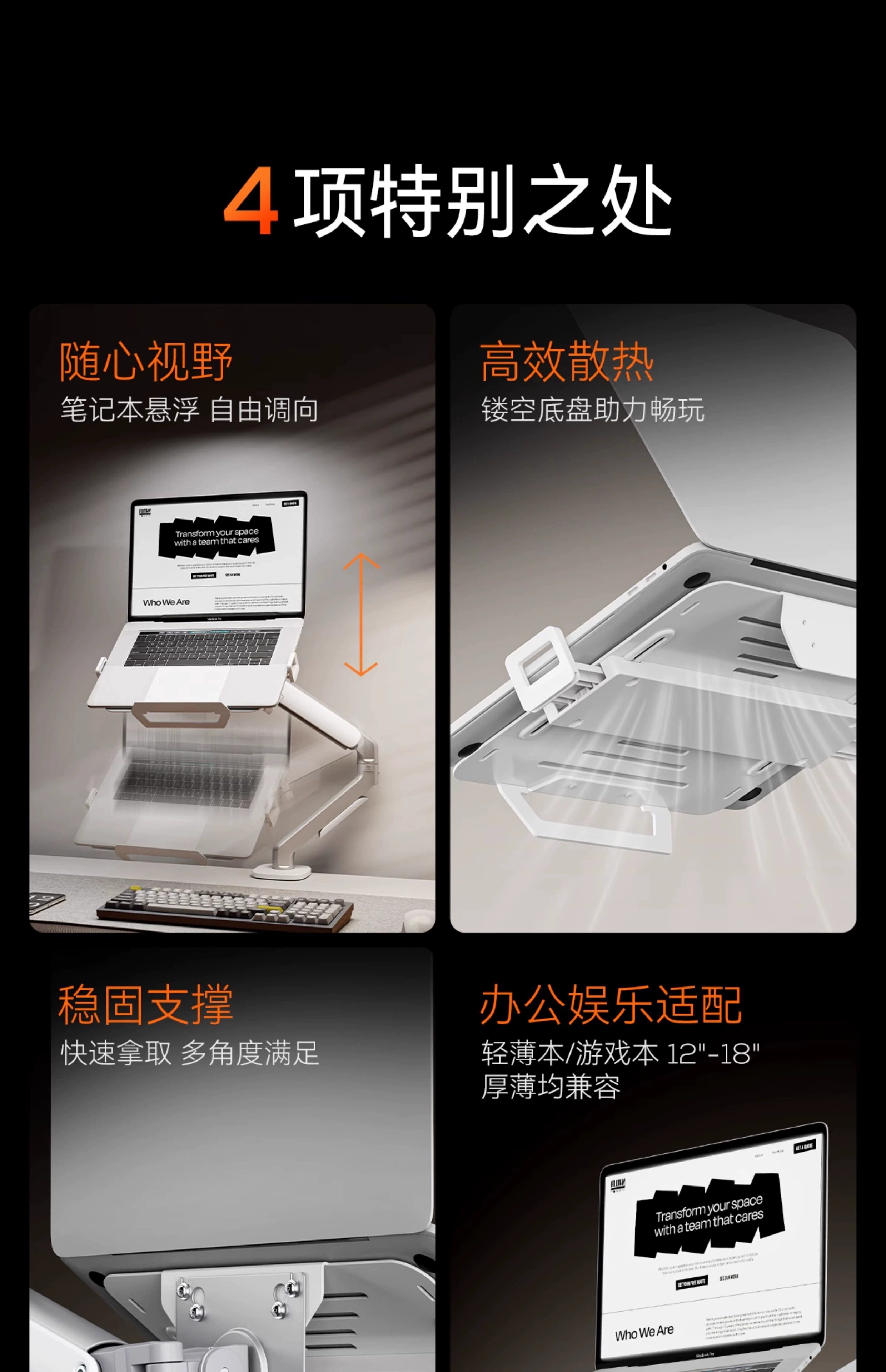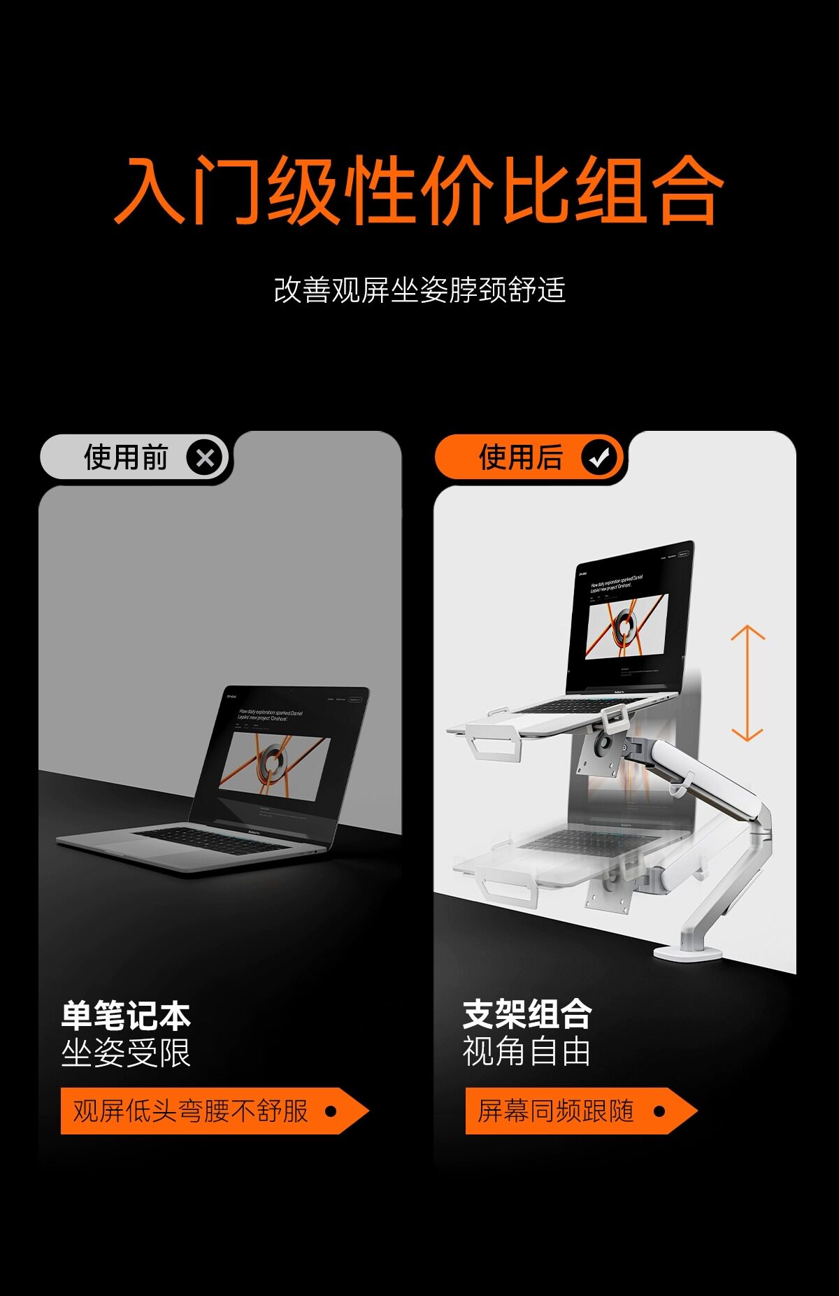松能筆記型電腦機械臂懸空支架桌面立式升降增高散熱拖架t61g+A80