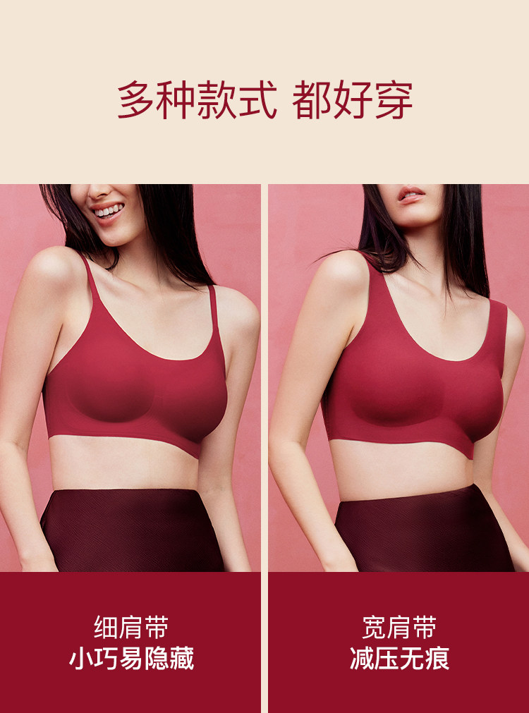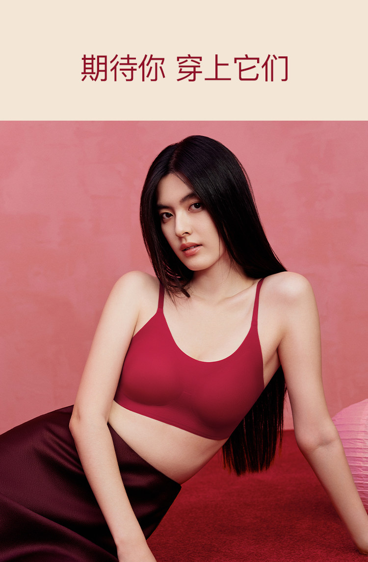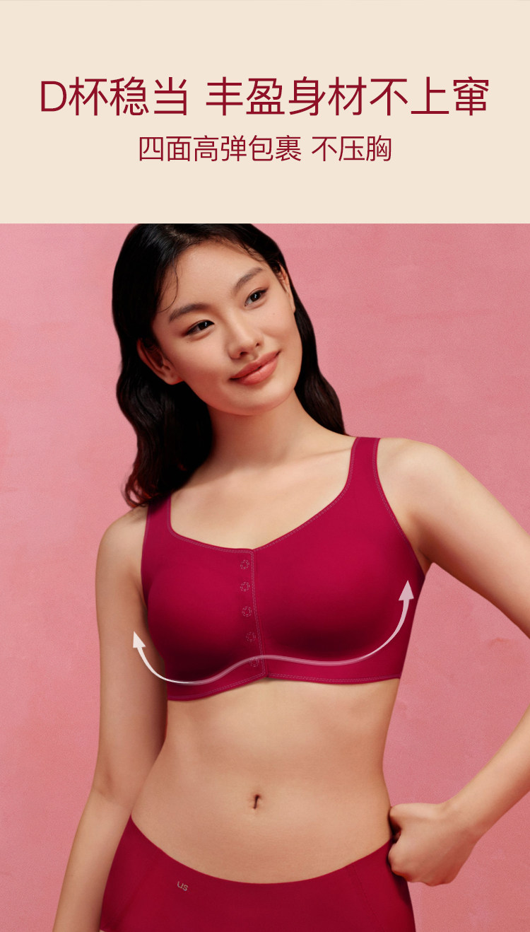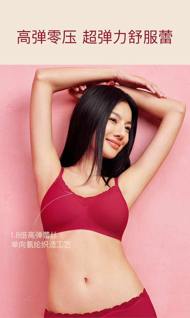 虞書訢同款ubras無尺碼紅色內衣本命年套裝蕾絲前釦背心無痕文胸