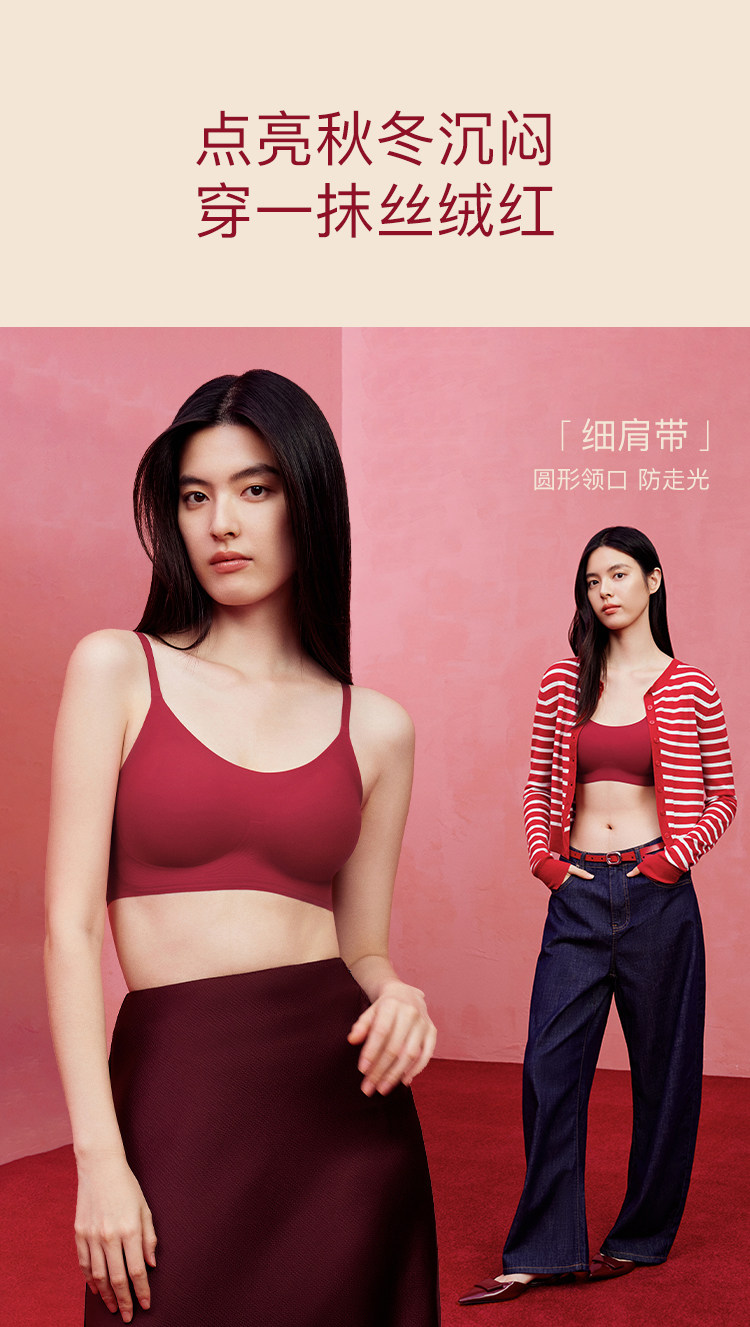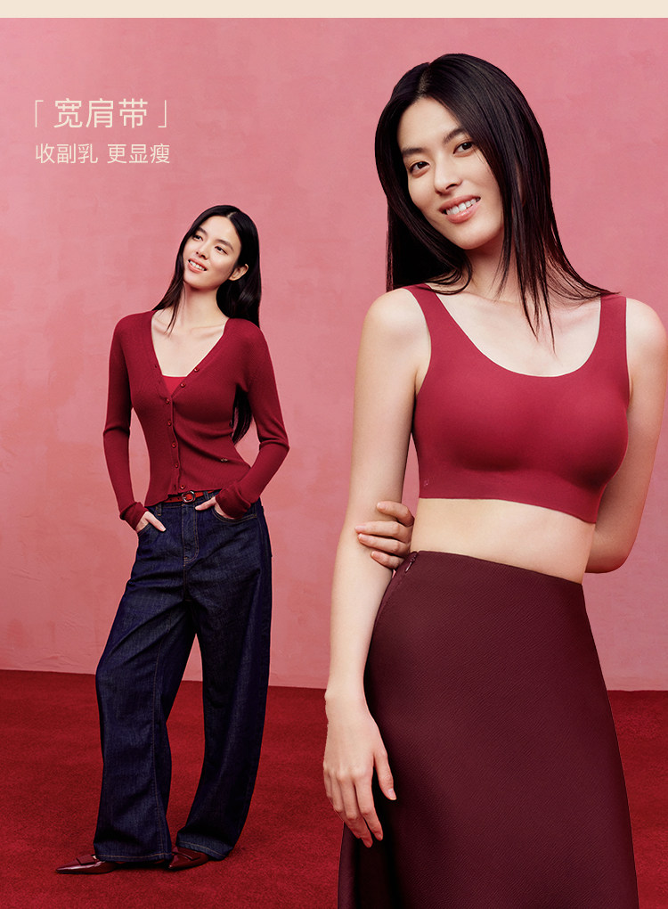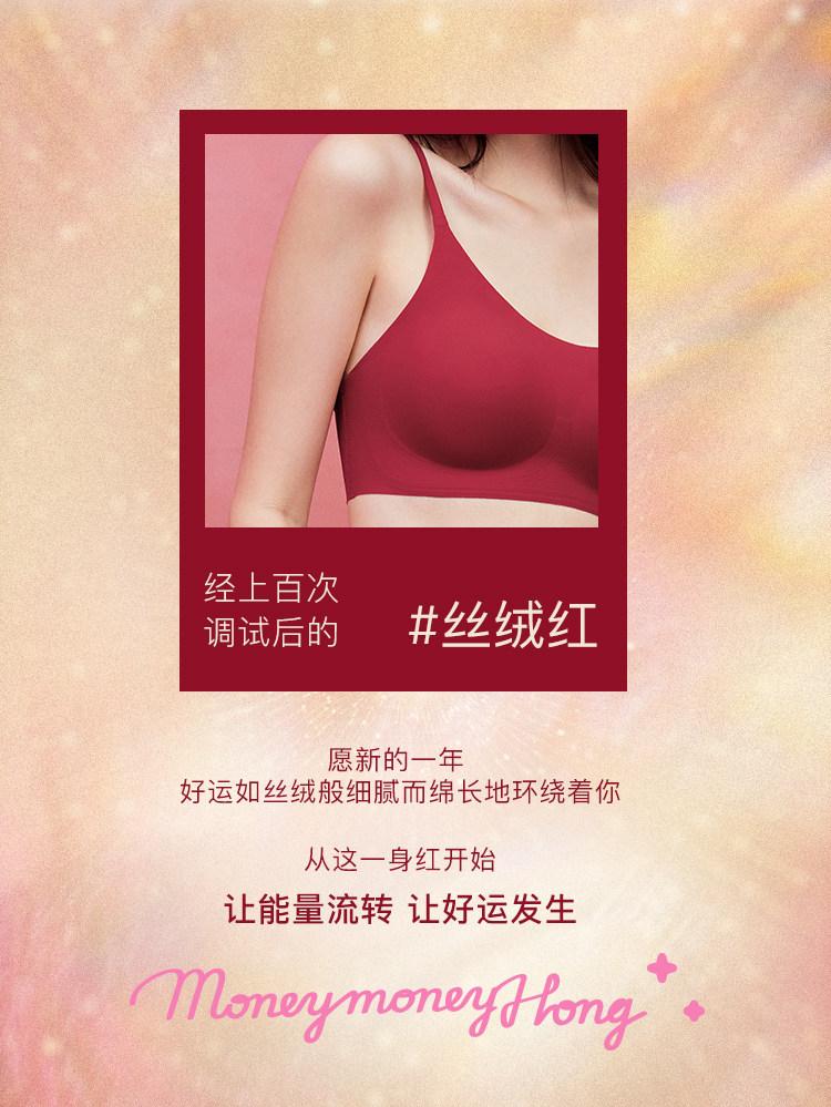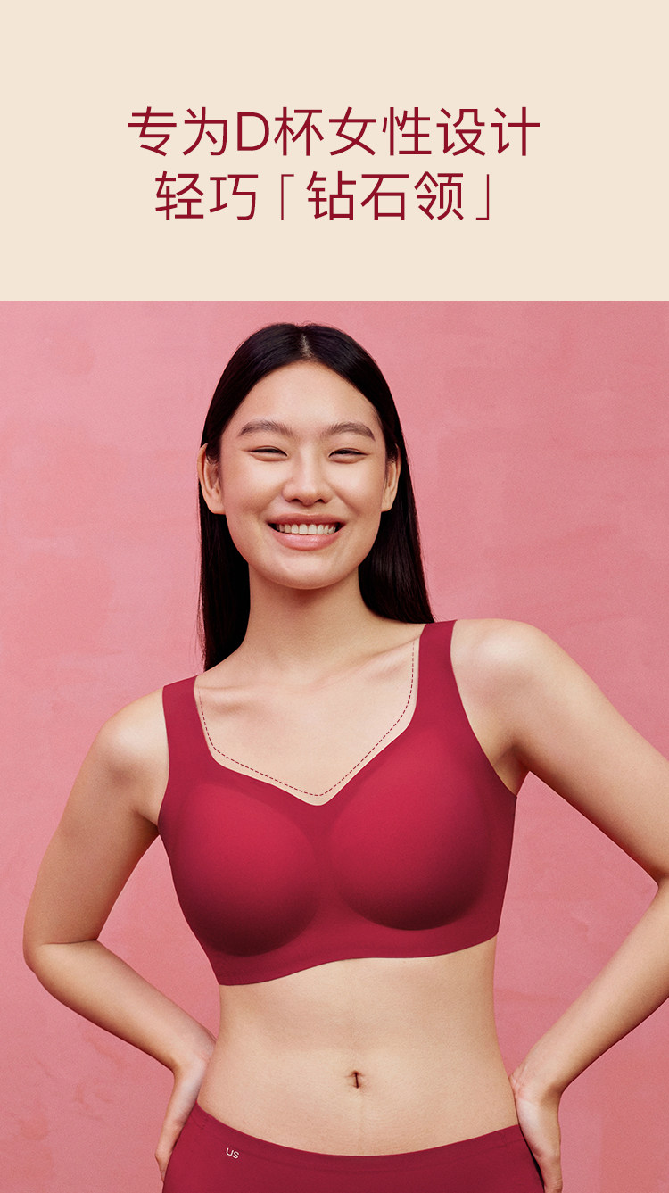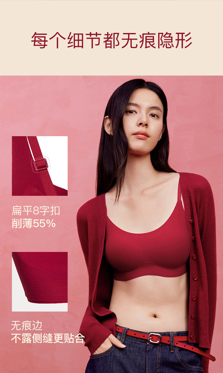虞書訢同款ubras無尺碼紅色內衣本命年套裝蕾絲前釦背心無痕文胸