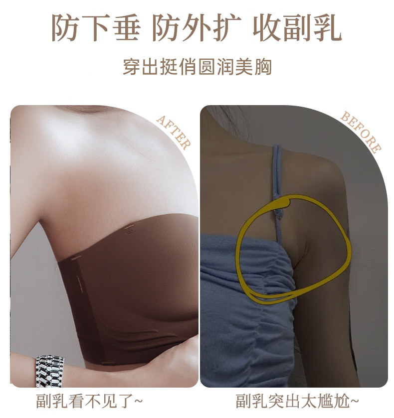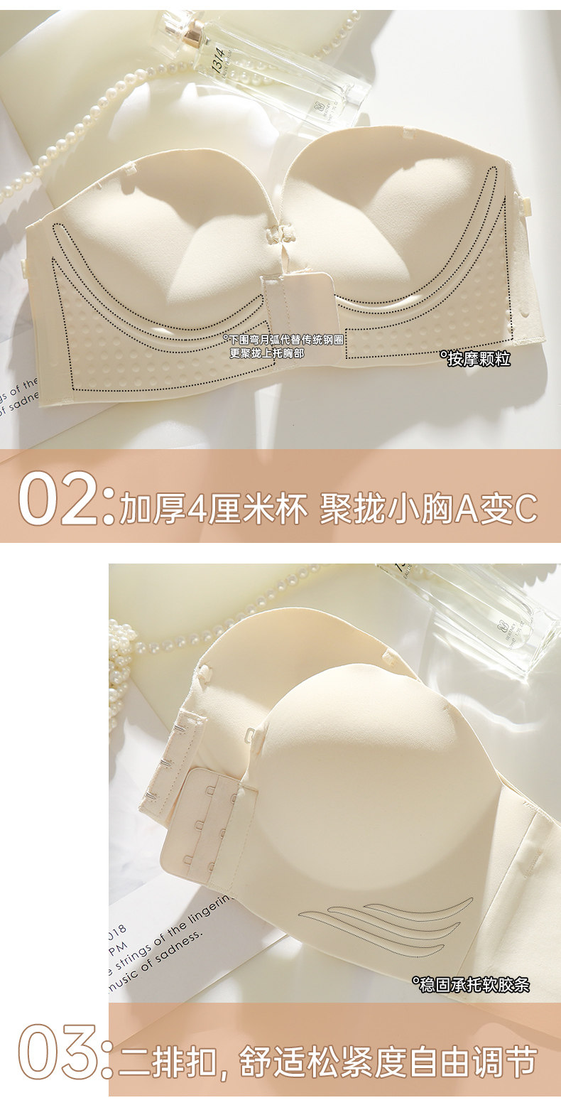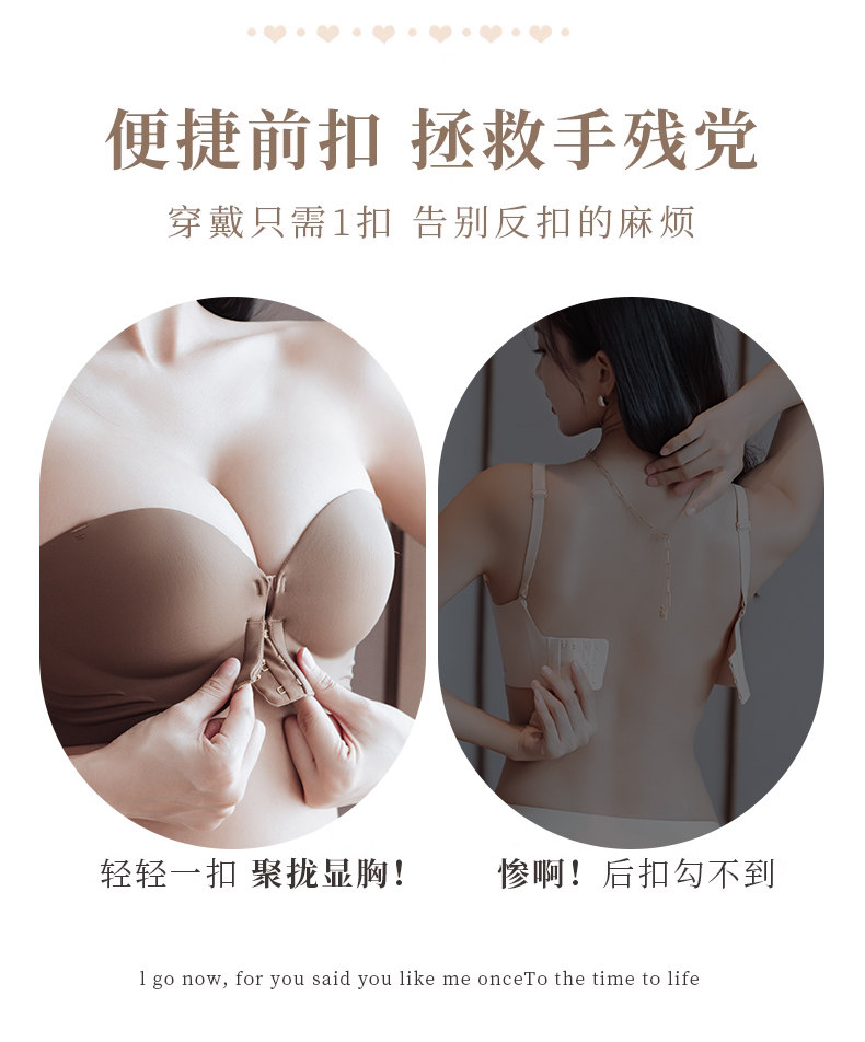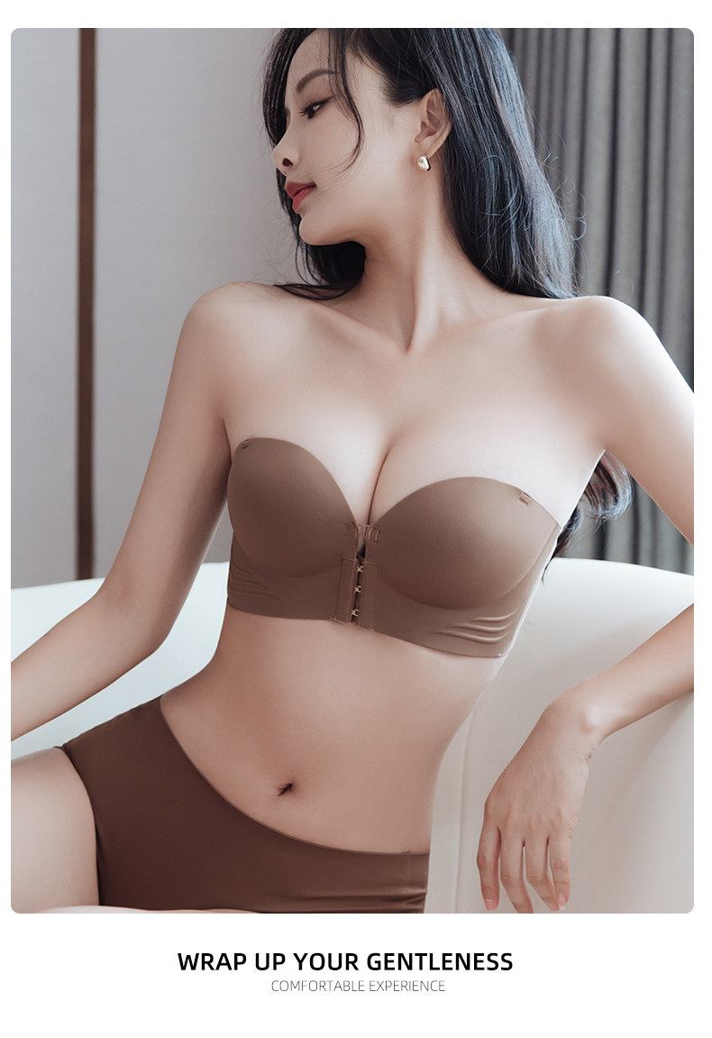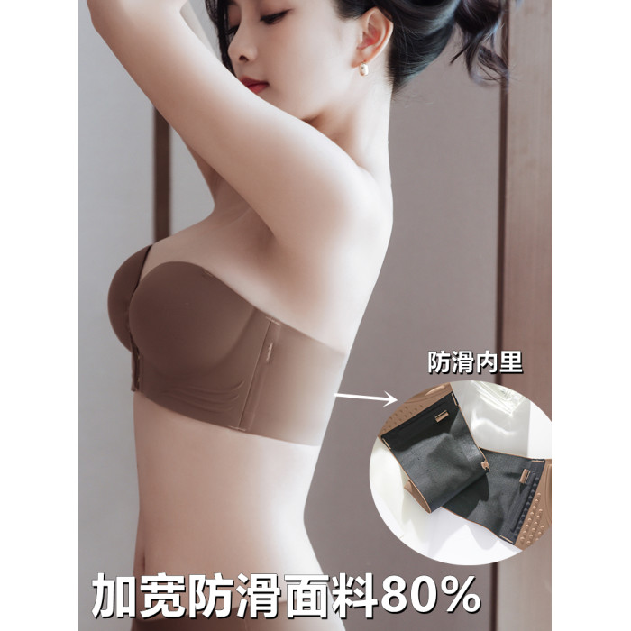維多利亞前釦無痕無肩帶內衣女隱形文胸防滑聚攏抹胸式無鋼圈美背