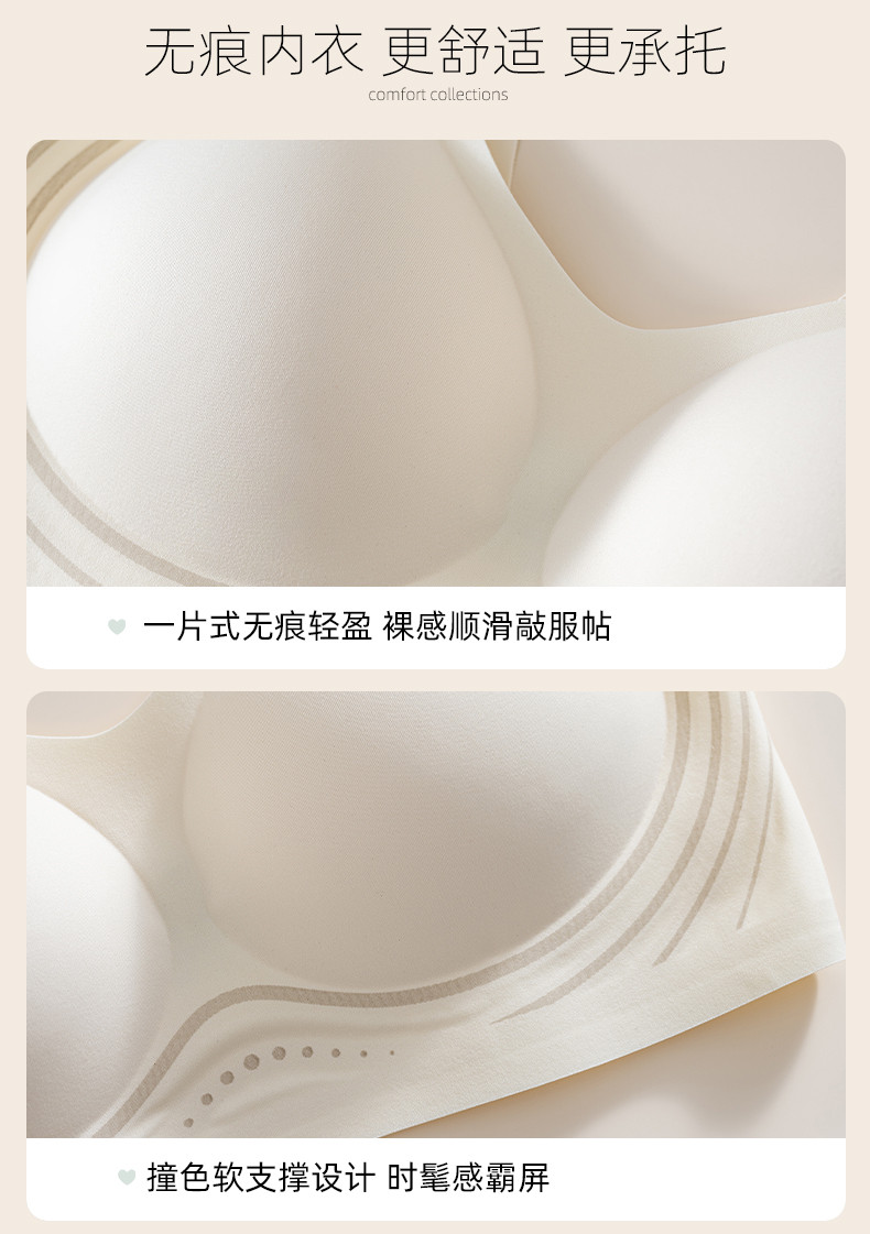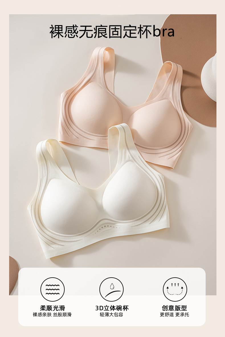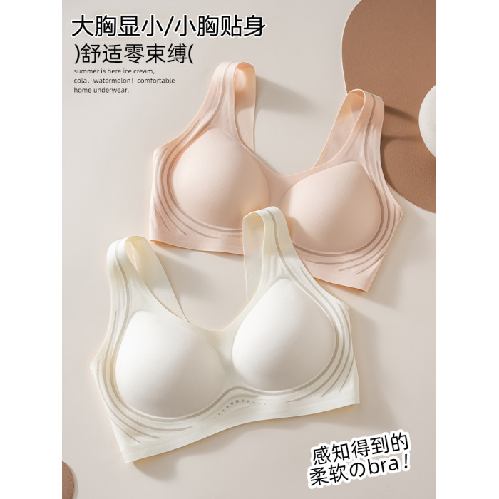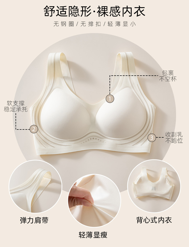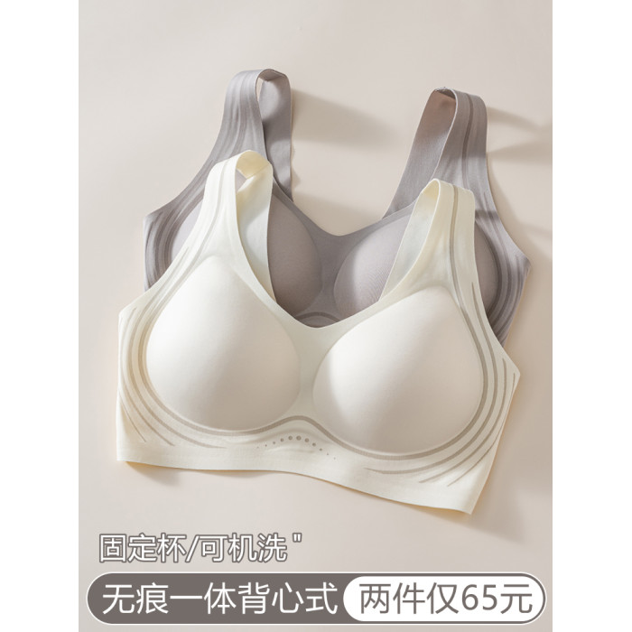 雲朵無痕內衣女大胸顯小舒適裸感一體固定杯運動美背背心式文胸罩