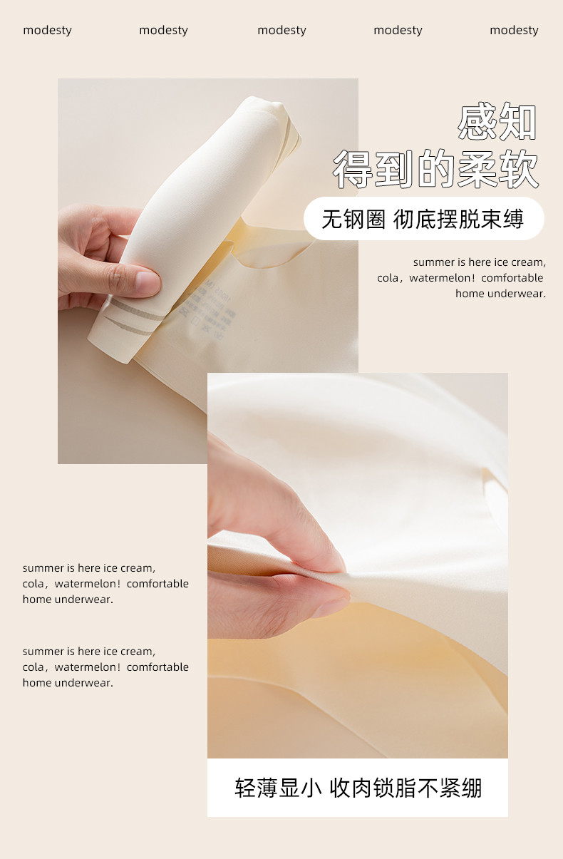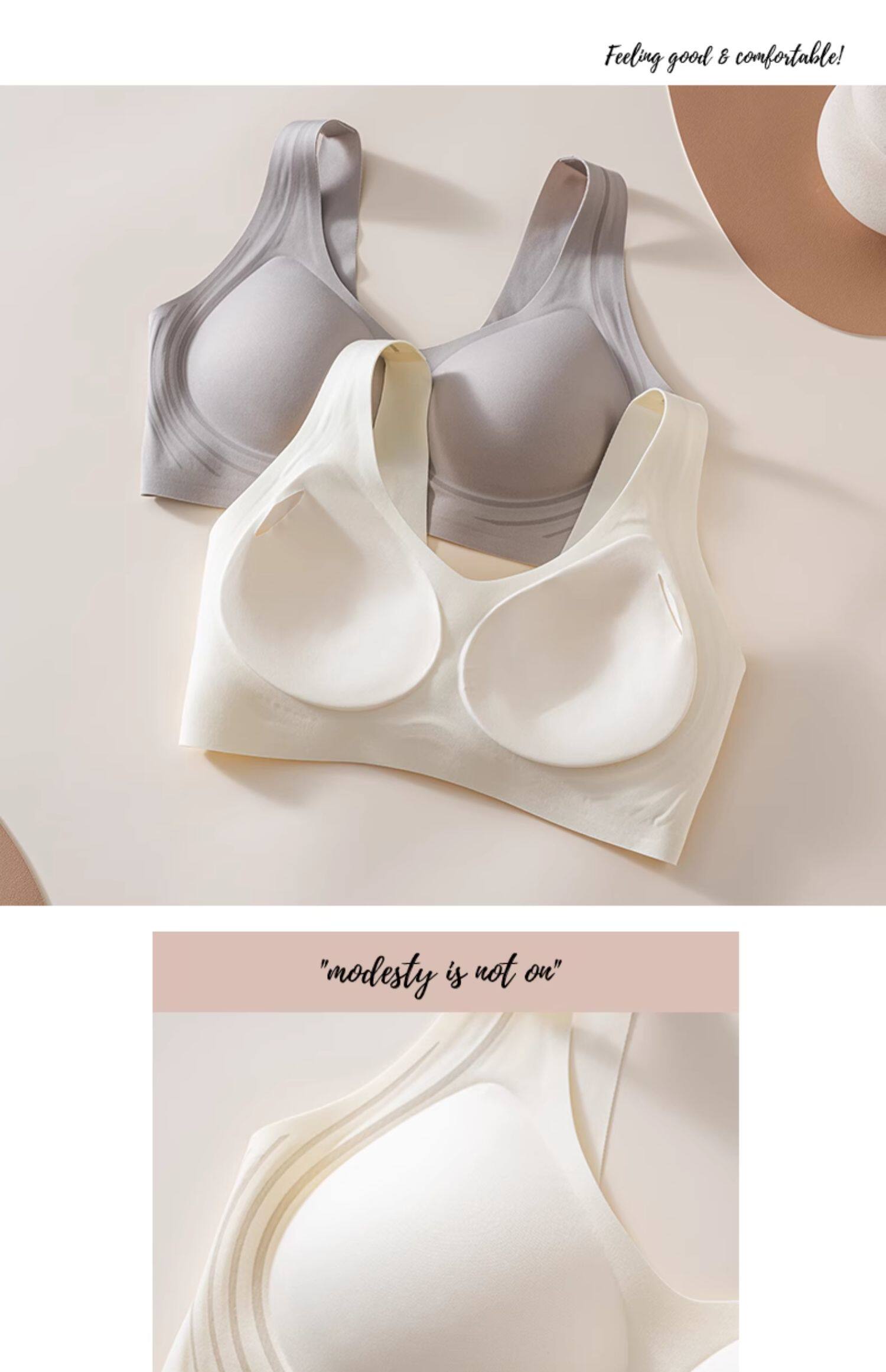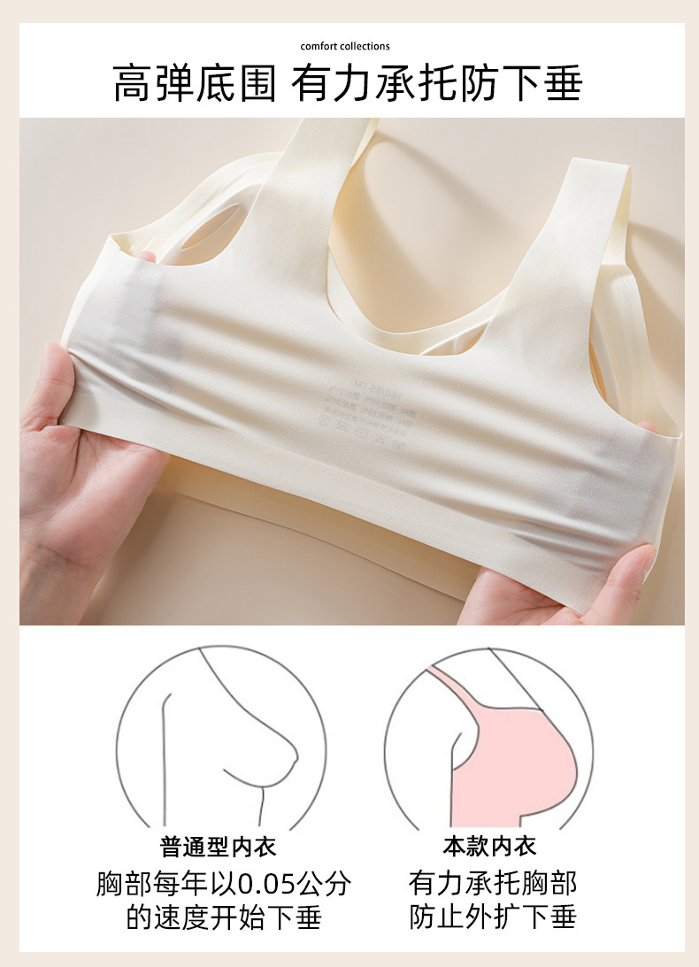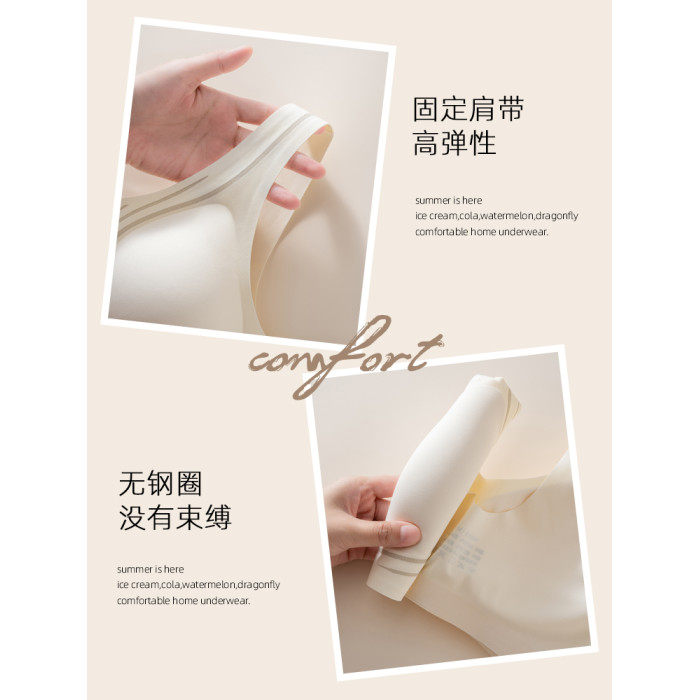 雲朵無痕內衣女大胸顯小舒適裸感一體固定杯運動美背背心式文胸罩