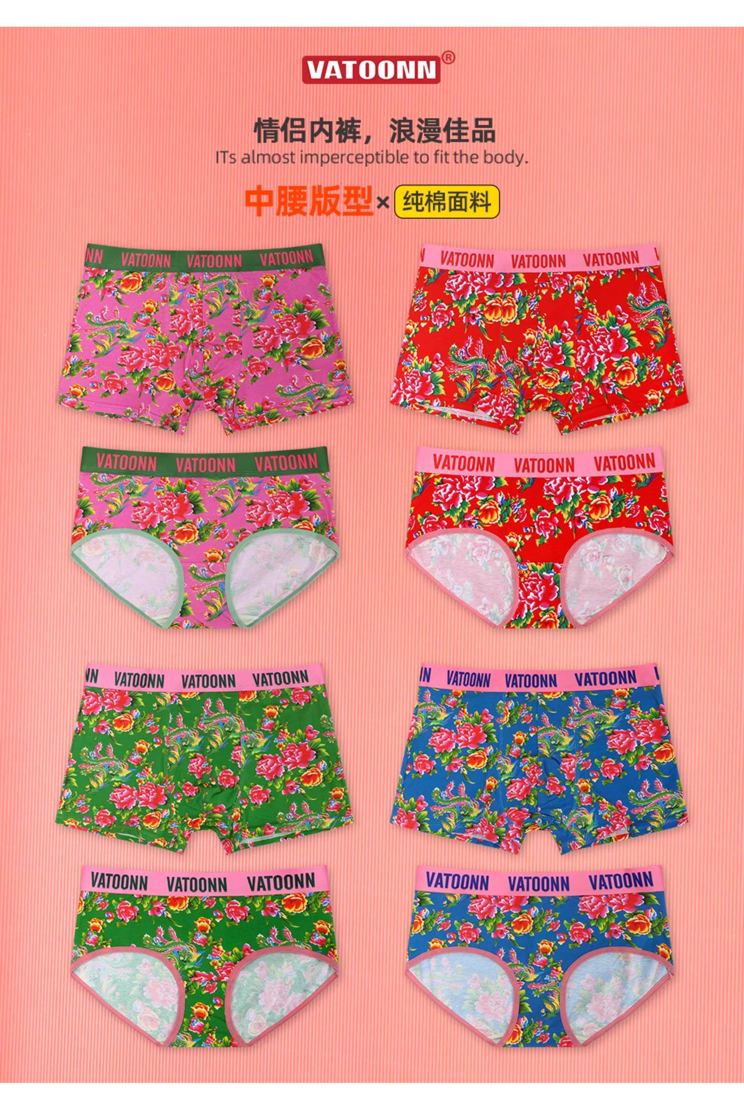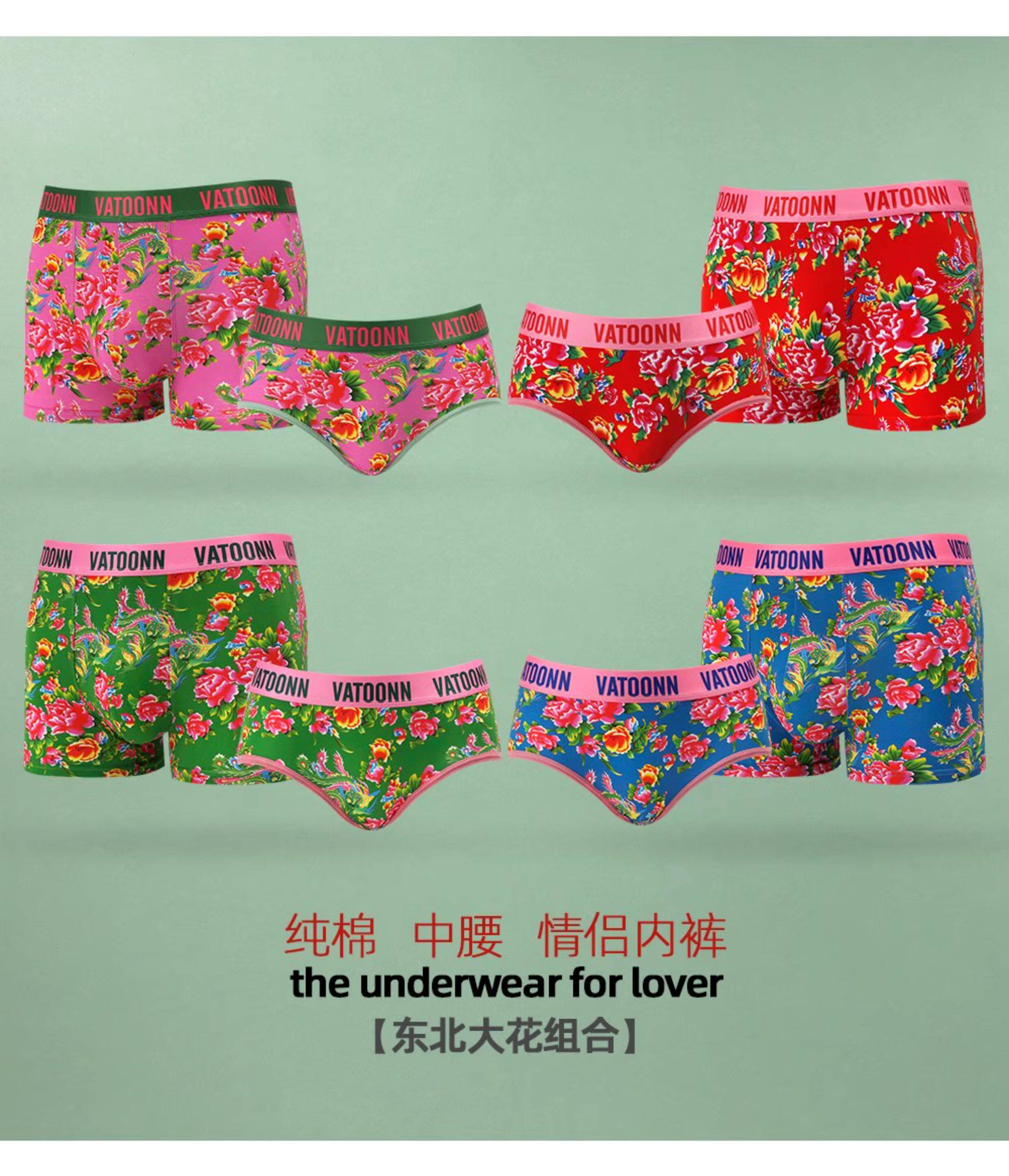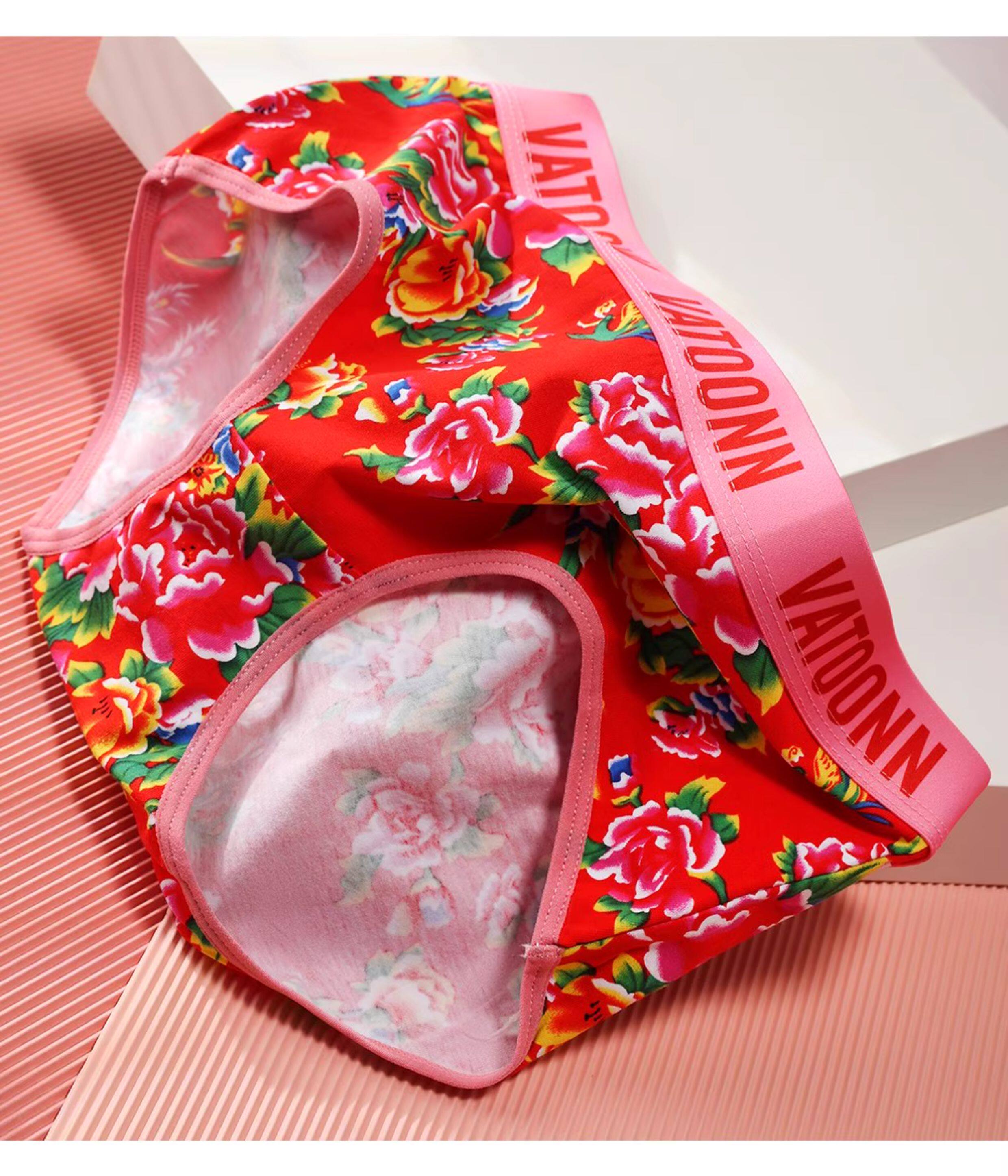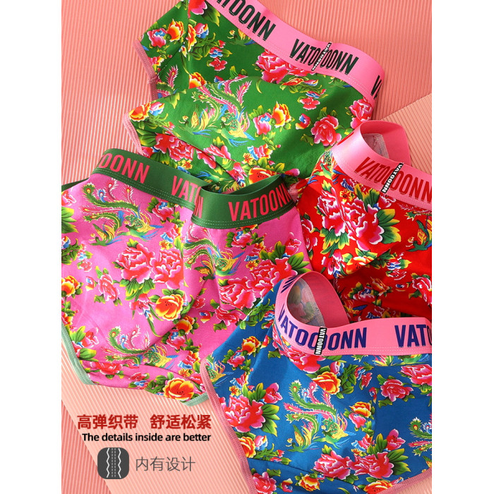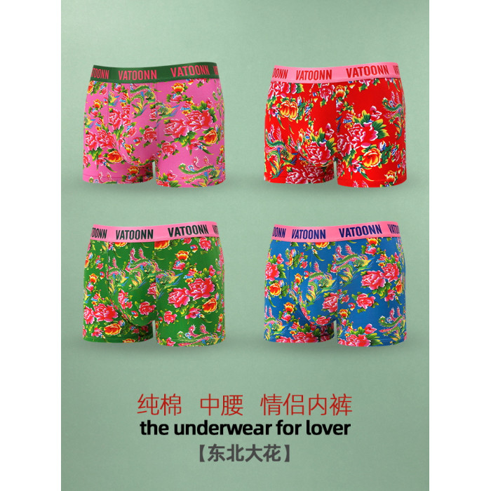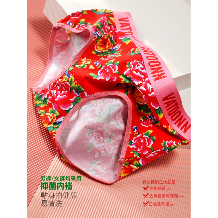 東北大花情侶內褲純棉男生平角女士三角中腰透氣本命年紅色潮印花
