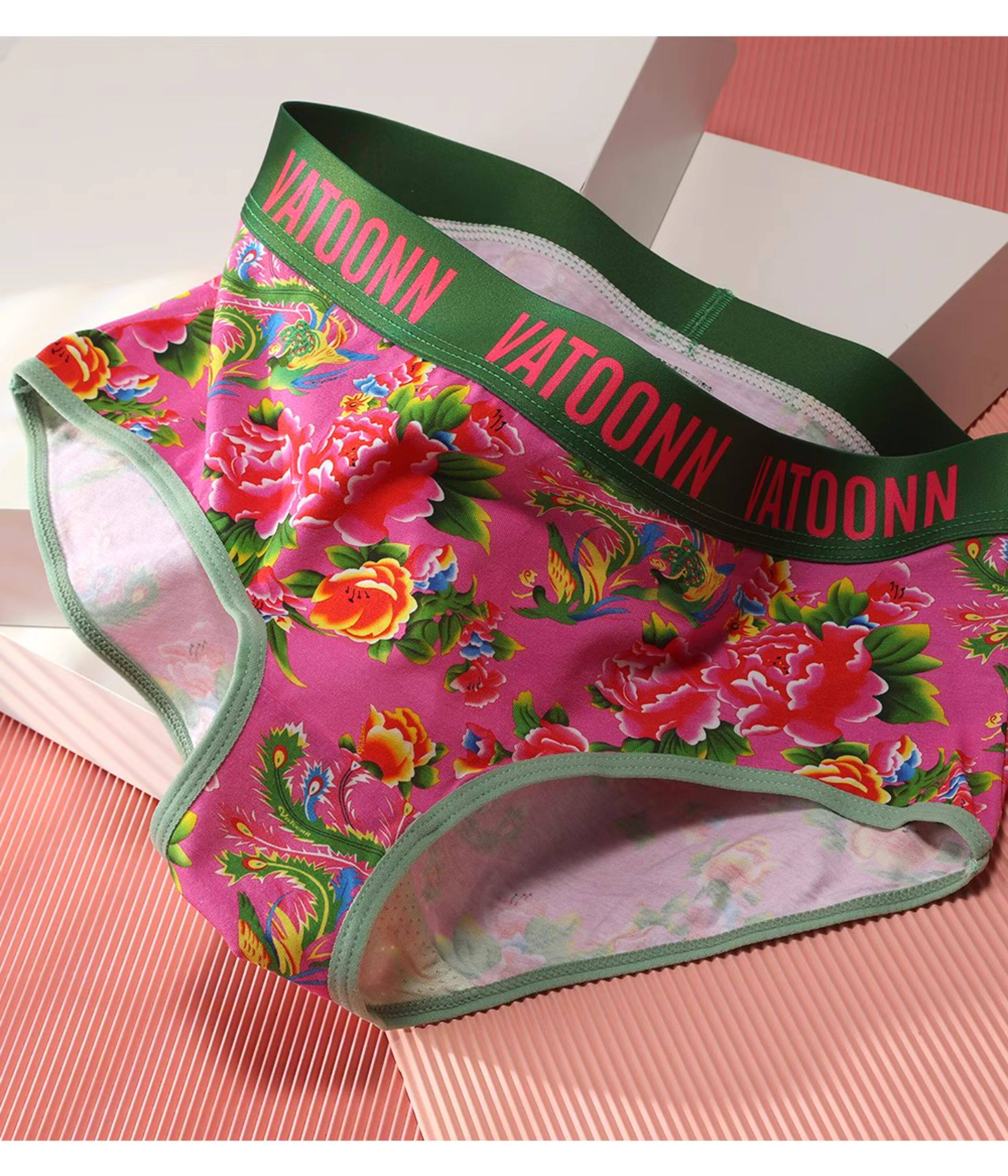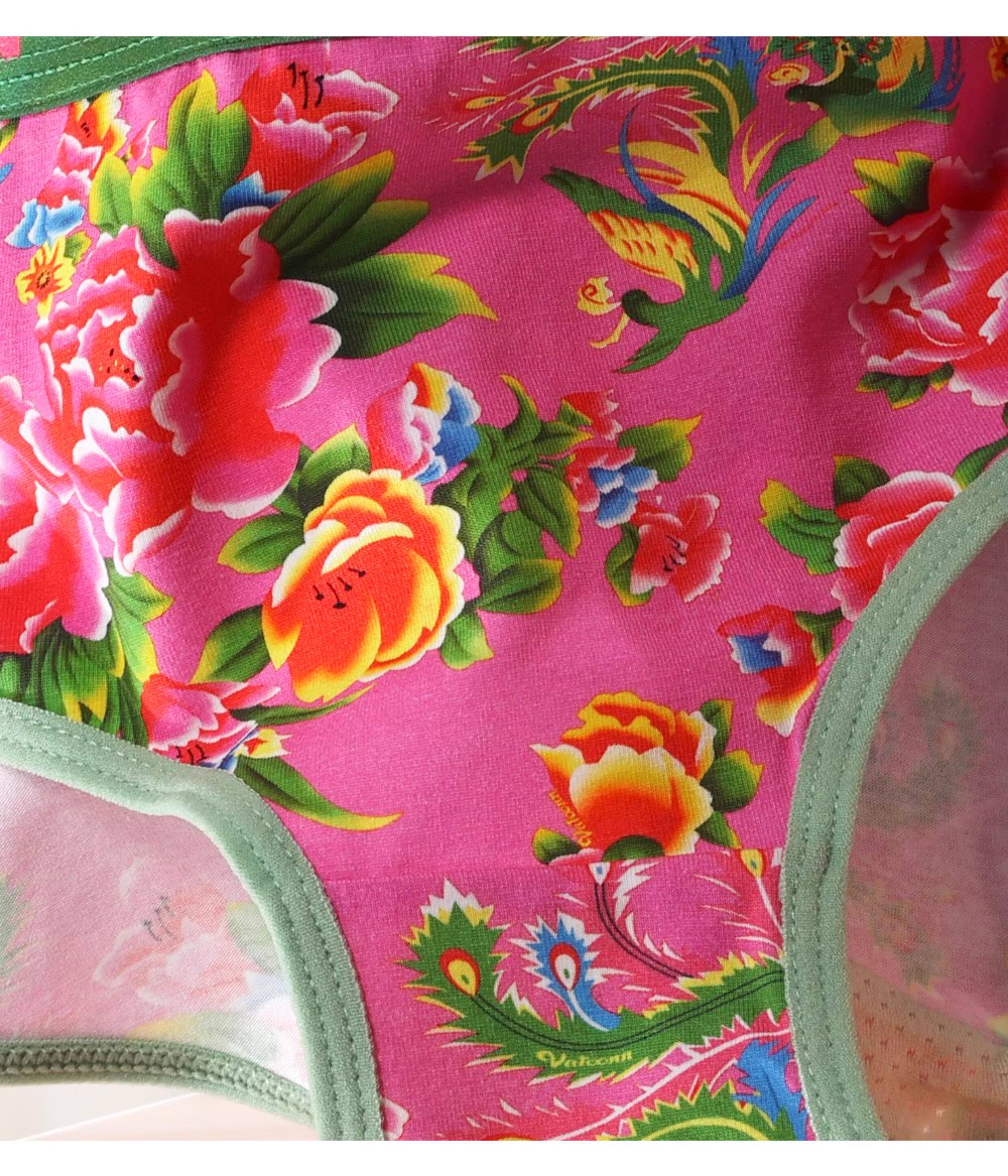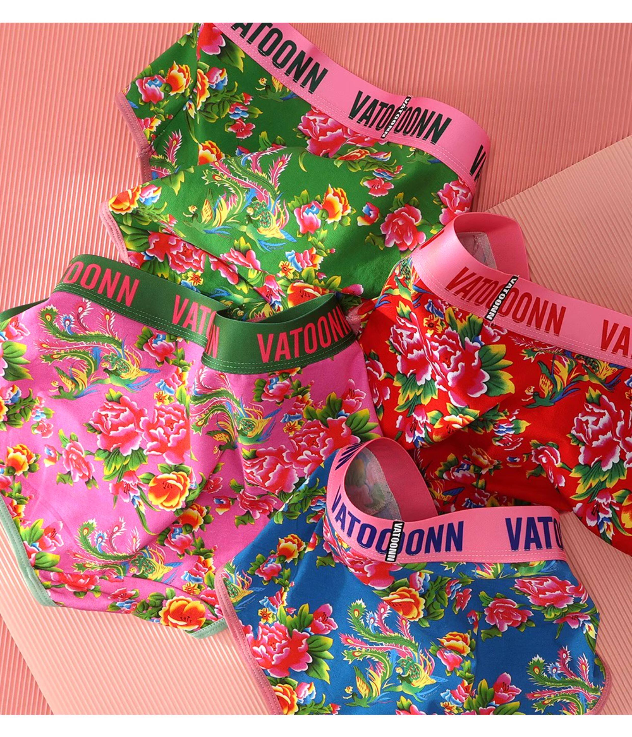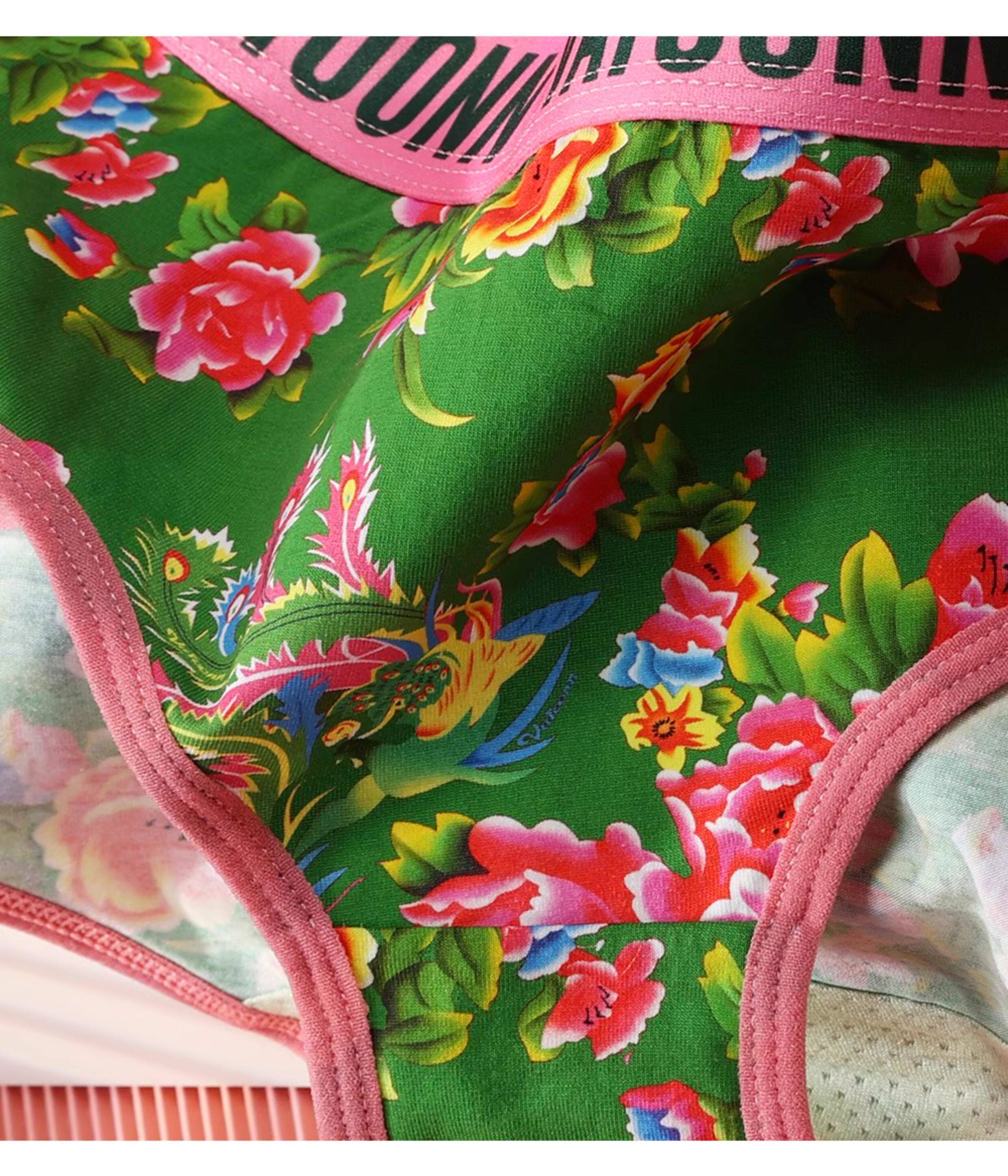 東北大花情侶內褲純棉男生平角女士三角中腰透氣本命年紅色潮印花
