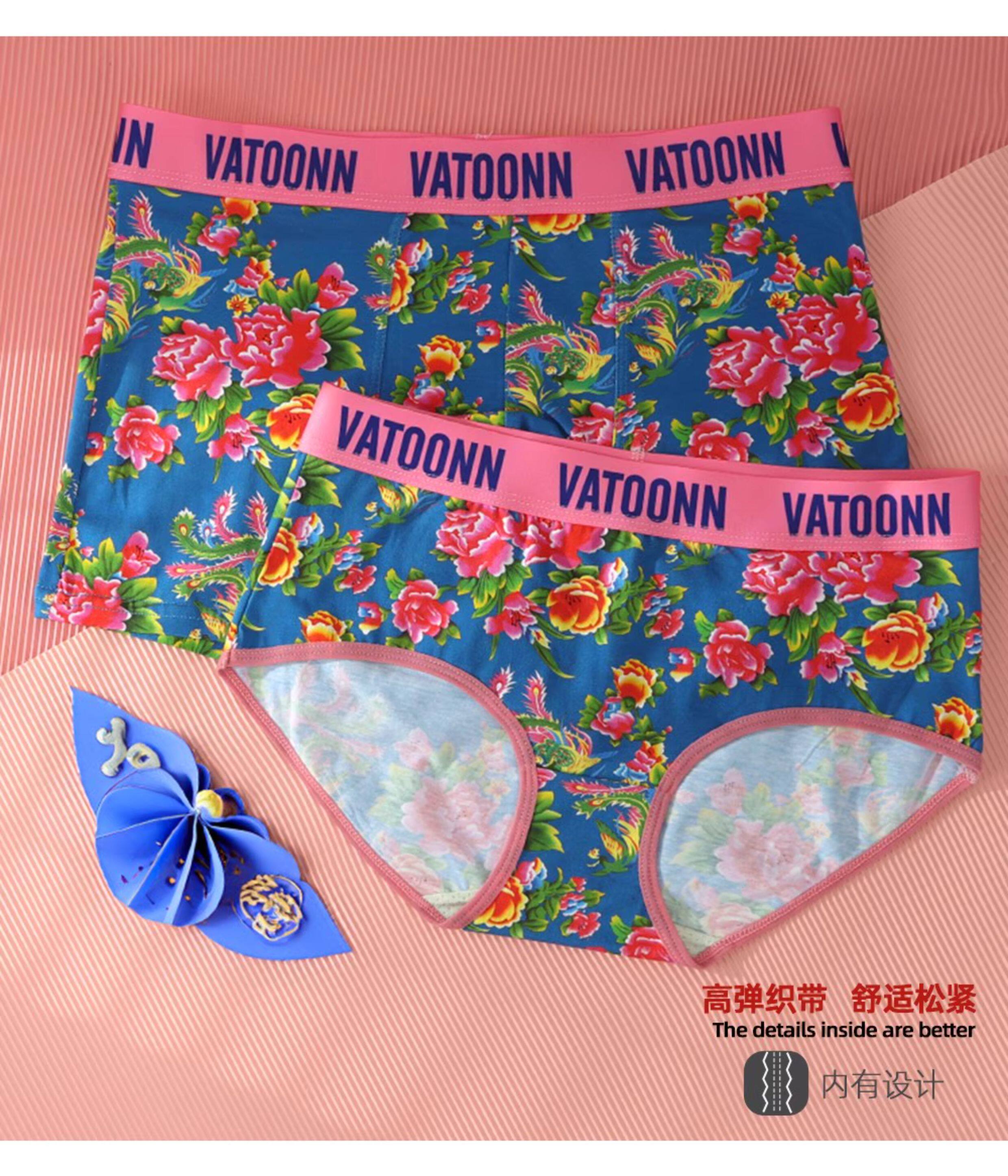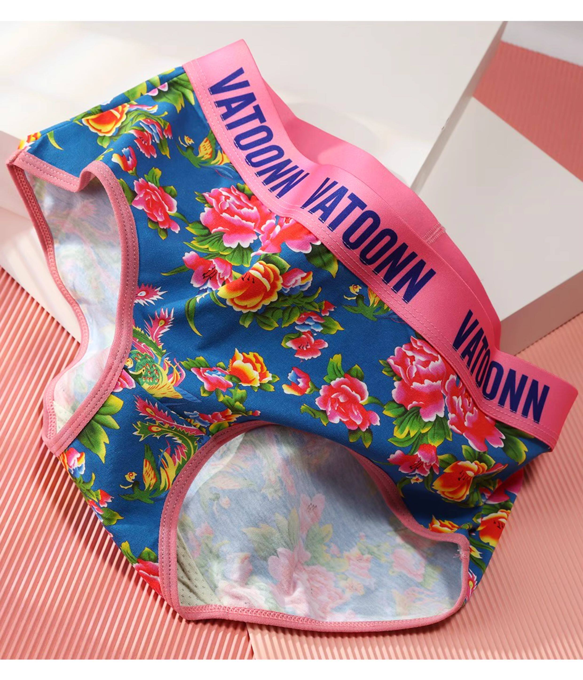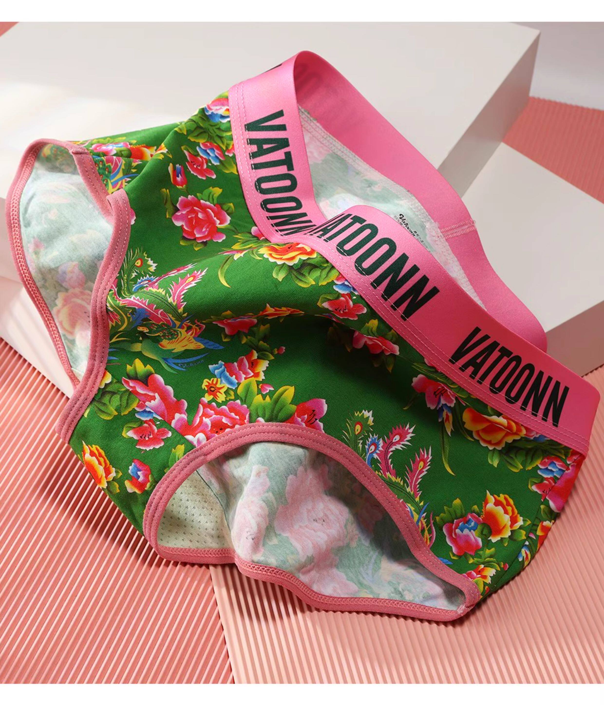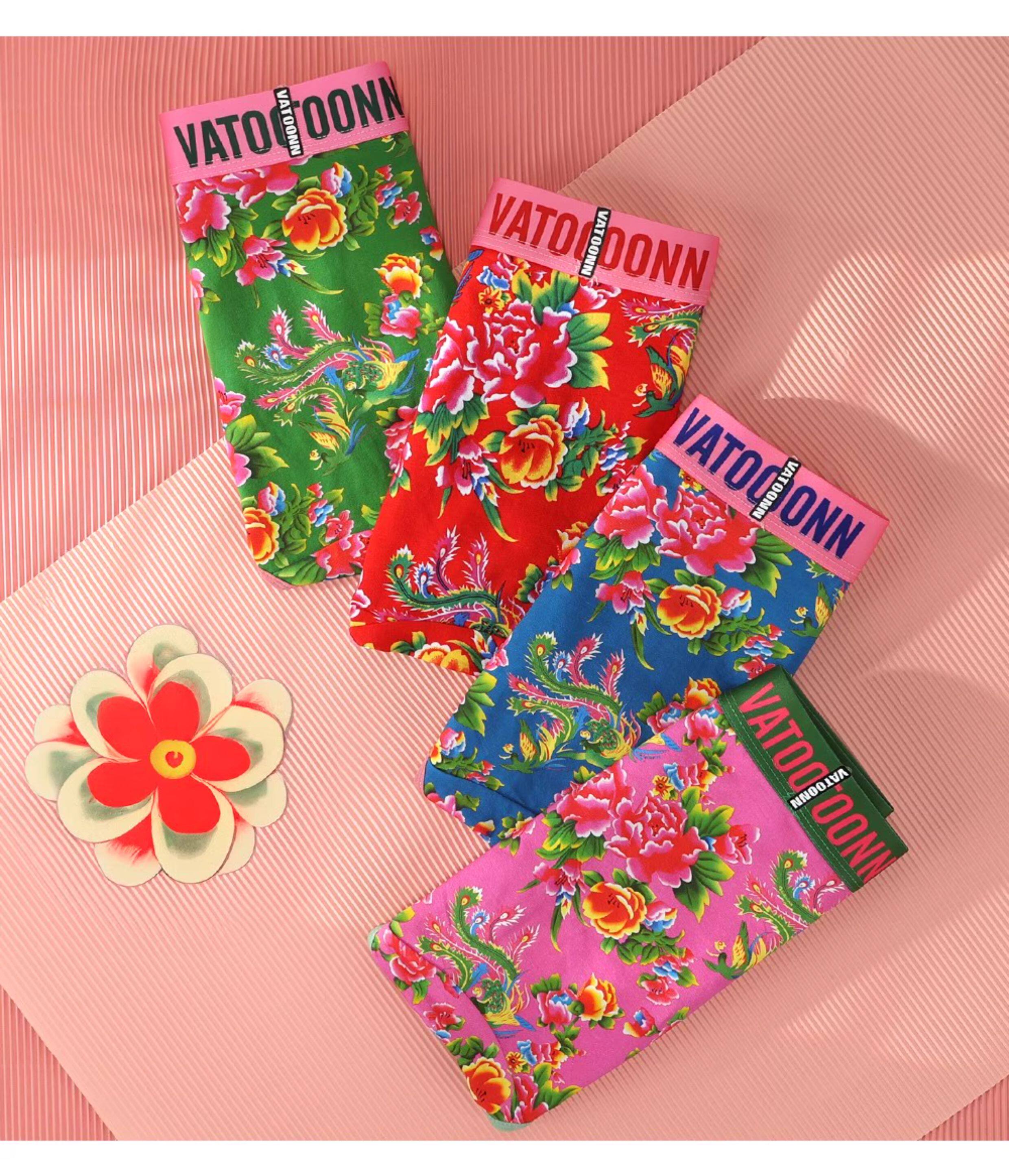 東北大花情侶內褲純棉男生平角女士三角中腰透氣本命年紅色潮印花