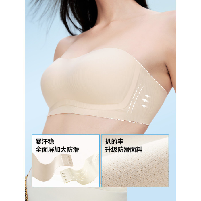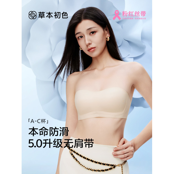 草本初色無肩帶內衣女防滑小胸聚攏抹胸美背隱形無痕收副乳裹胸罩