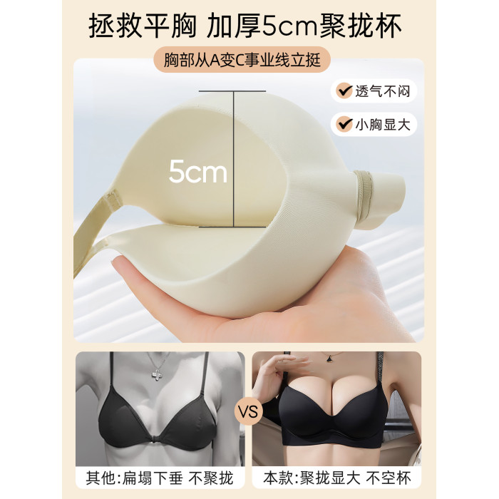 加厚5cm小胸顯大強聚攏內衣女無痕無鋼圈上托防下垂收副乳文胸罩