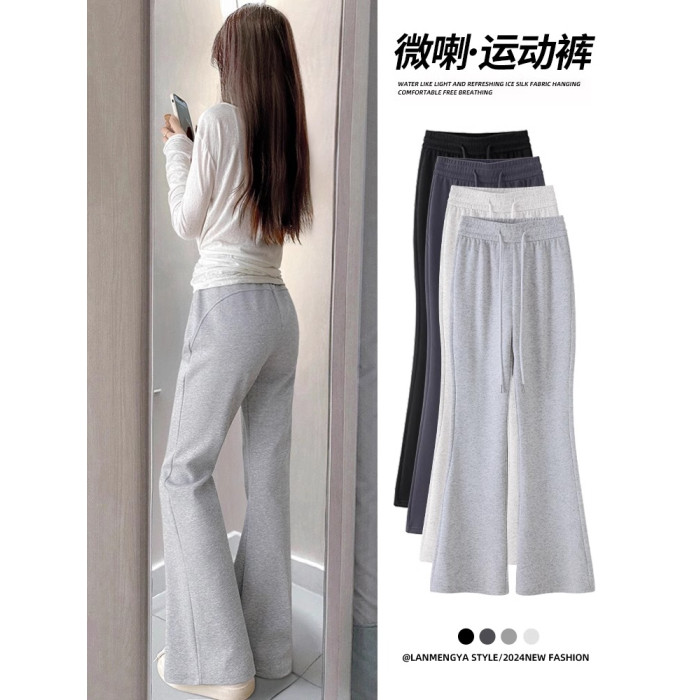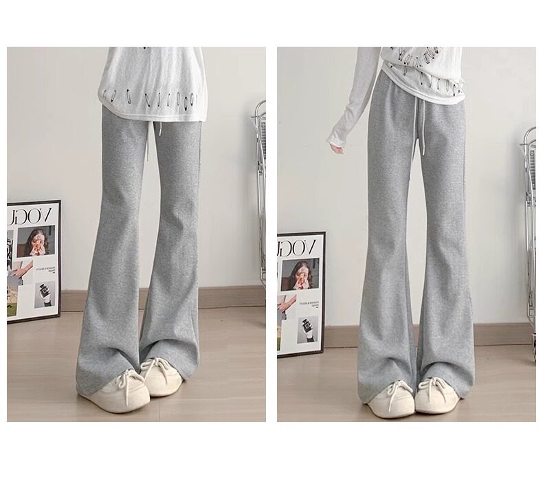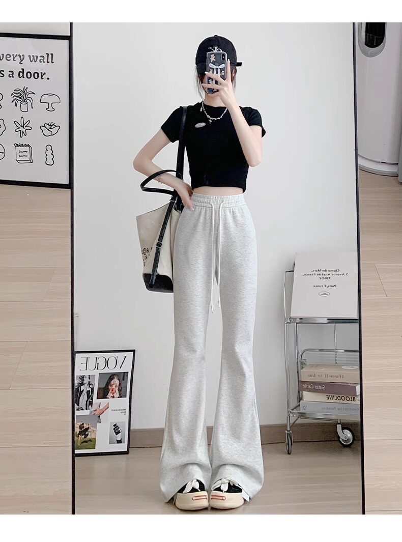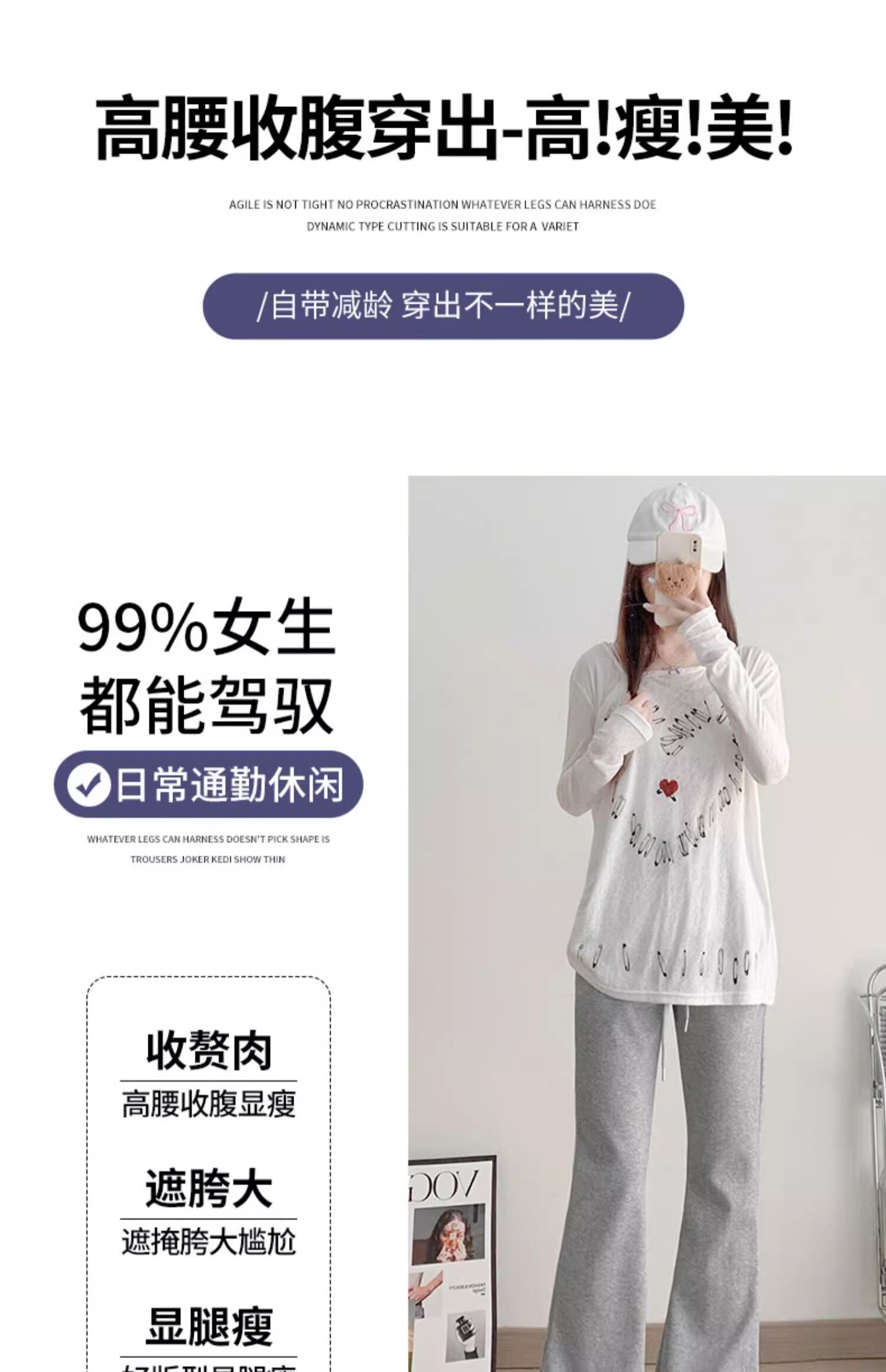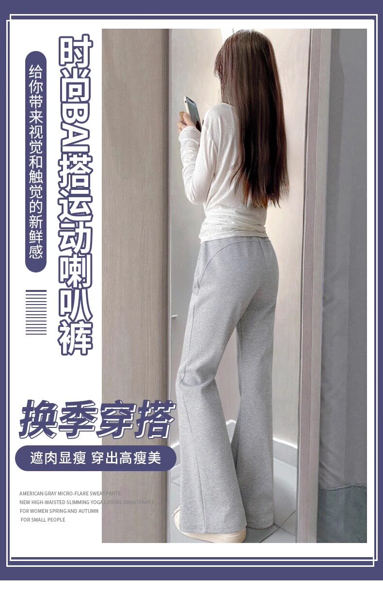 145小個子灰色微喇叭褲女春秋夏季150高腰顯瘦運動馬蹄褲休閒衛褲