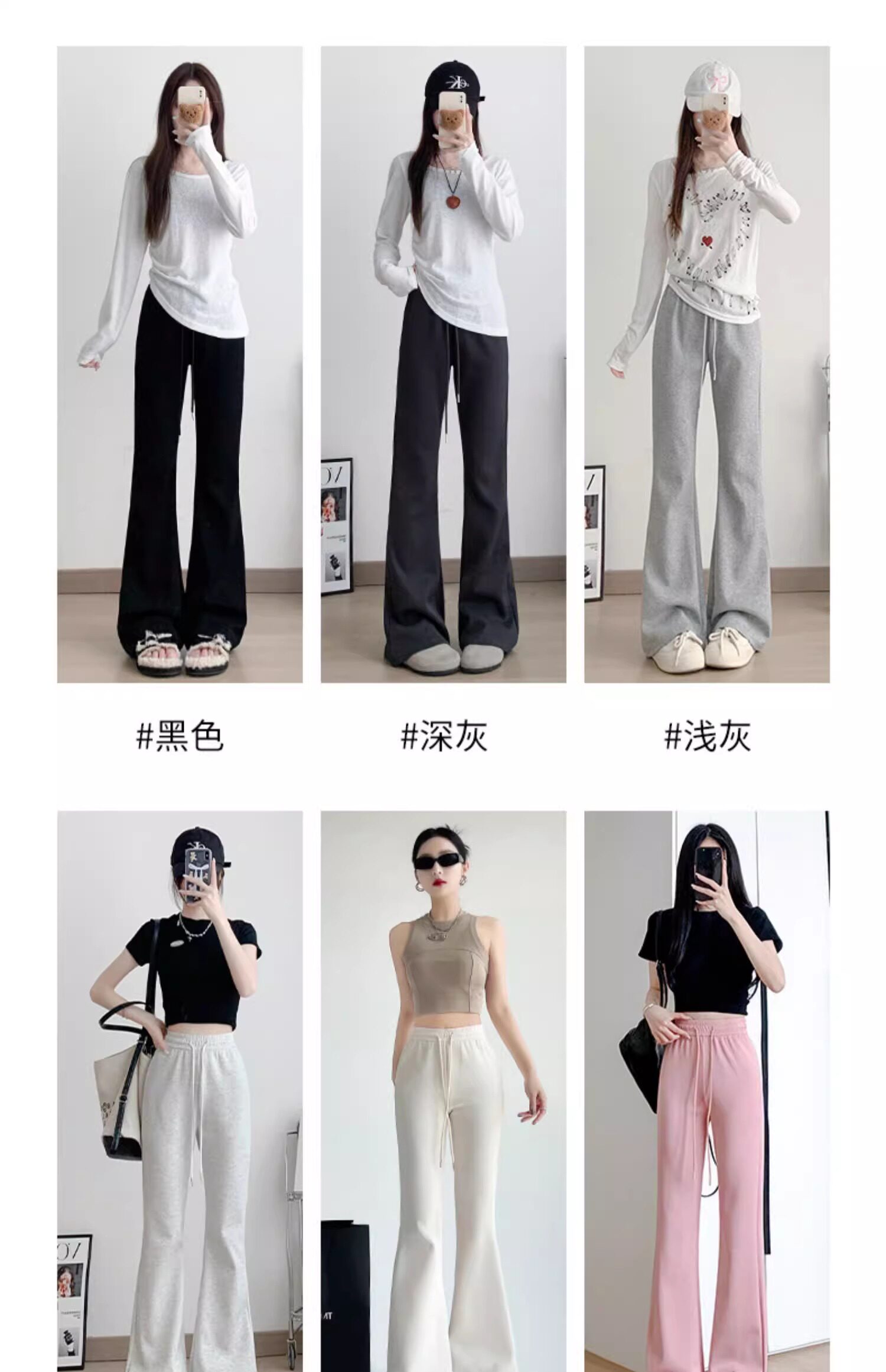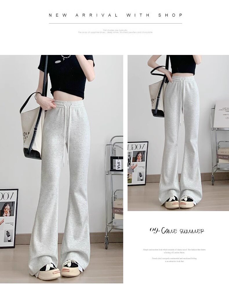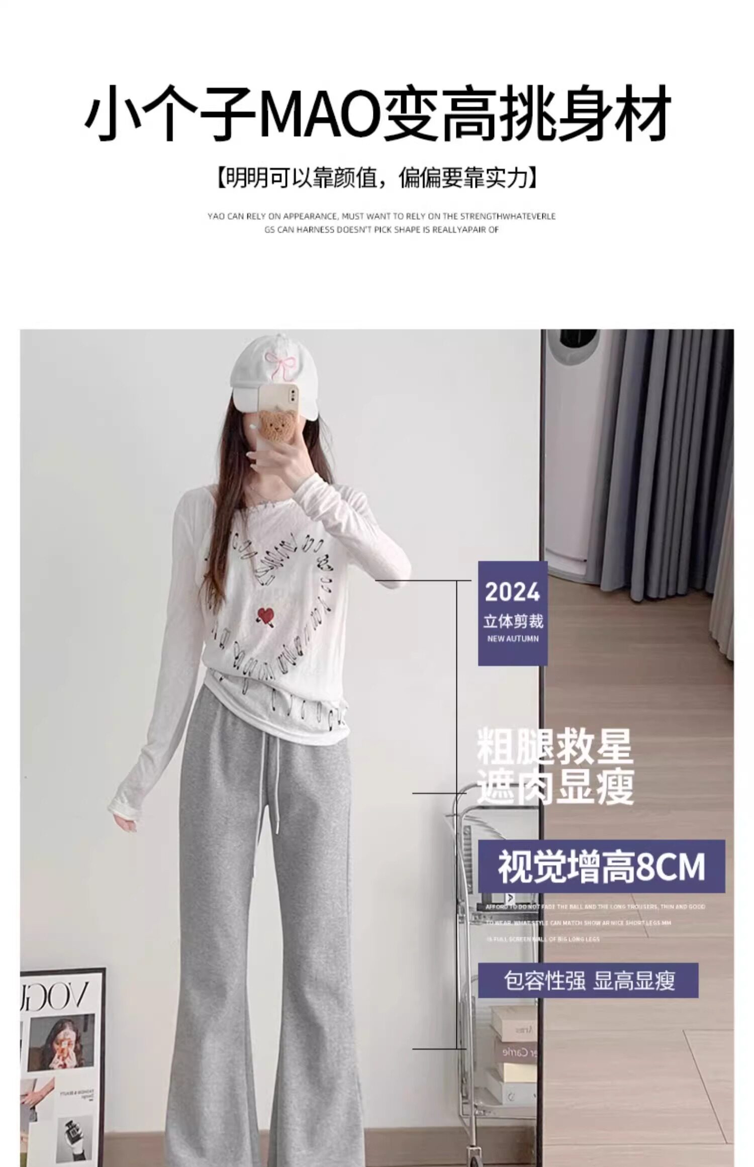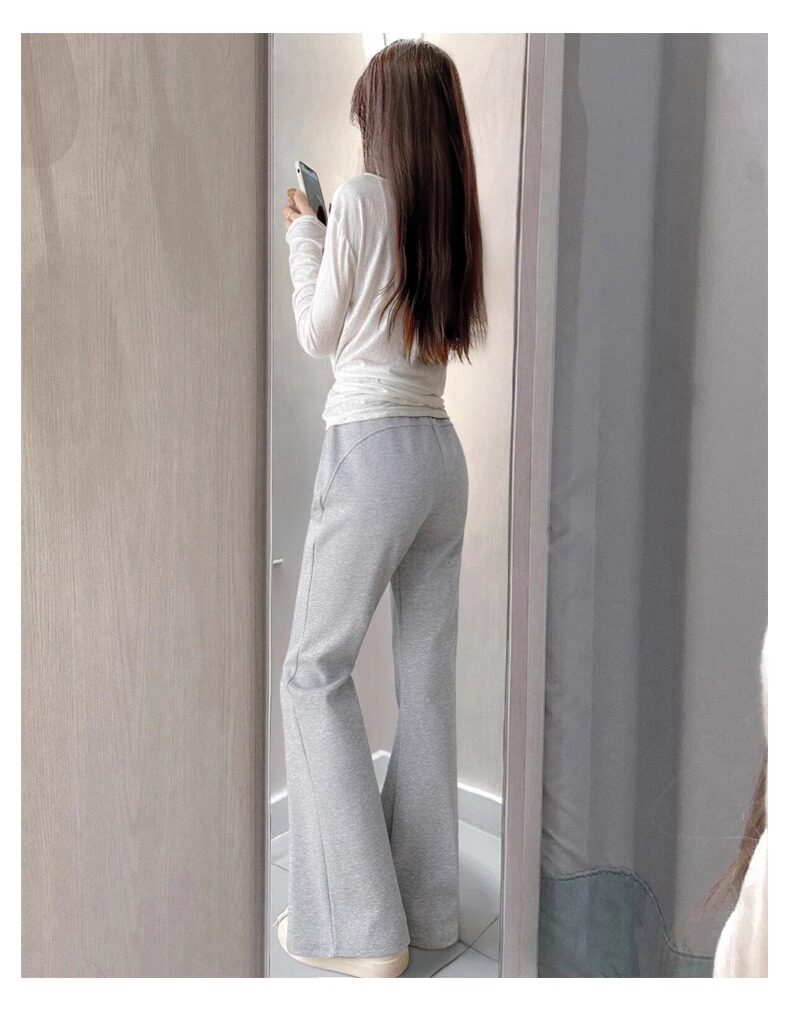 145小個子灰色微喇叭褲女春秋夏季150高腰顯瘦運動馬蹄褲休閒衛褲