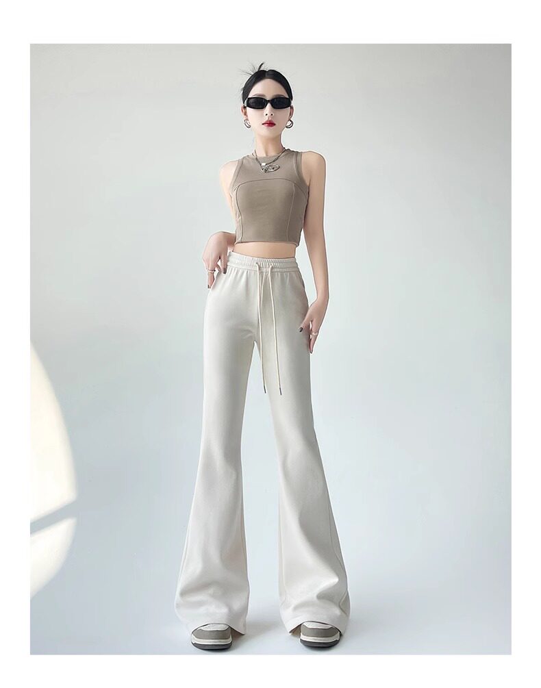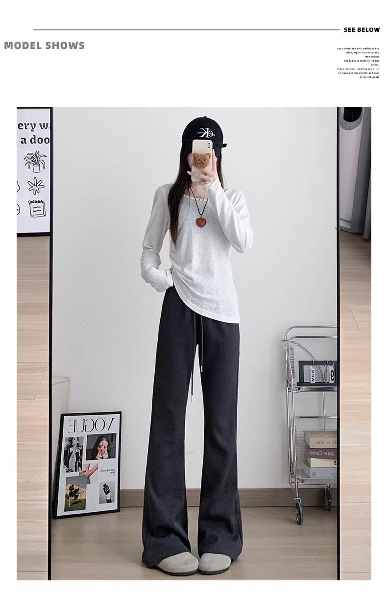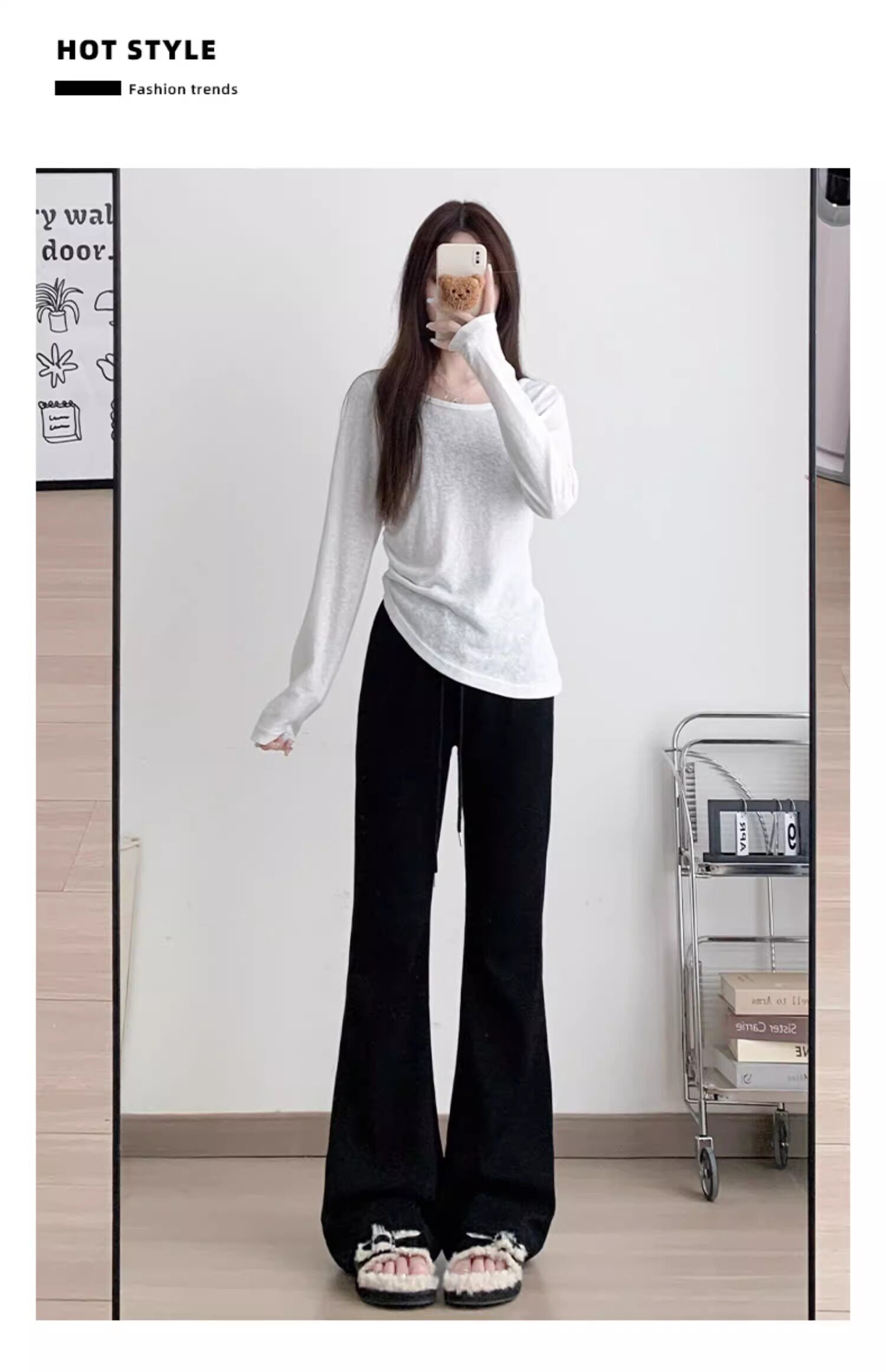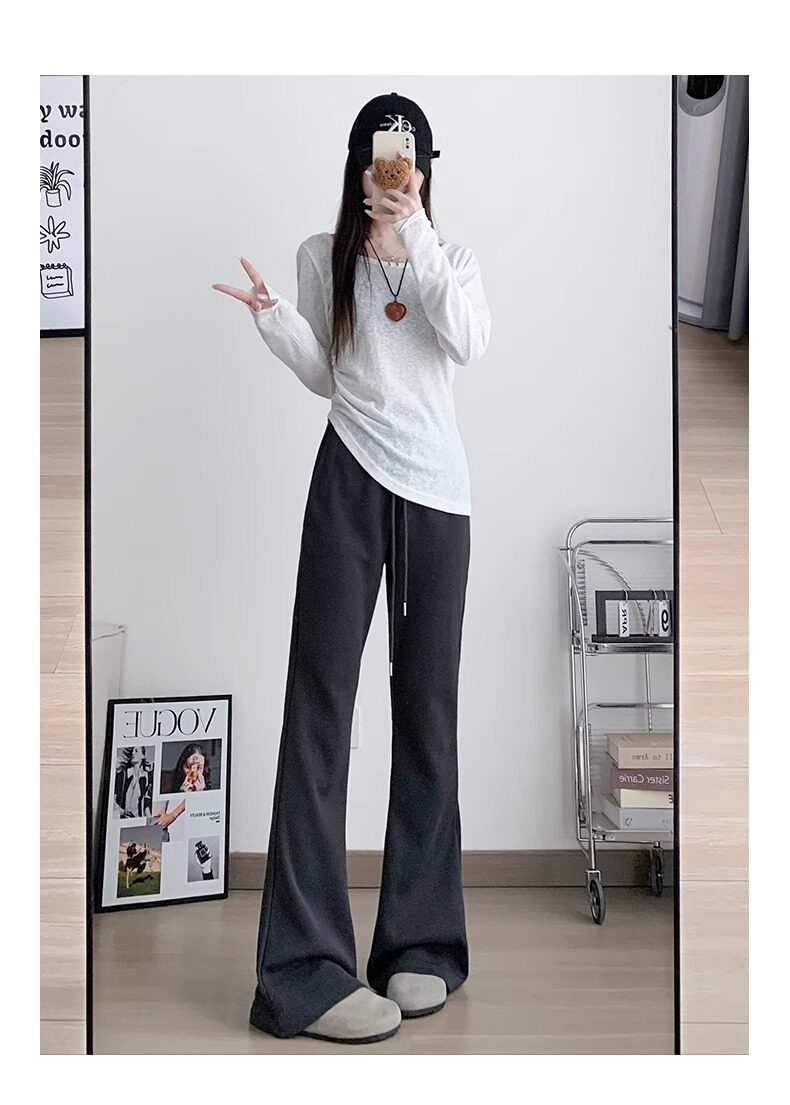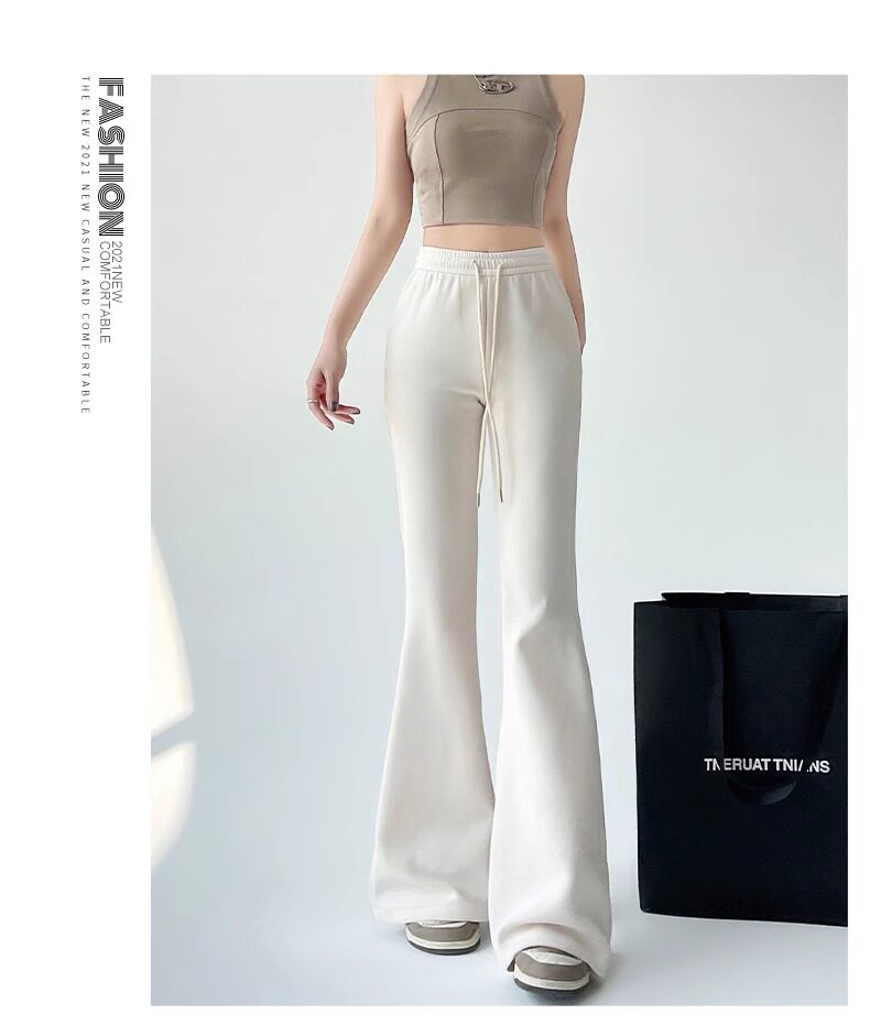 145小個子灰色微喇叭褲女春秋夏季150高腰顯瘦運動馬蹄褲休閒衛褲