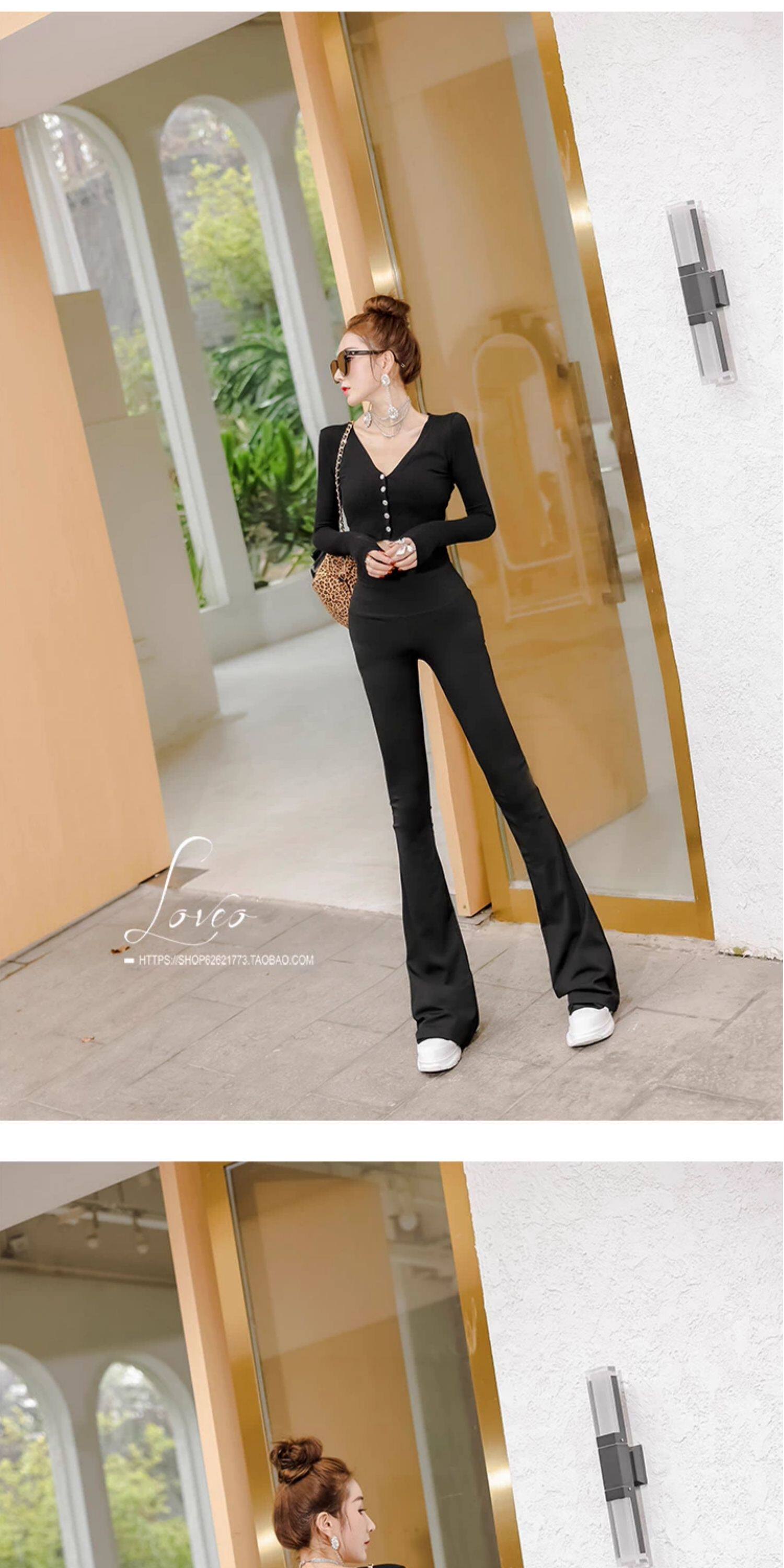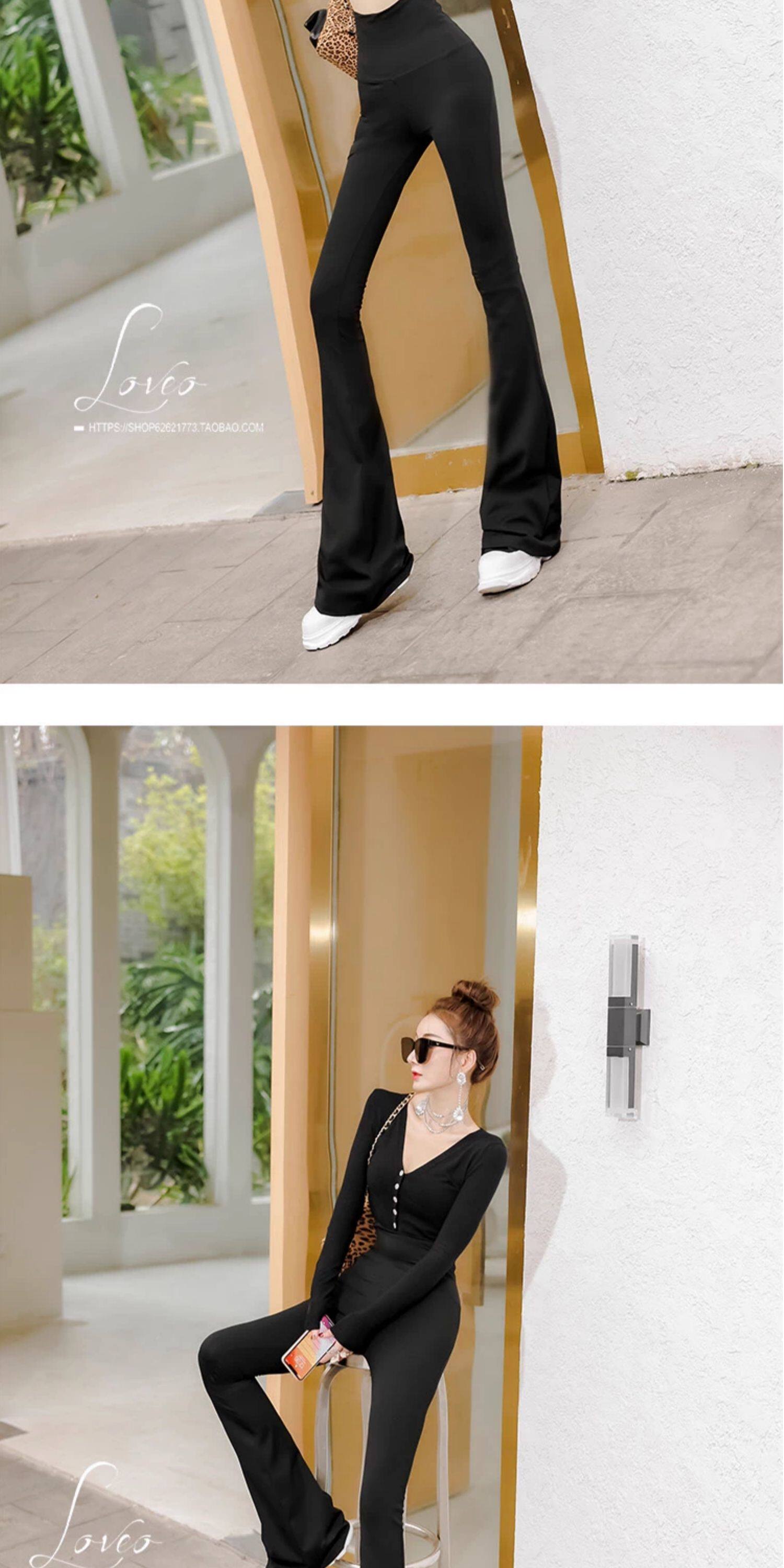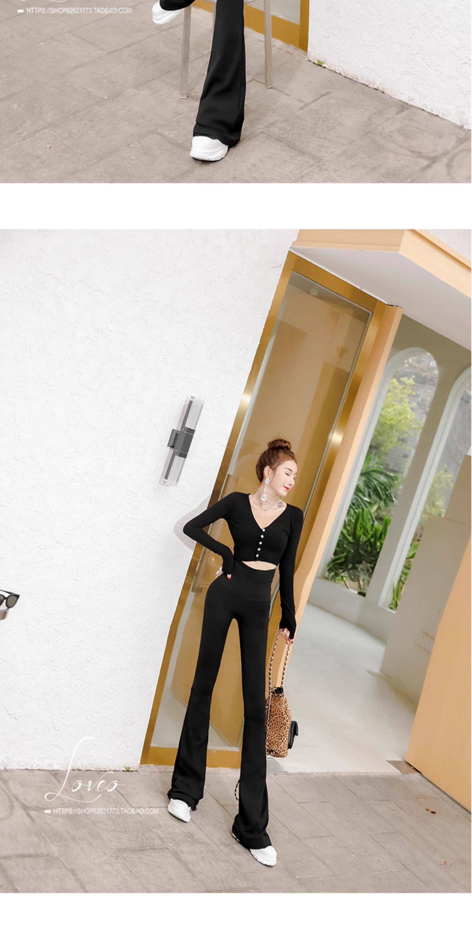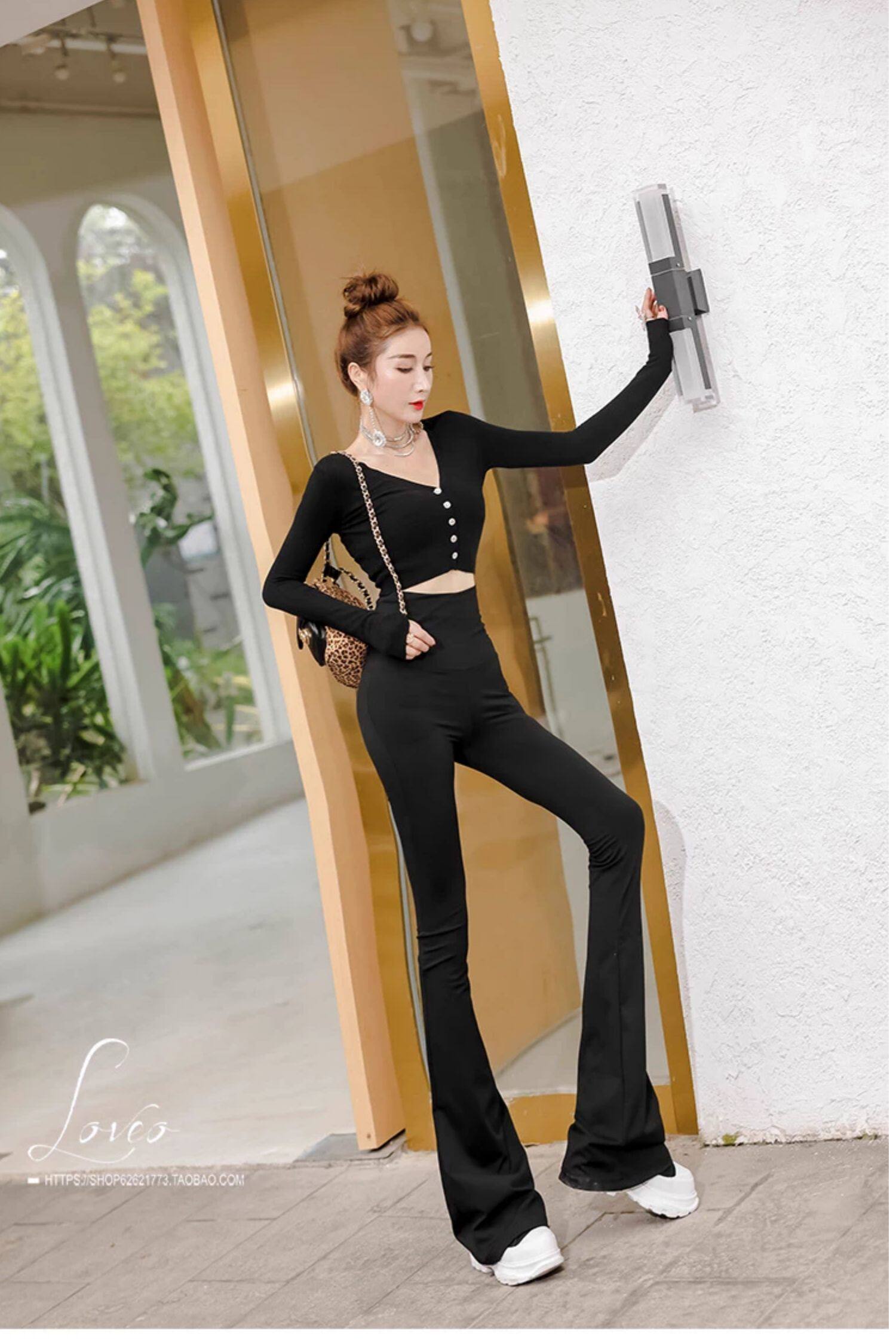 超長喇叭瑜珈褲女高個子馬蹄褲鯊魚黑色超高腰加長版拖地微喇褲子