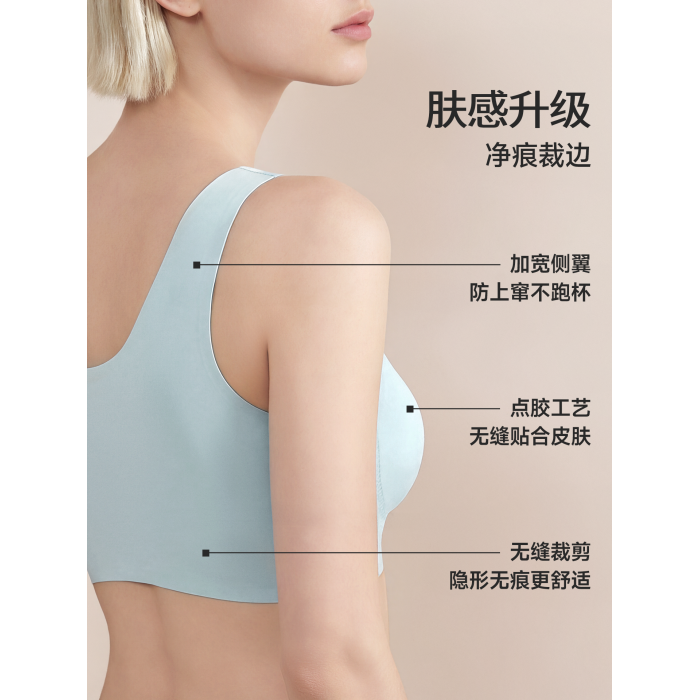 舒氧無痕內衣女無鋼圈運動大胸顯小文胸防下垂背心式一體薄款胸罩