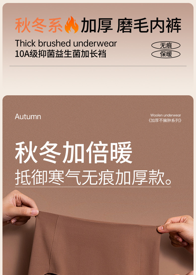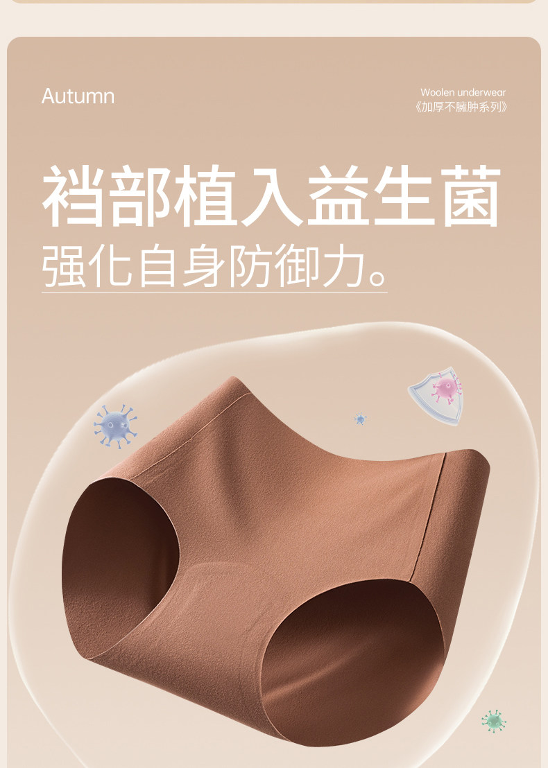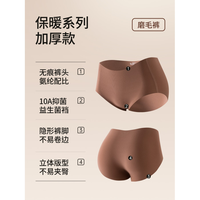 都市麗人磨毛無痕內褲女士10A級抑菌純棉益生菌襠秋冬保暖不夾臀