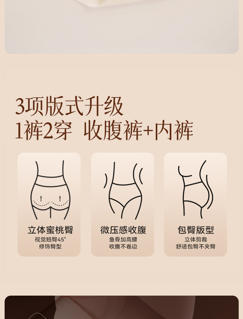 婷美收腹褲女收腹提臀不夾臀不卷邊禮服婚紗專用高腰輕塑提臀內褲