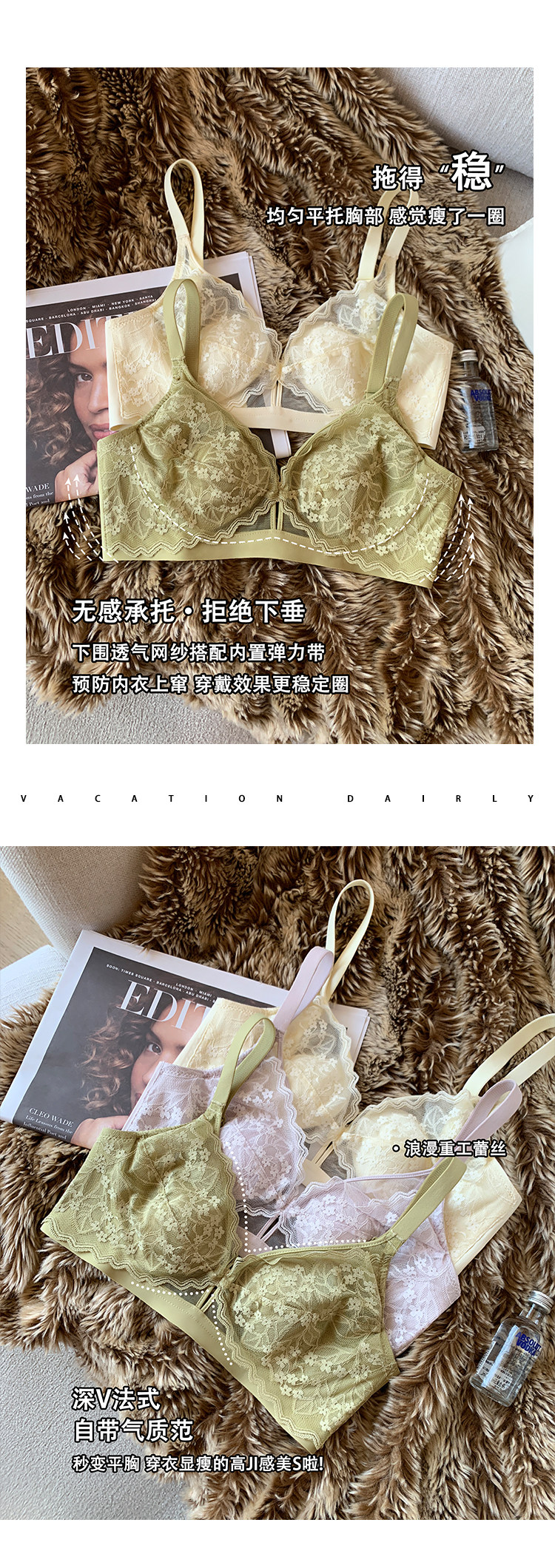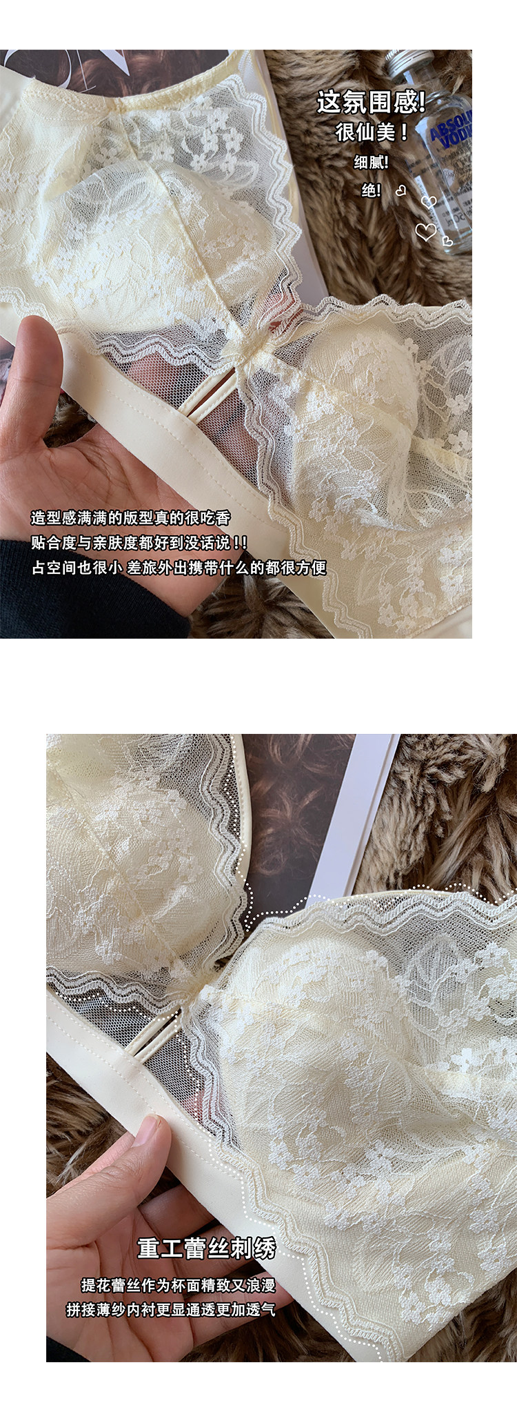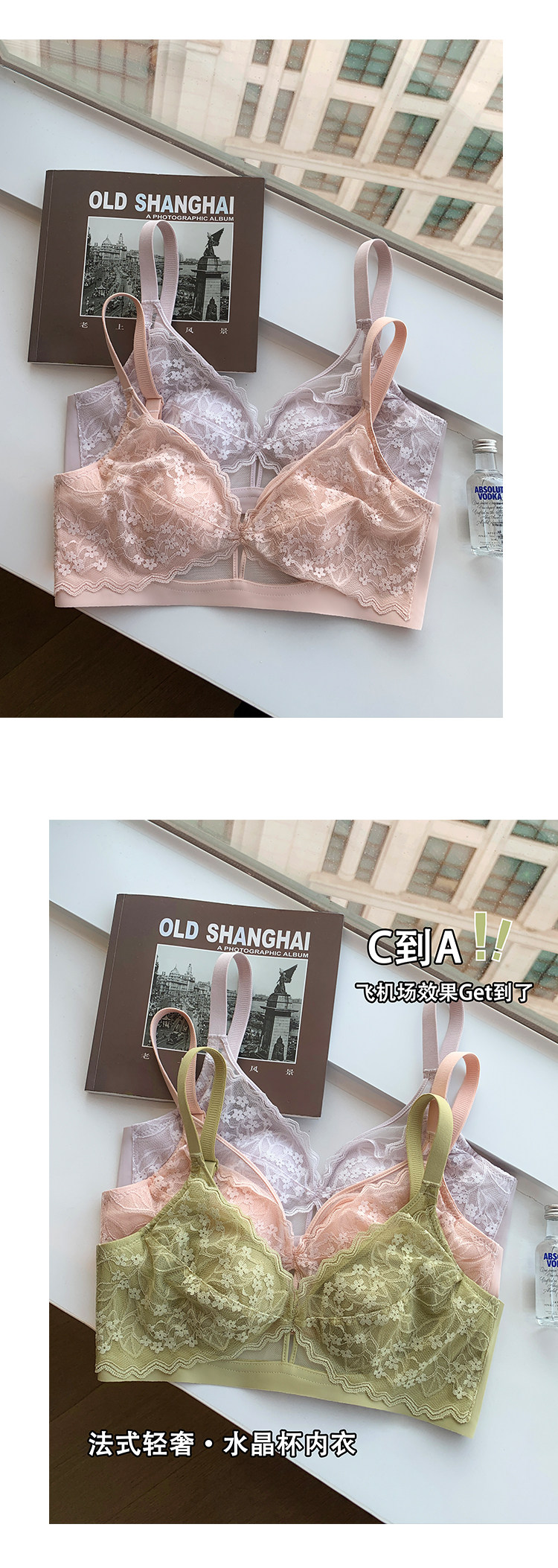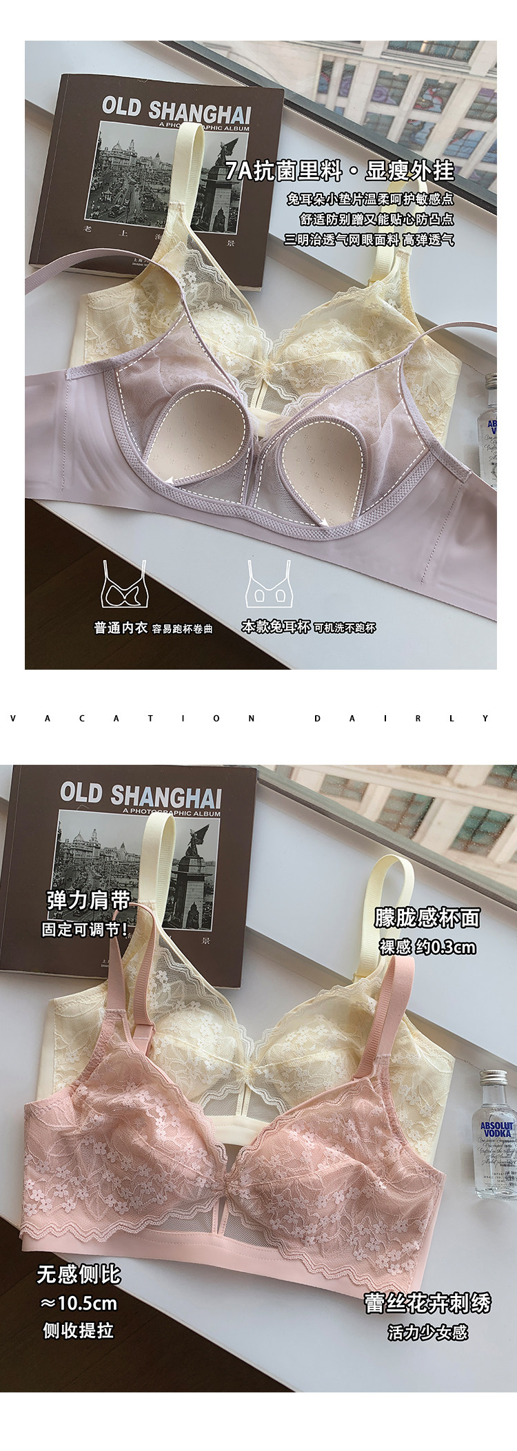 法式蕾絲薄款水晶杯大胸顯小內衣女顯瘦無鋼圈收副乳兔耳朵杯文胸