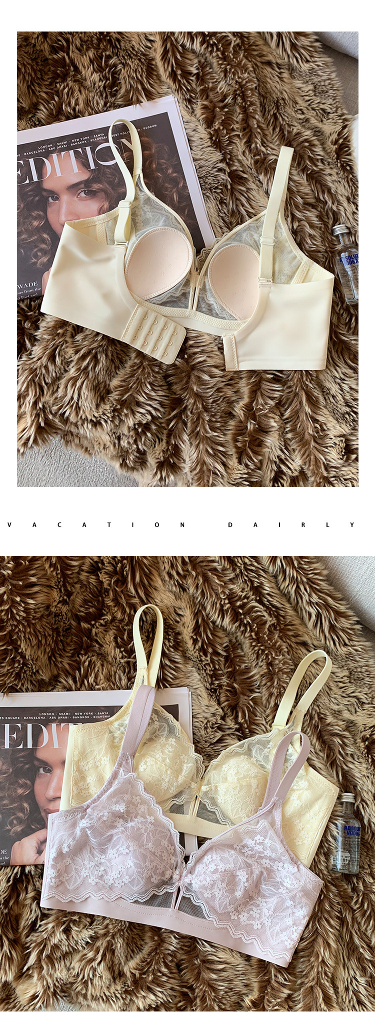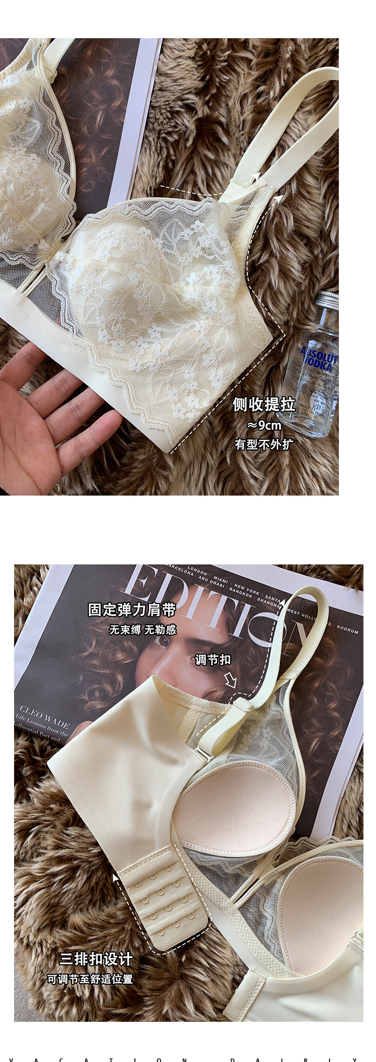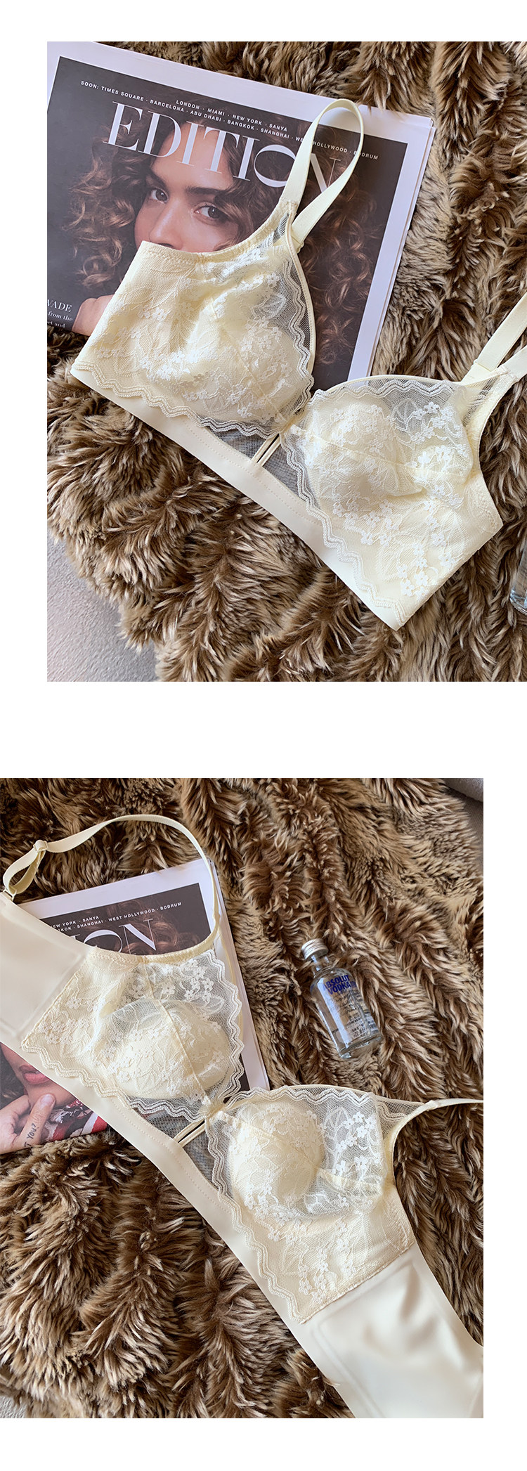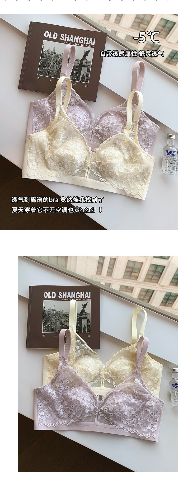 法式蕾絲薄款水晶杯大胸顯小內衣女顯瘦無鋼圈收副乳兔耳朵杯文胸