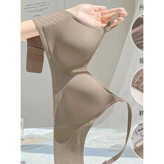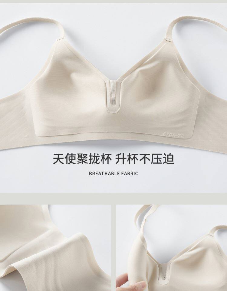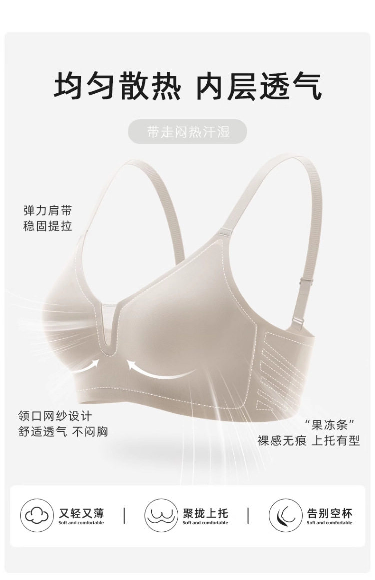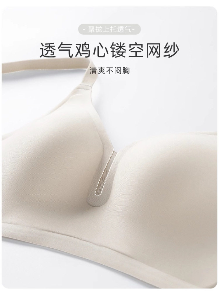 裸感無痕固定杯內衣女夏季薄款舒適無鋼圈聚攏上托收副乳美背文胸