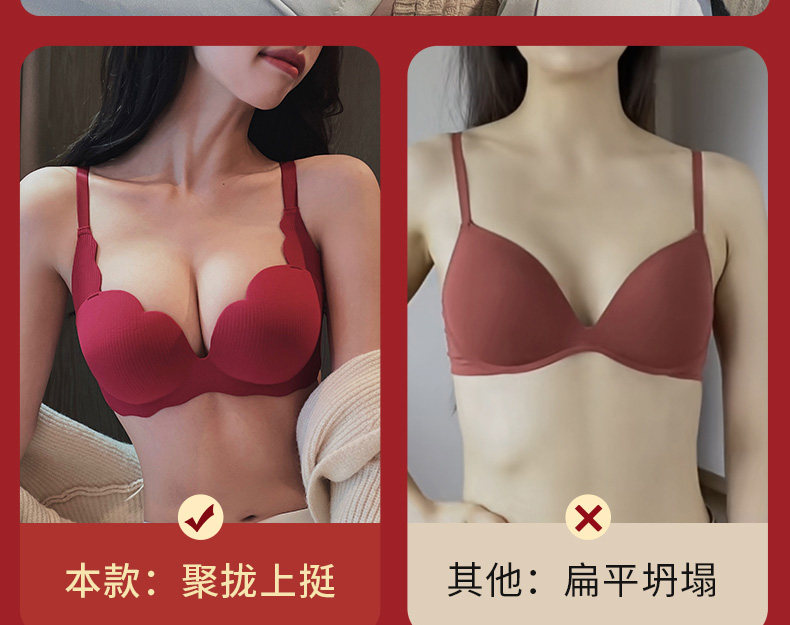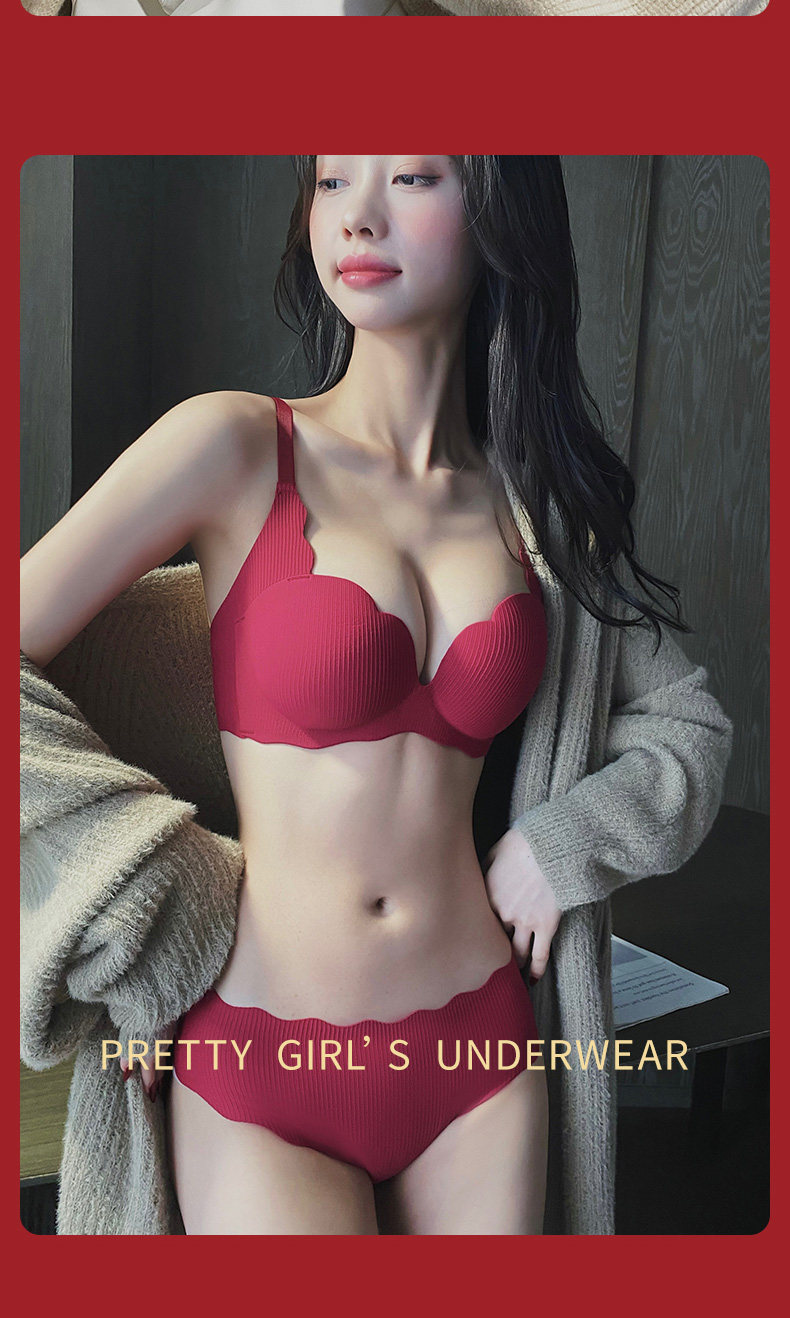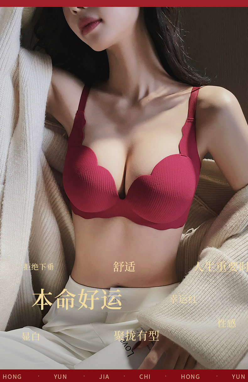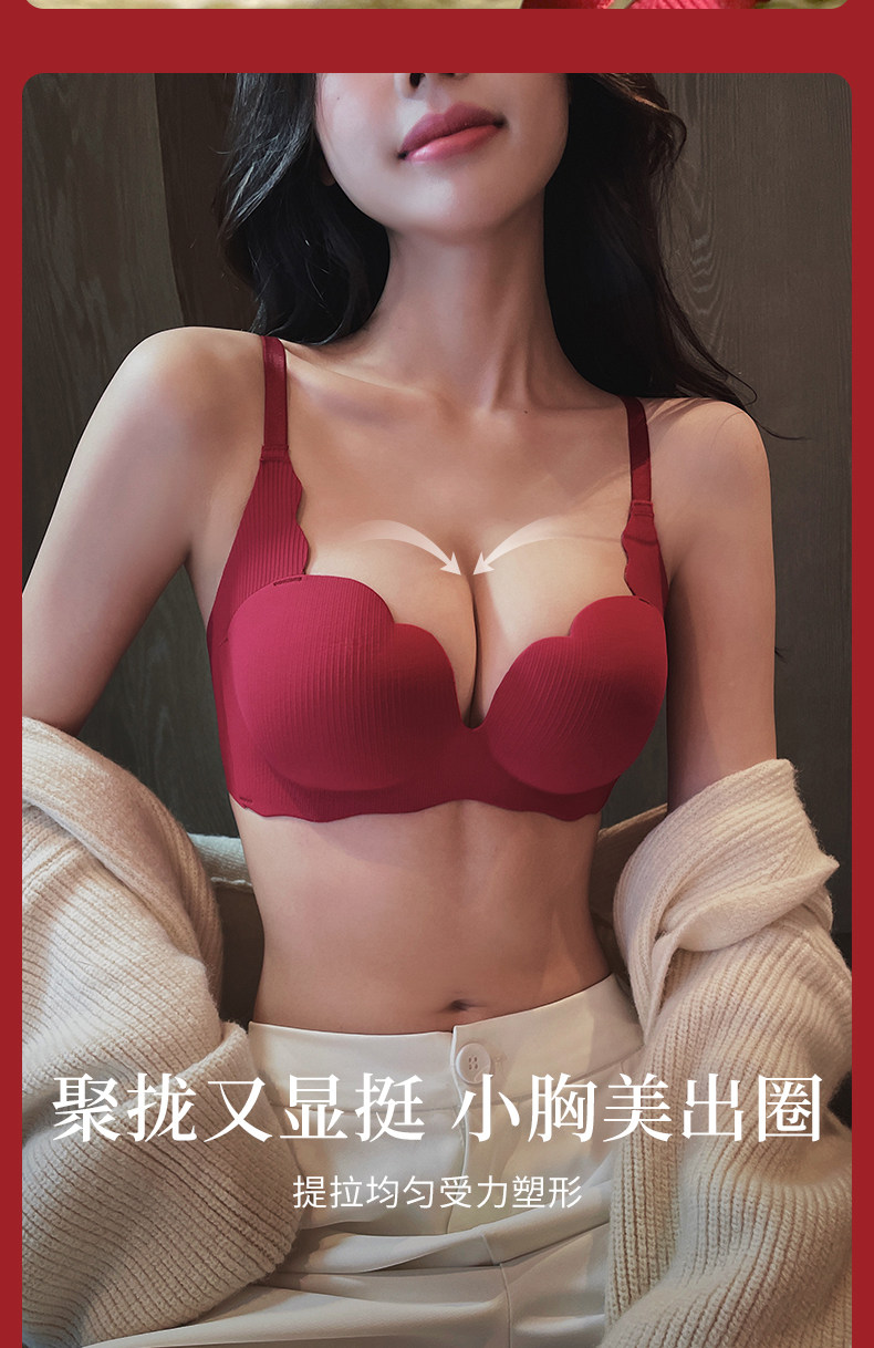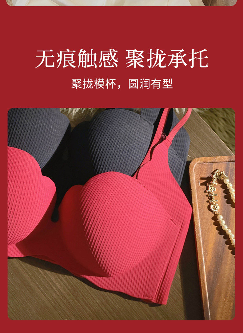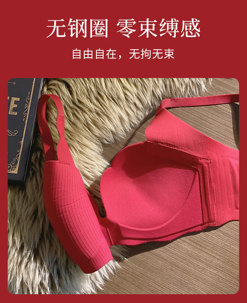 本命年女裝秋冬內衣紅色小胸聚攏顯大無痕文胸罩內褲套裝結婚新娘