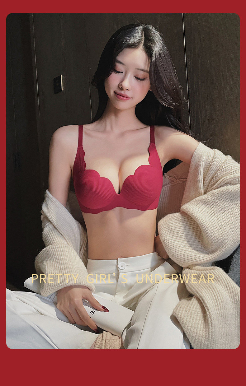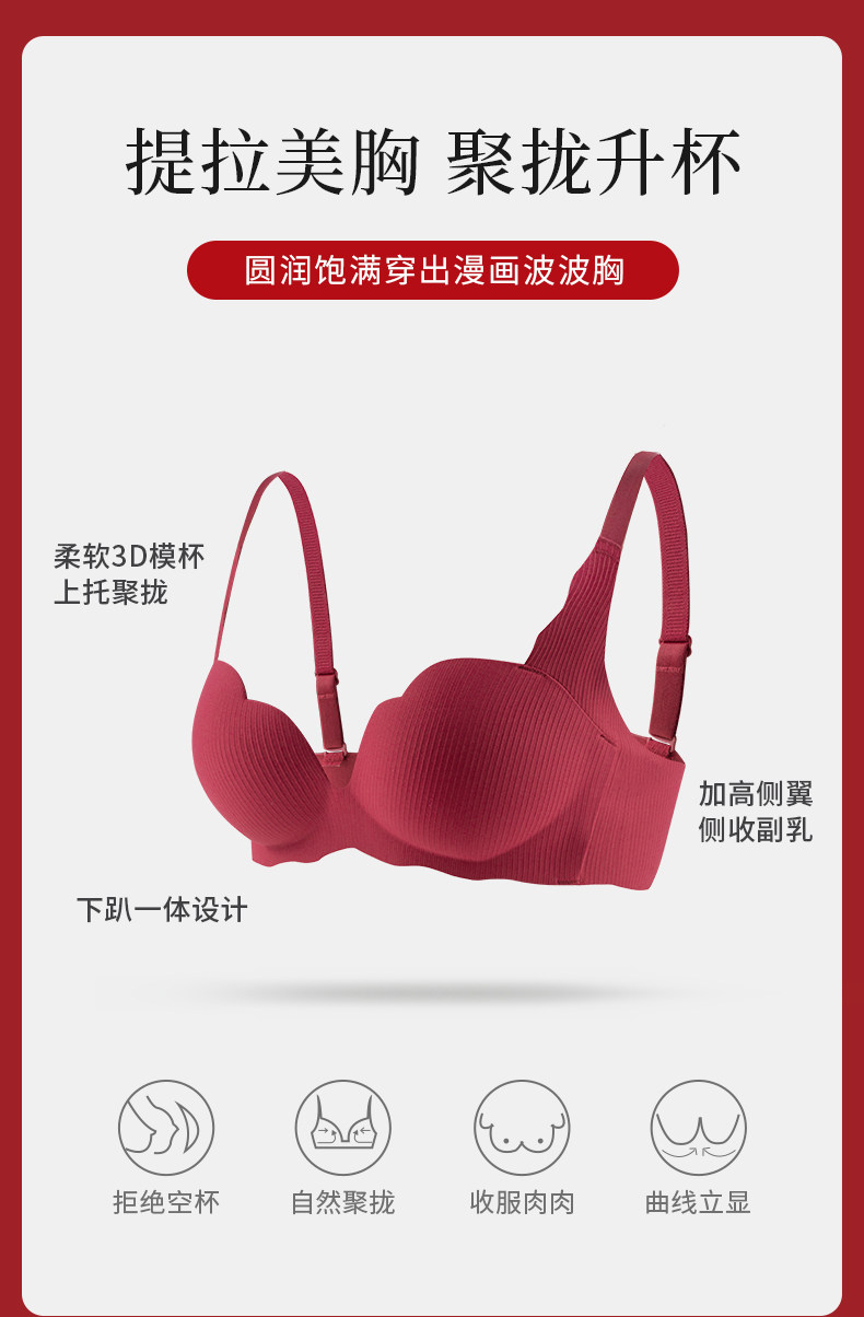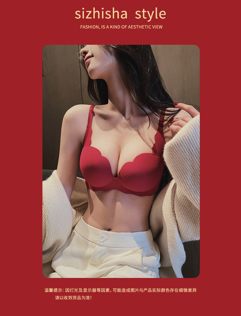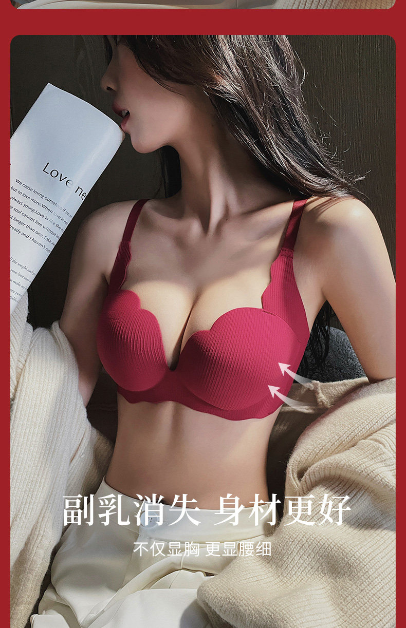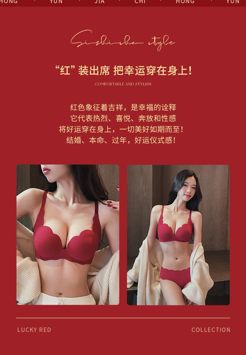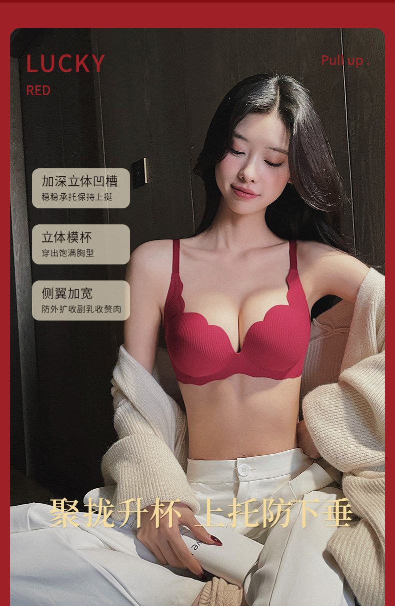 本命年女裝秋冬內衣紅色小胸聚攏顯大無痕文胸罩內褲套裝結婚新娘