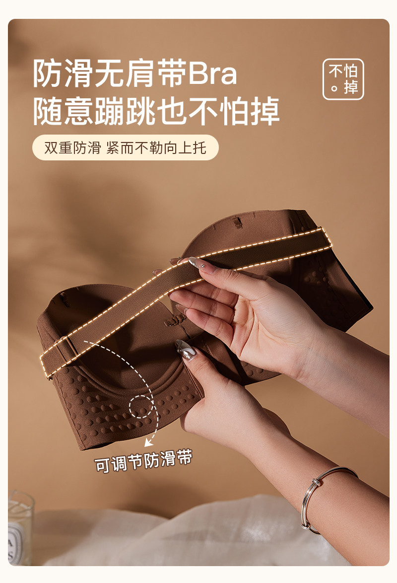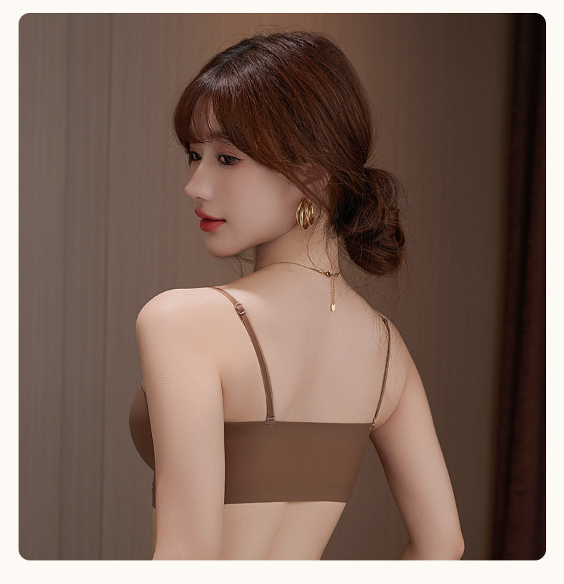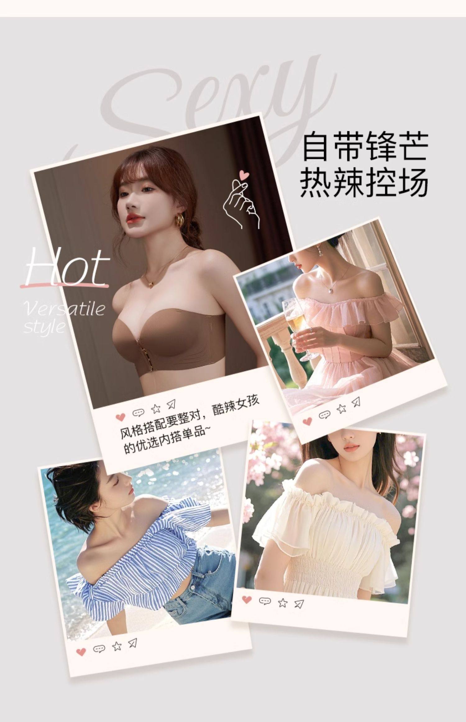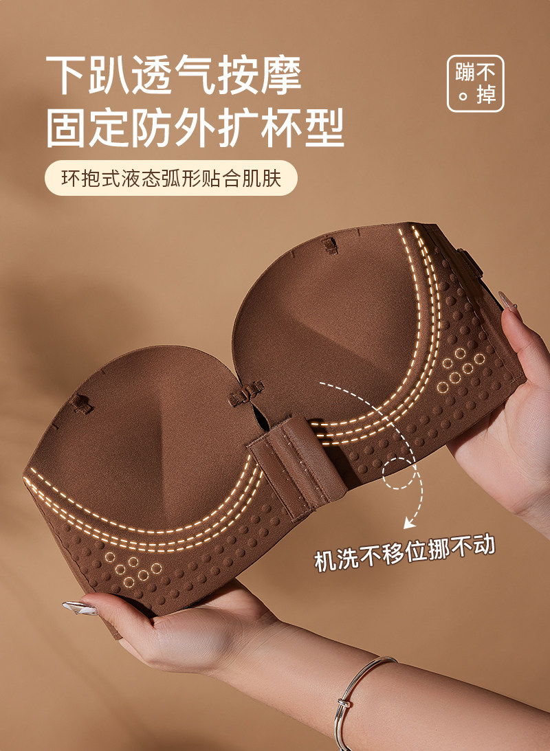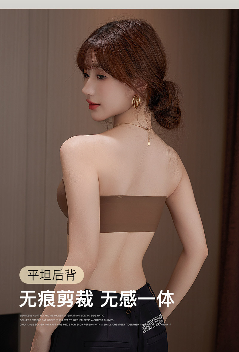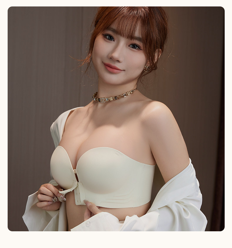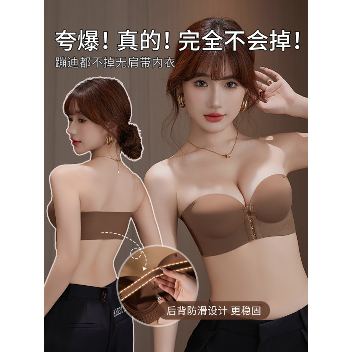 無肩帶內衣女小胸顯大胸聚攏防滑不掉上托一字肩抹胸前釦隱形文胸
