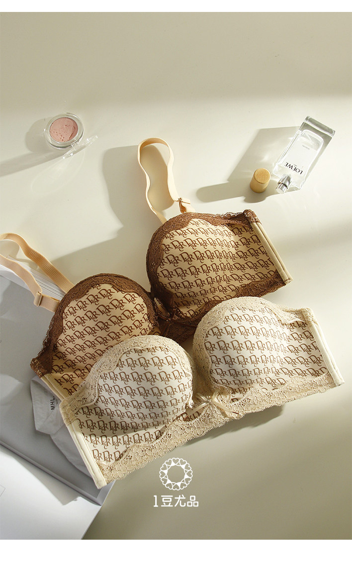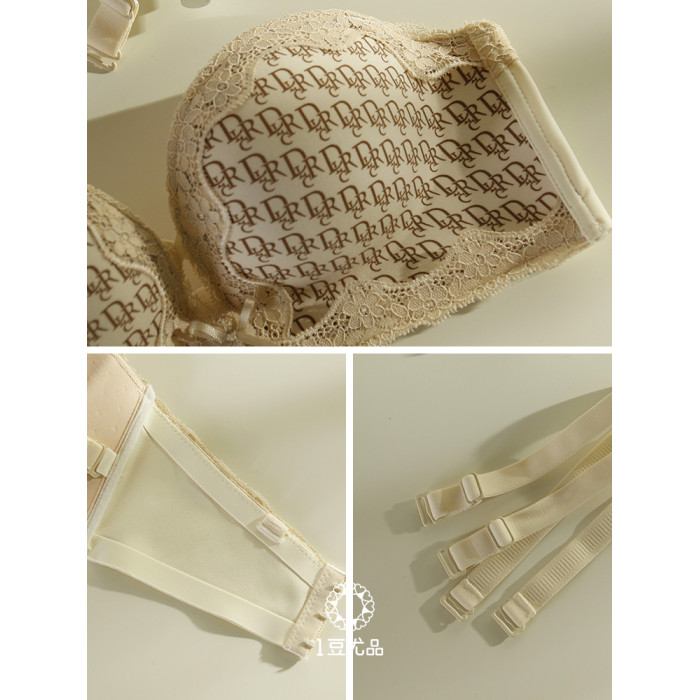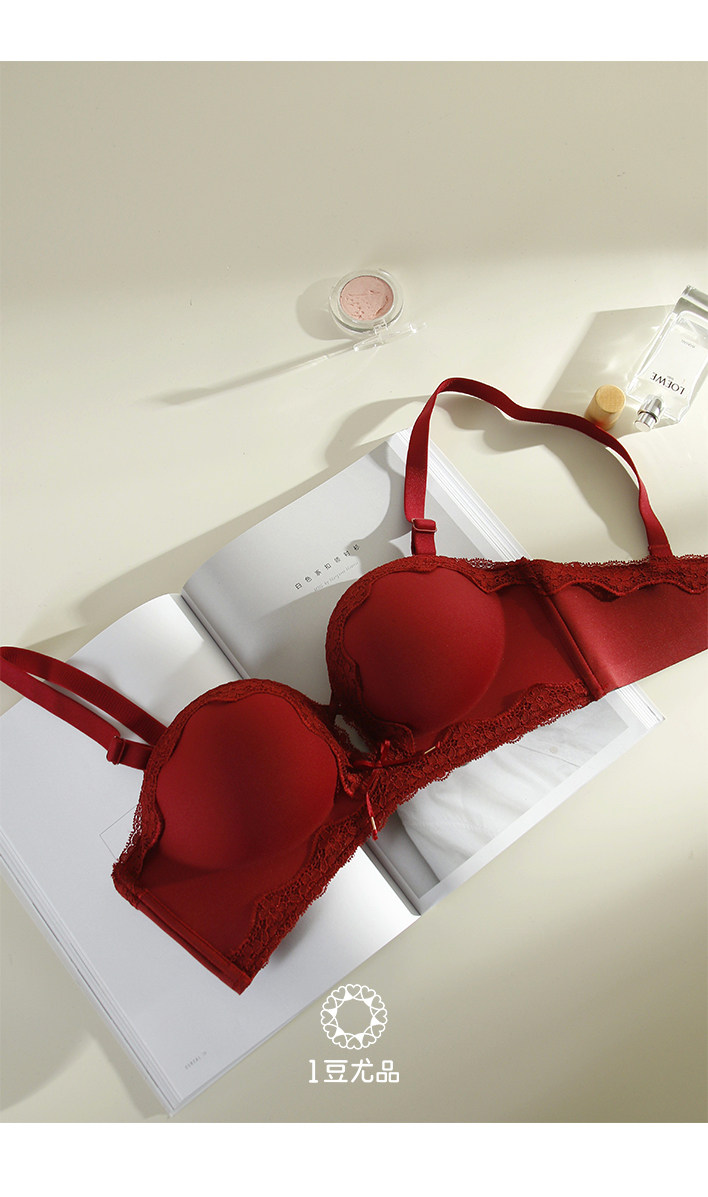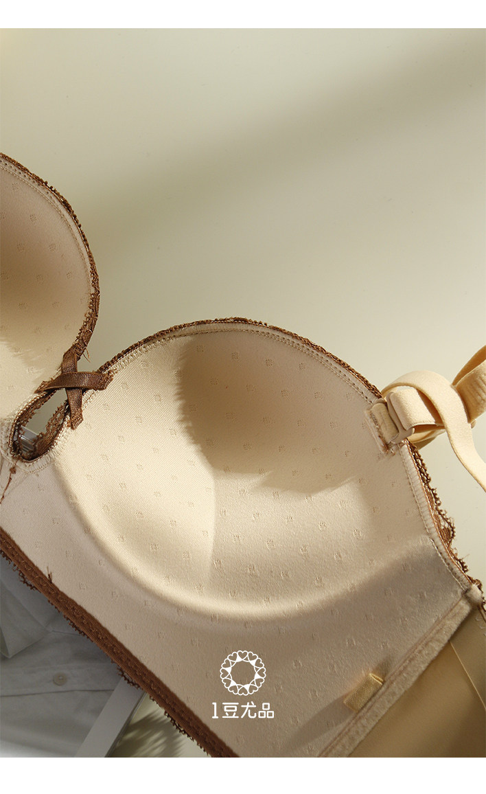 中厚2CM小胸聚攏蕾絲內衣女收副乳防下垂無鋼圈無肩帶抹胸文胸罩