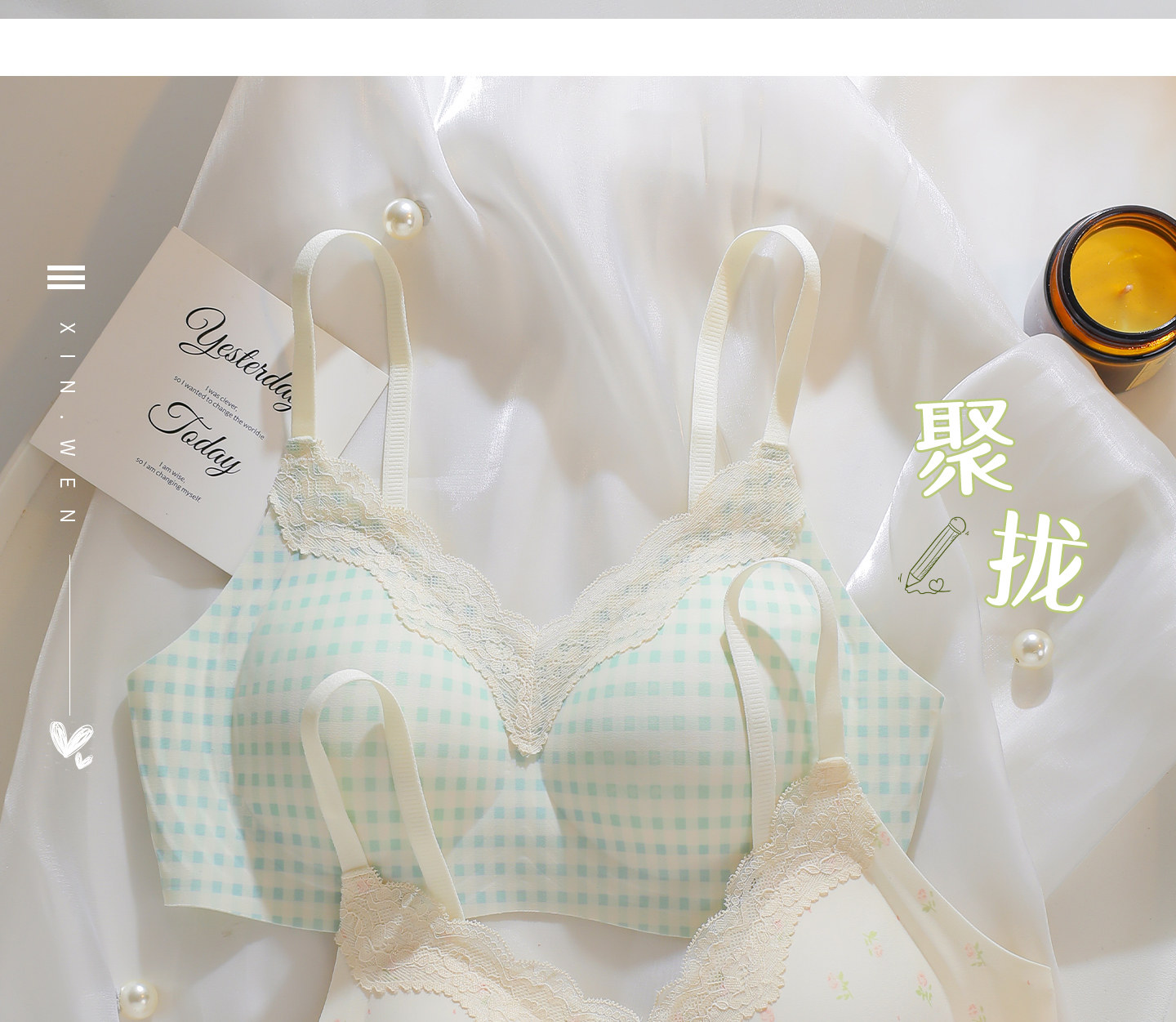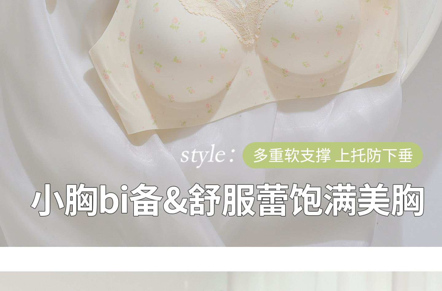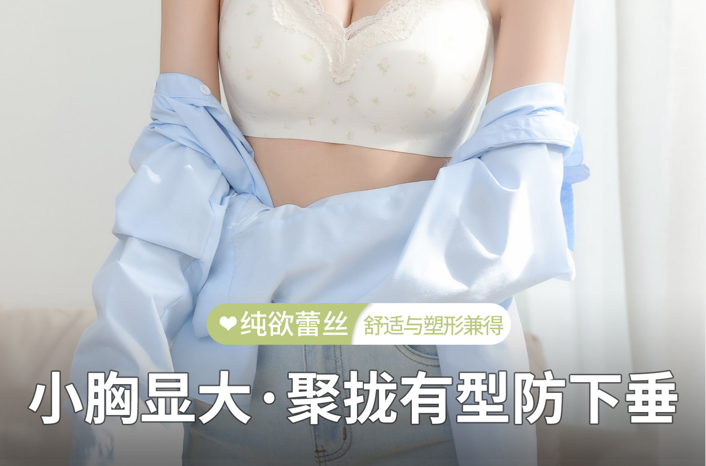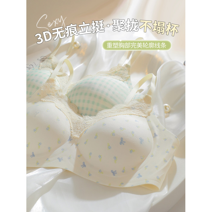 法式蕾絲內衣女聚攏小胸顯大不空杯無痕收副乳防下垂少女文胸罩