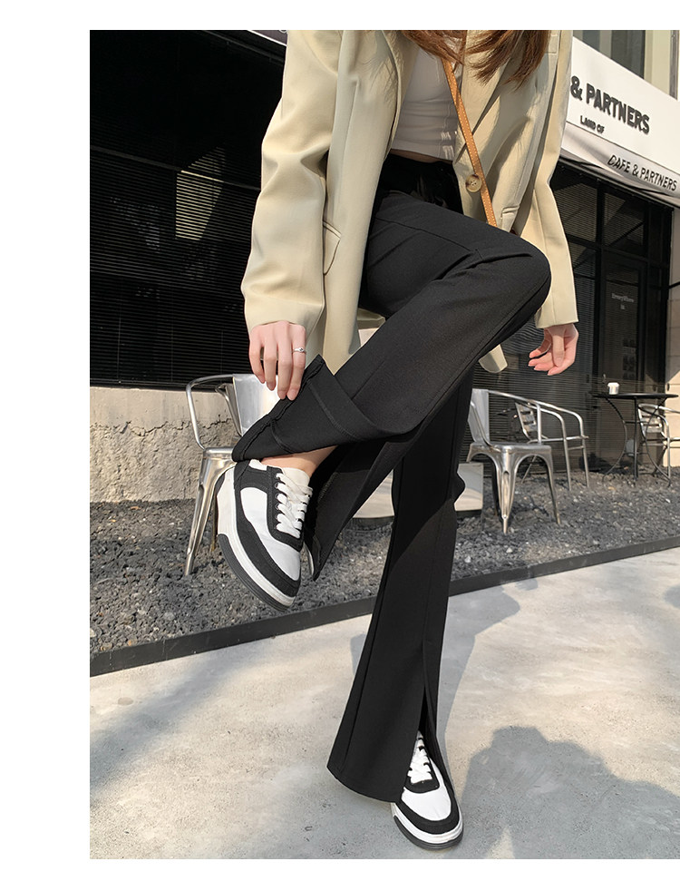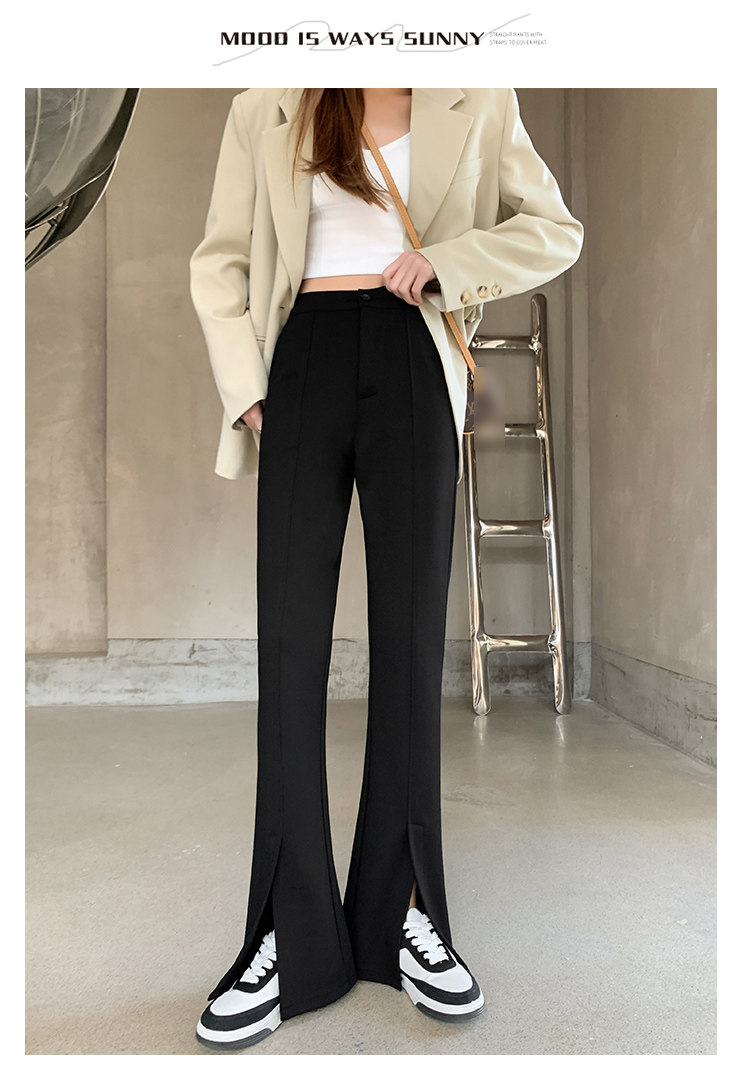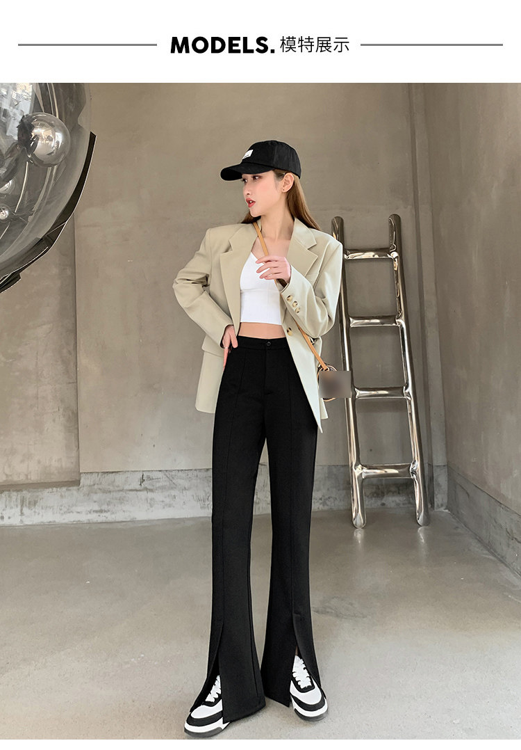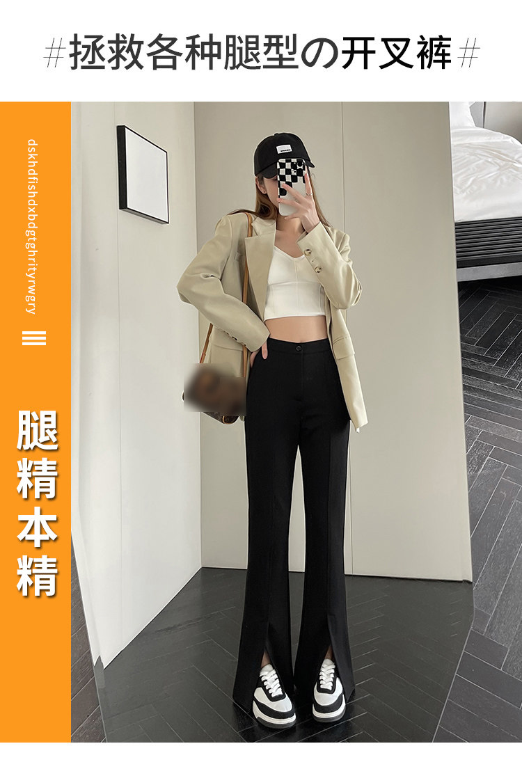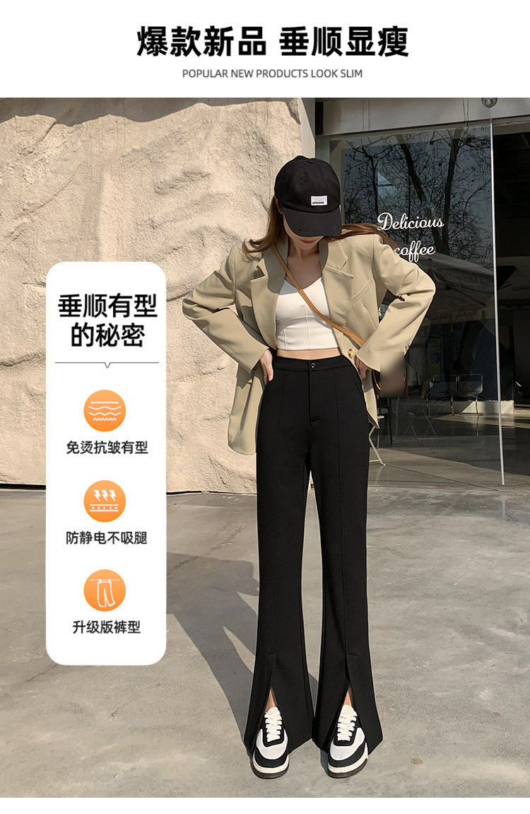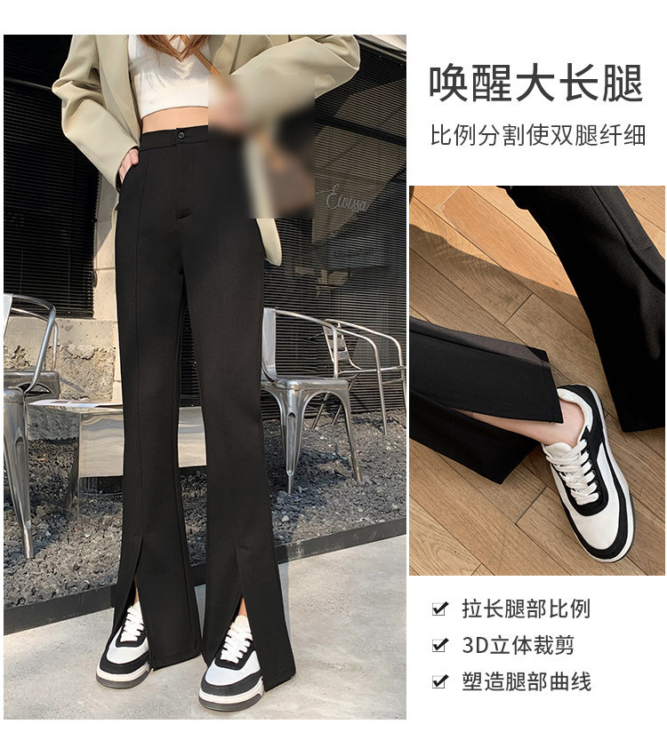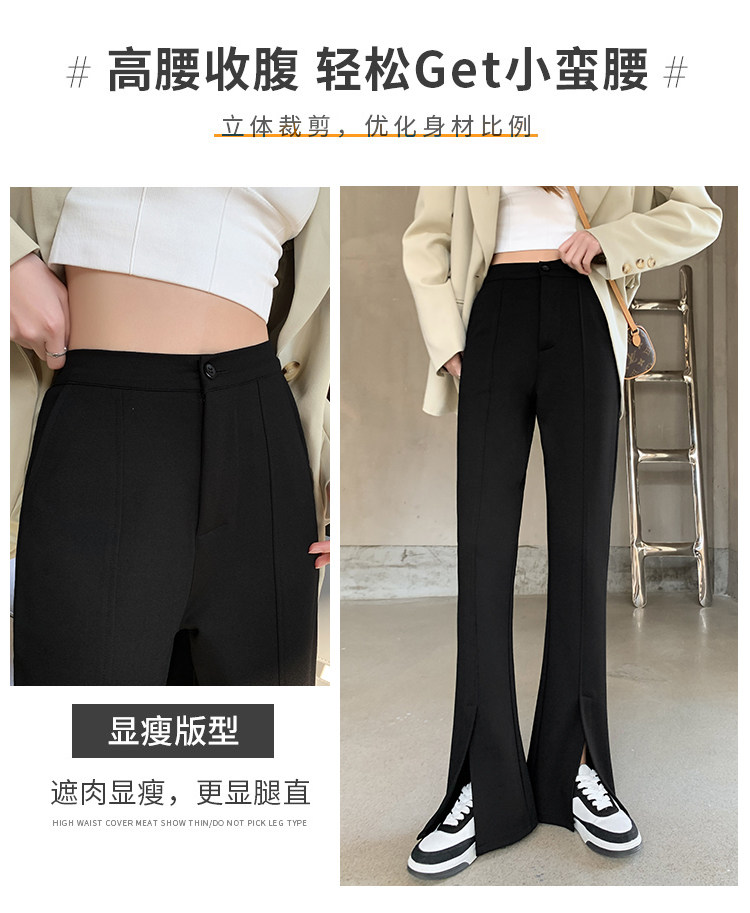 大碼女裝開叉高腰微喇叭褲2025新款秋季顯瘦休閒梨形身材濶腿長褲