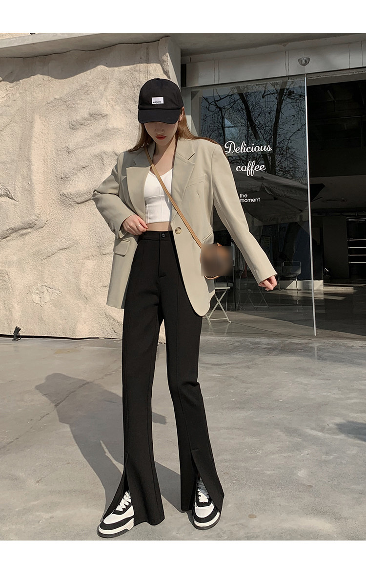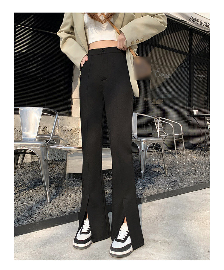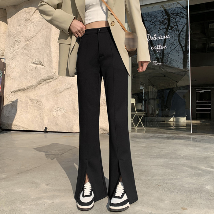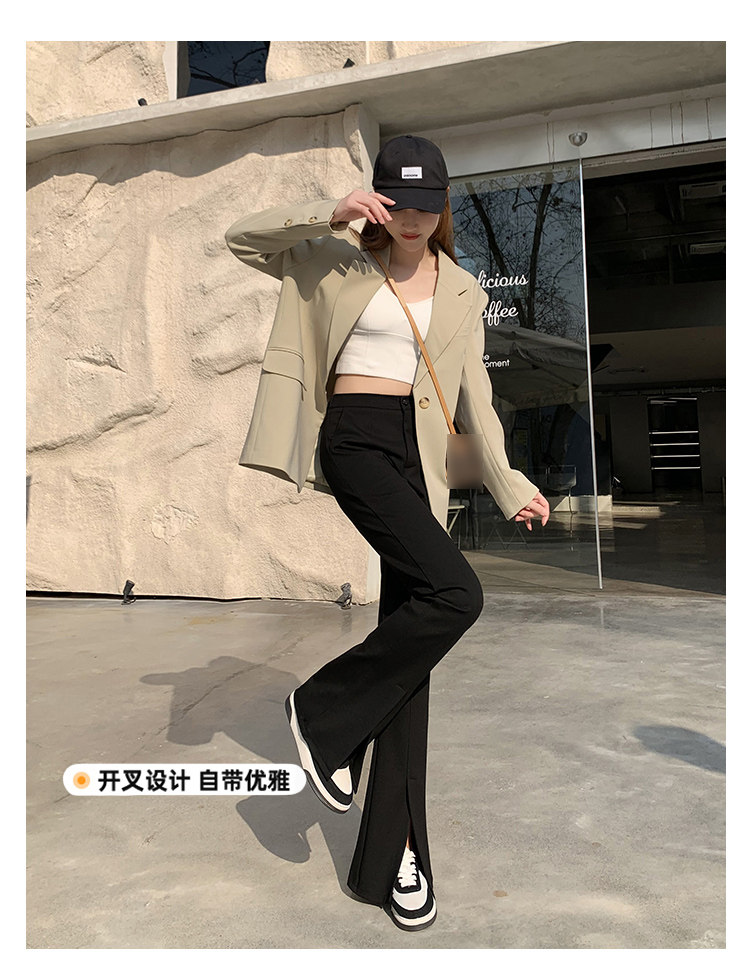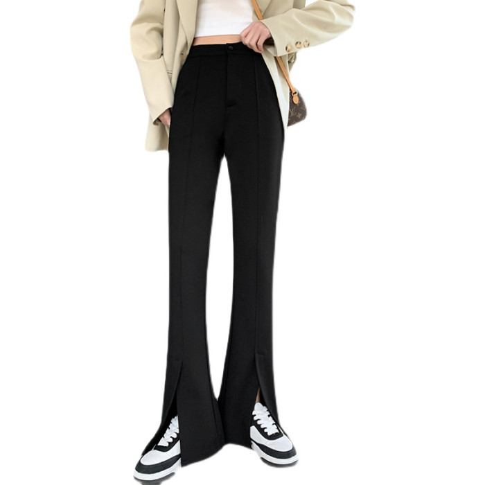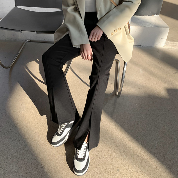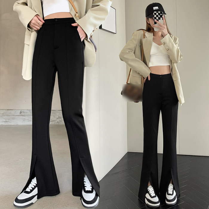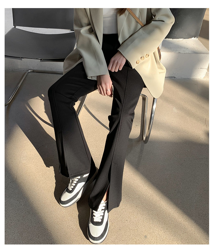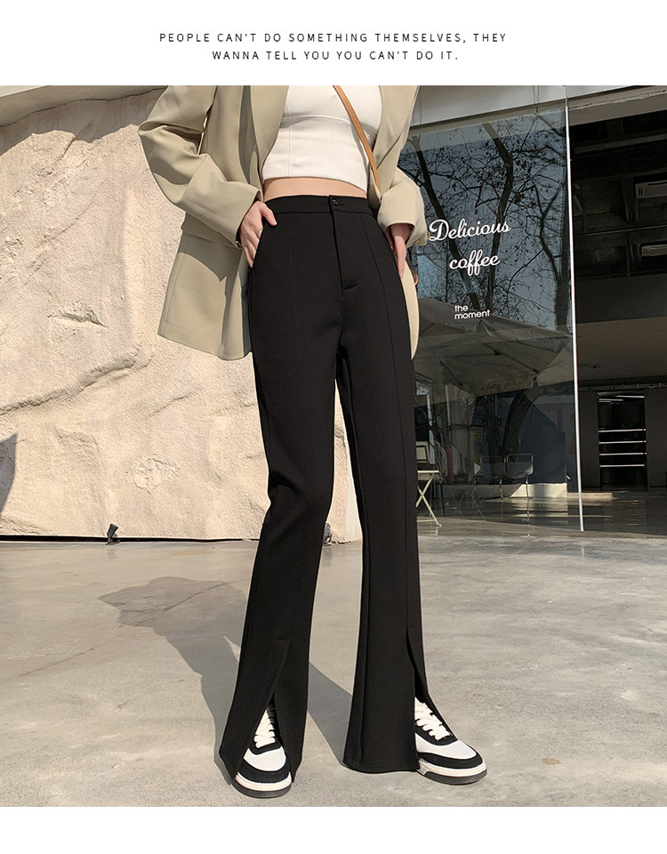 大碼女裝開叉高腰微喇叭褲2025新款秋季顯瘦休閒梨形身材濶腿長褲