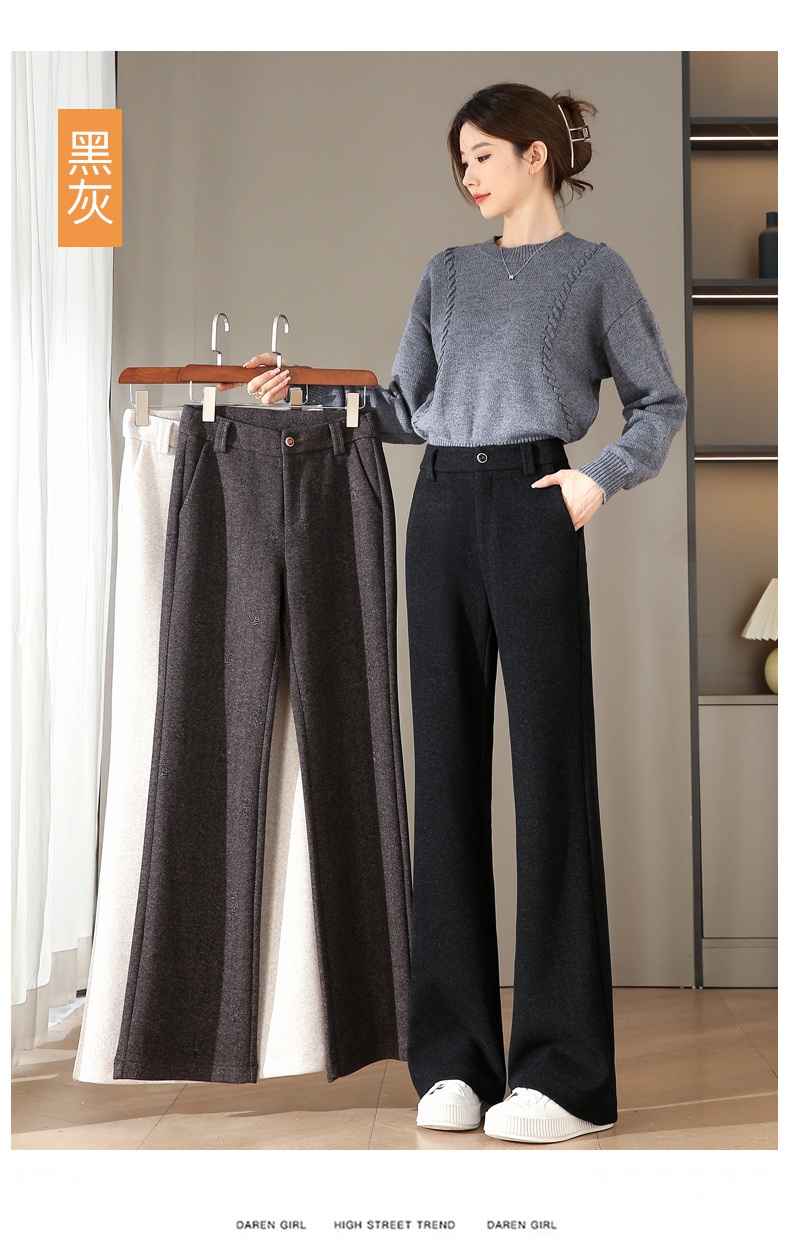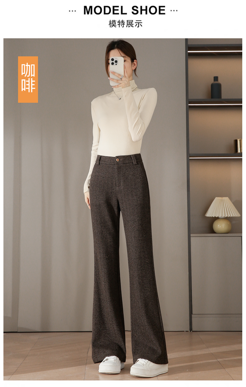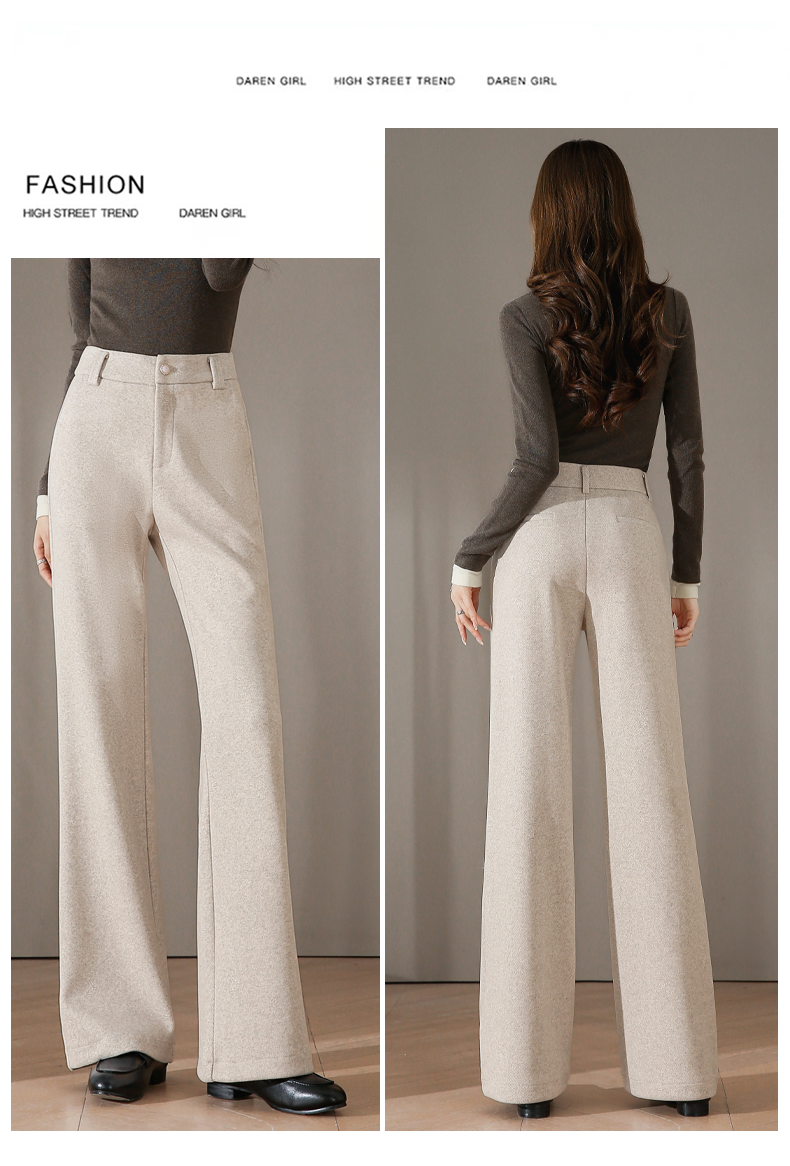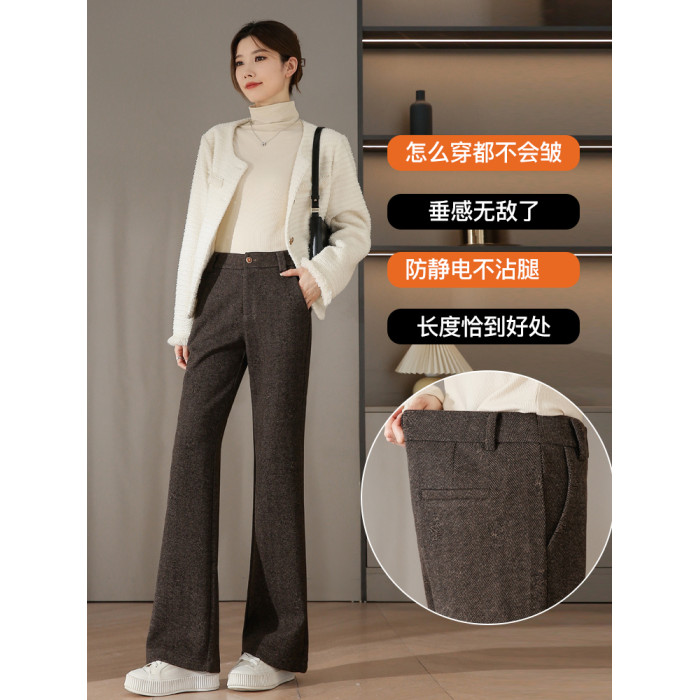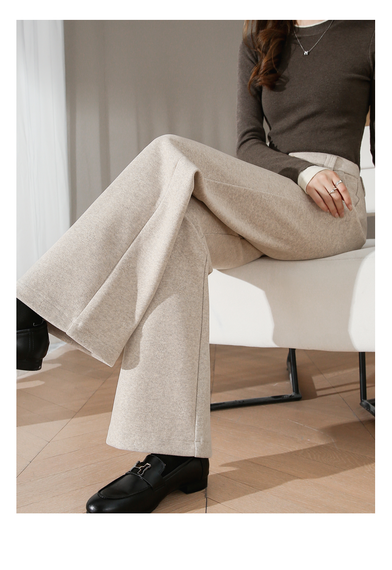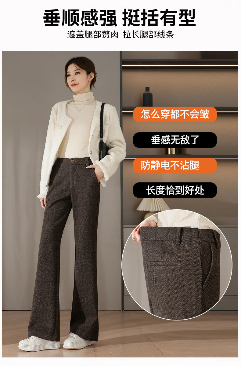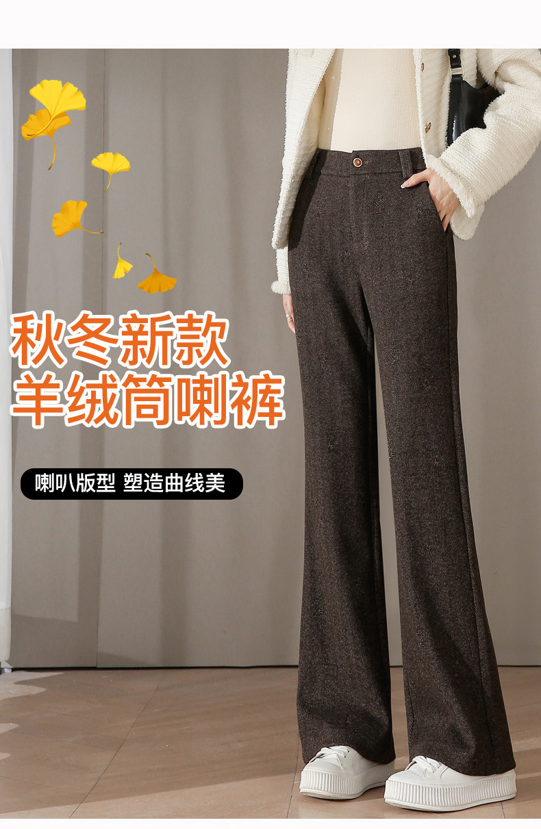 羊絨微喇褲女秋冬新款高腰顯瘦垂順休閒加厚保暖毛呢喇叭褲