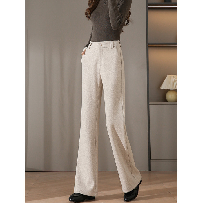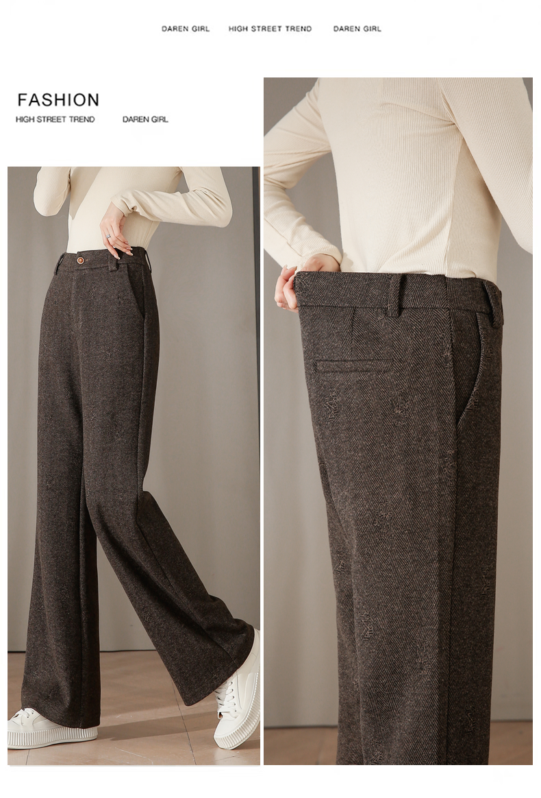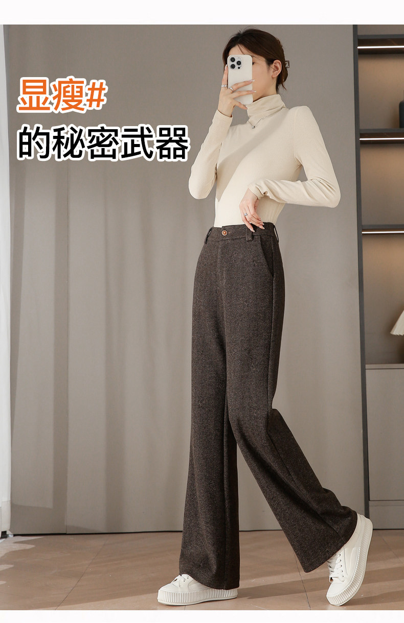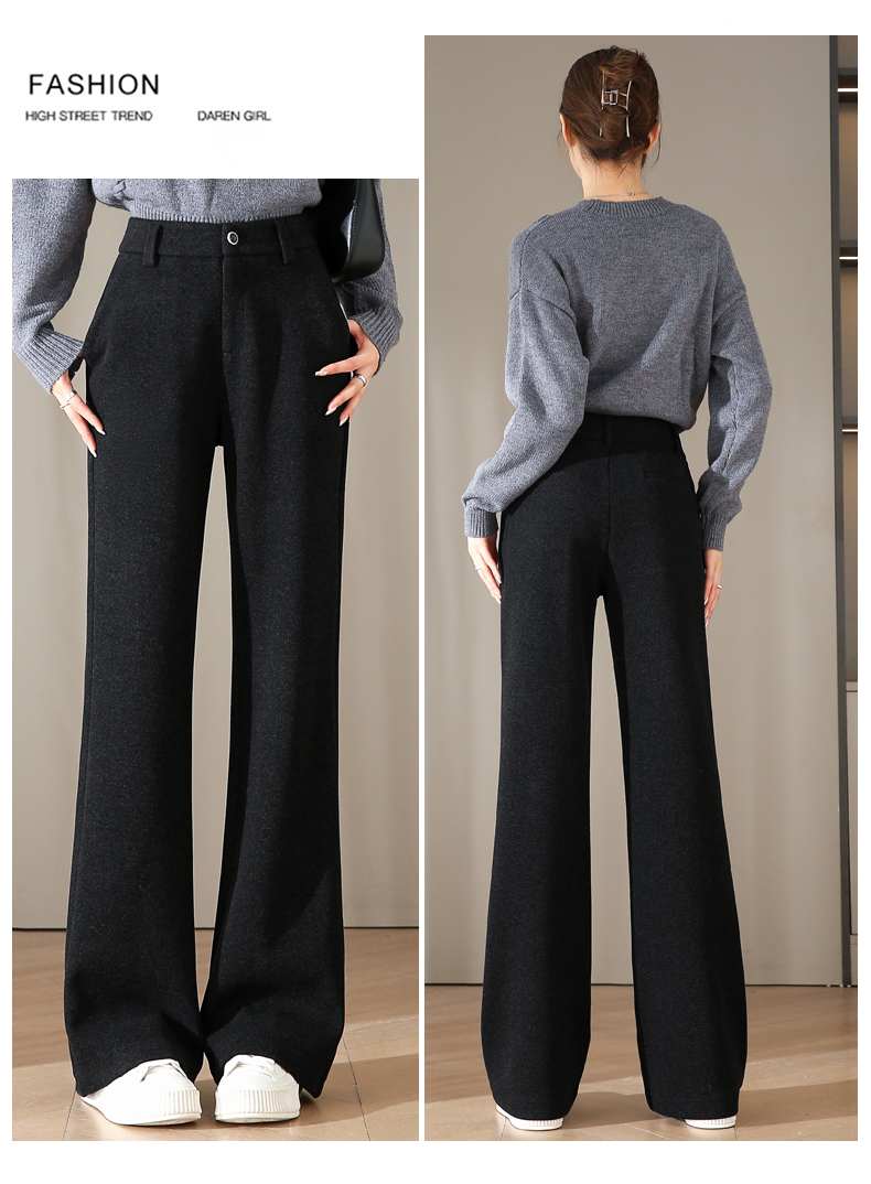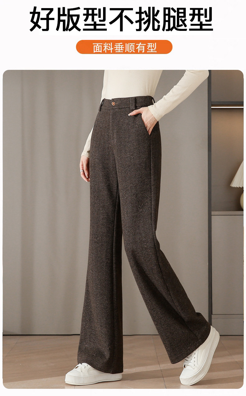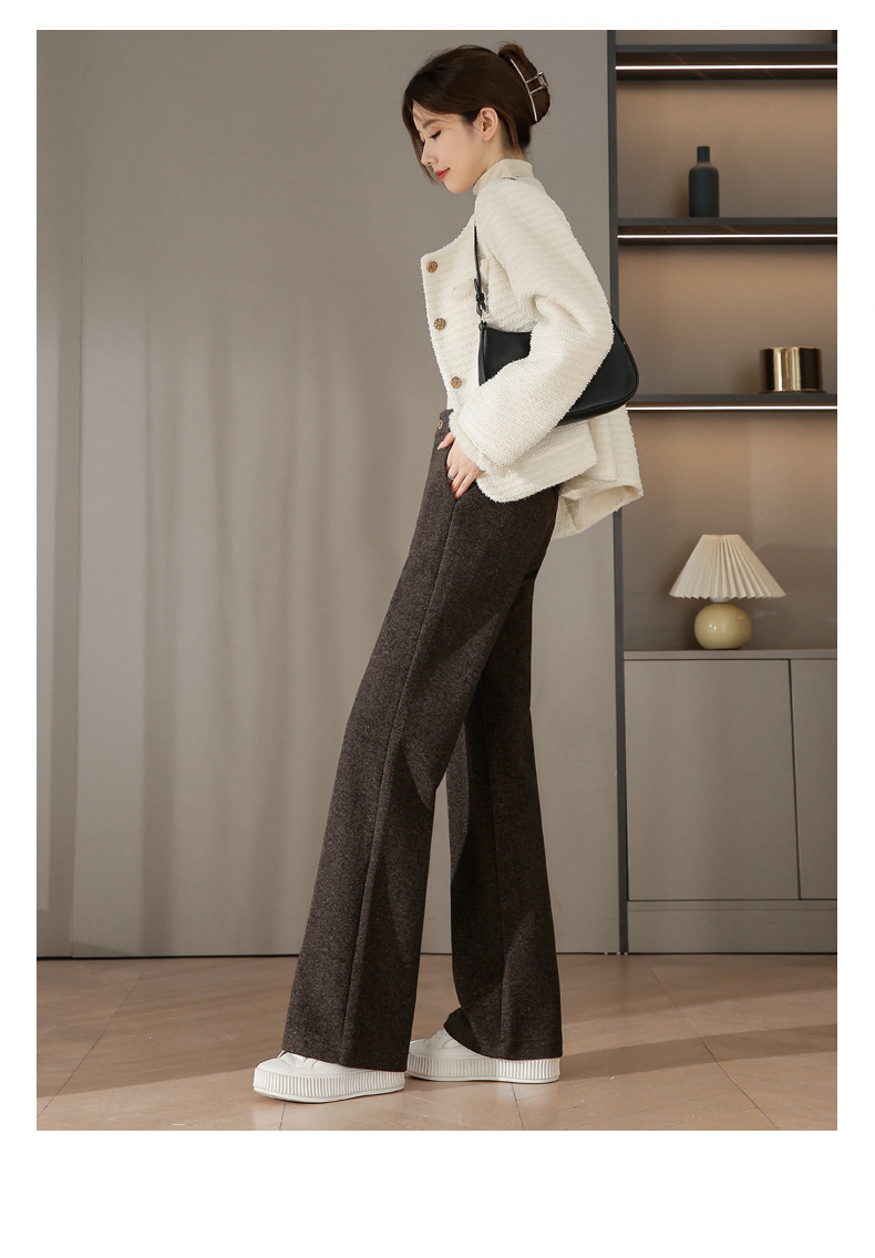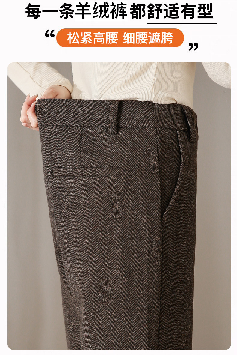 羊絨微喇褲女秋冬新款高腰顯瘦垂順休閒加厚保暖毛呢喇叭褲