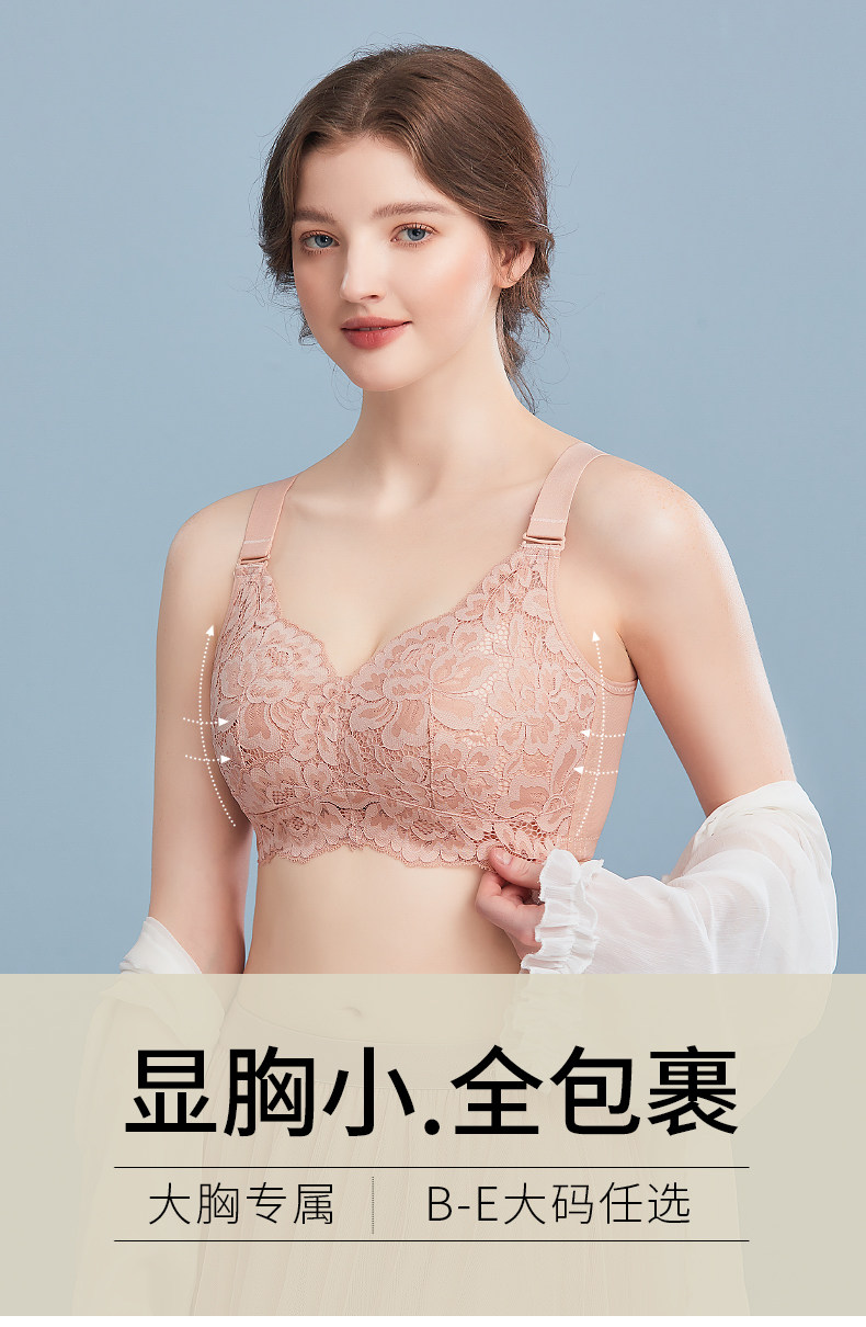 千奈美內衣大胸顯小防下垂收副乳無鋼圈縮胸神器大杯調整型文胸罩